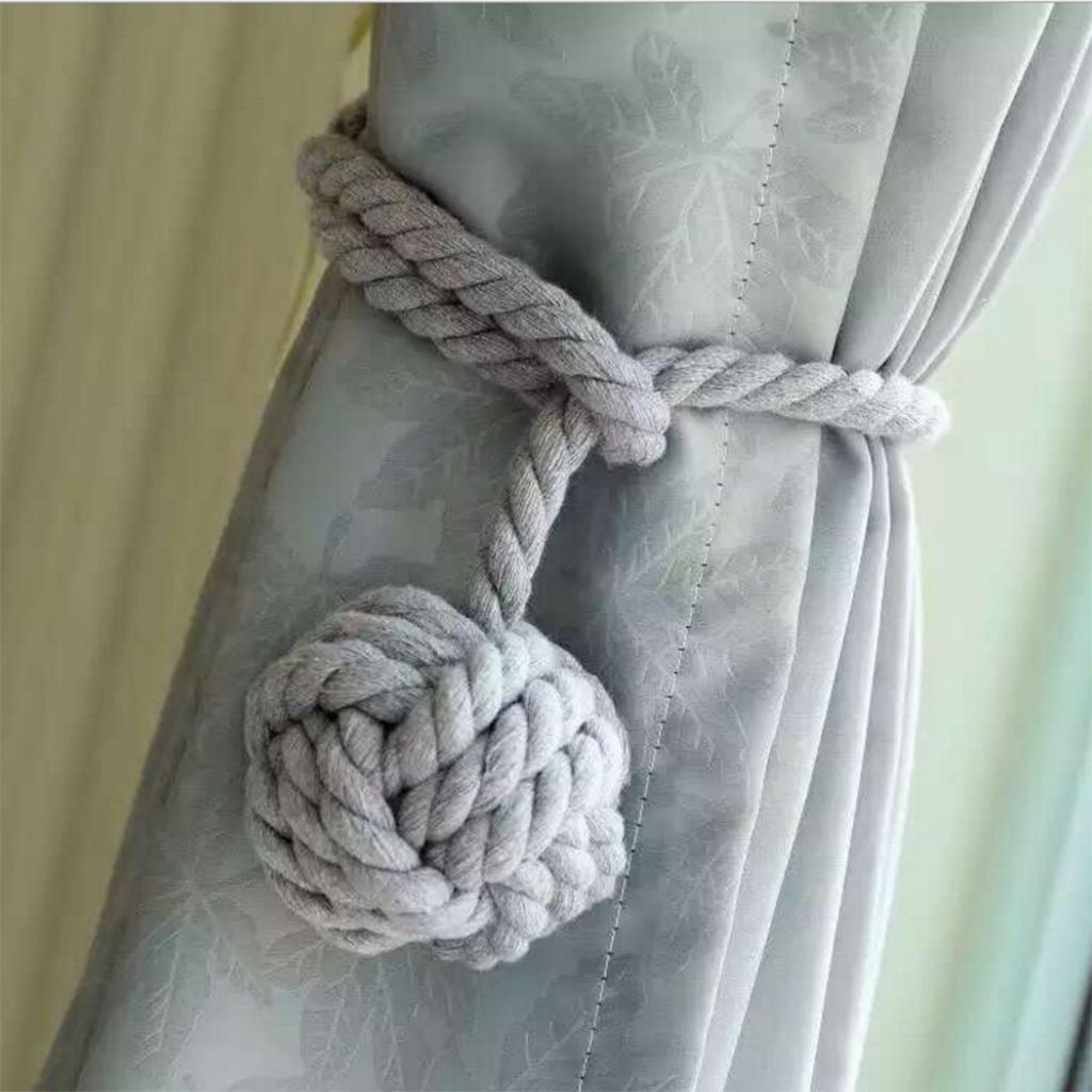 2 Piece Curtain Rope Tie Backs Ball Tiebacks Holdbacks Home Decor Gray