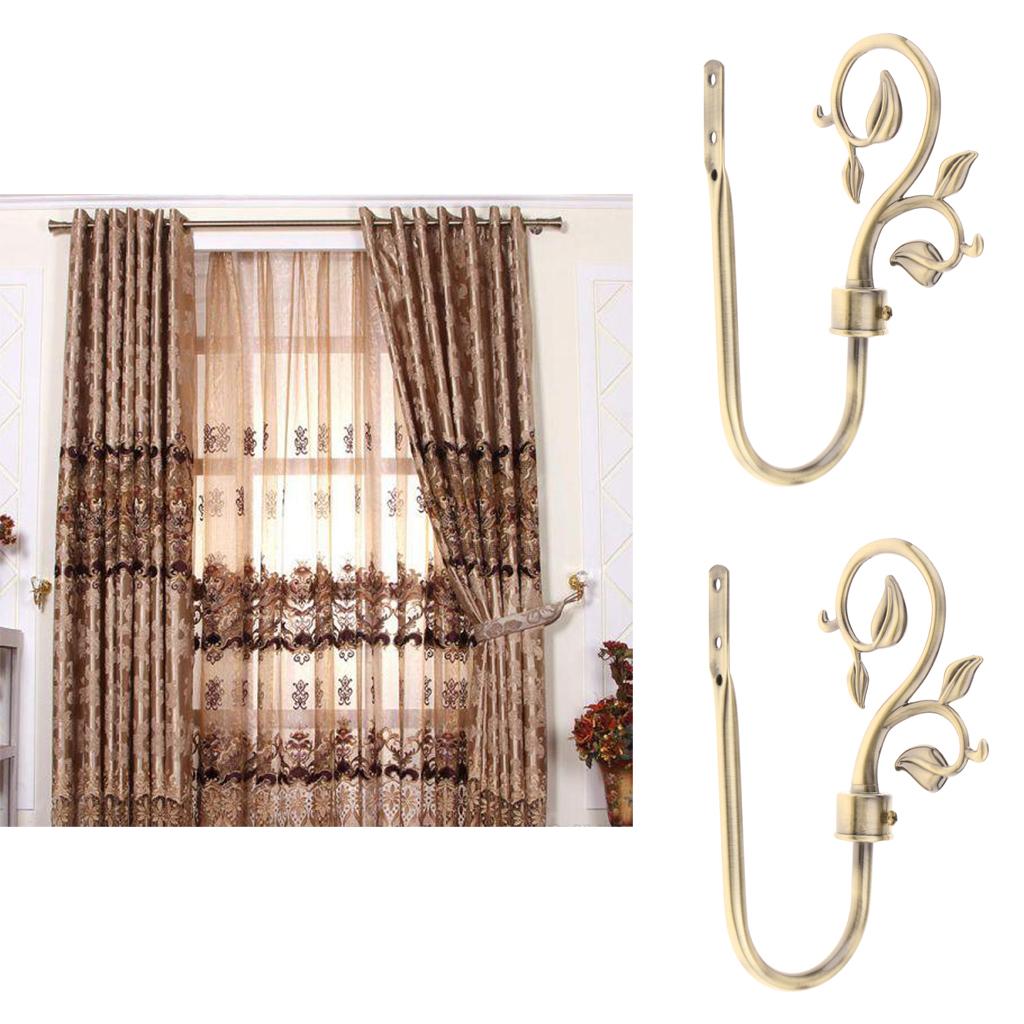 2-piece U Shape Metal Leaf Curtain Hook Window Drapery Tieback Hanger Bronze