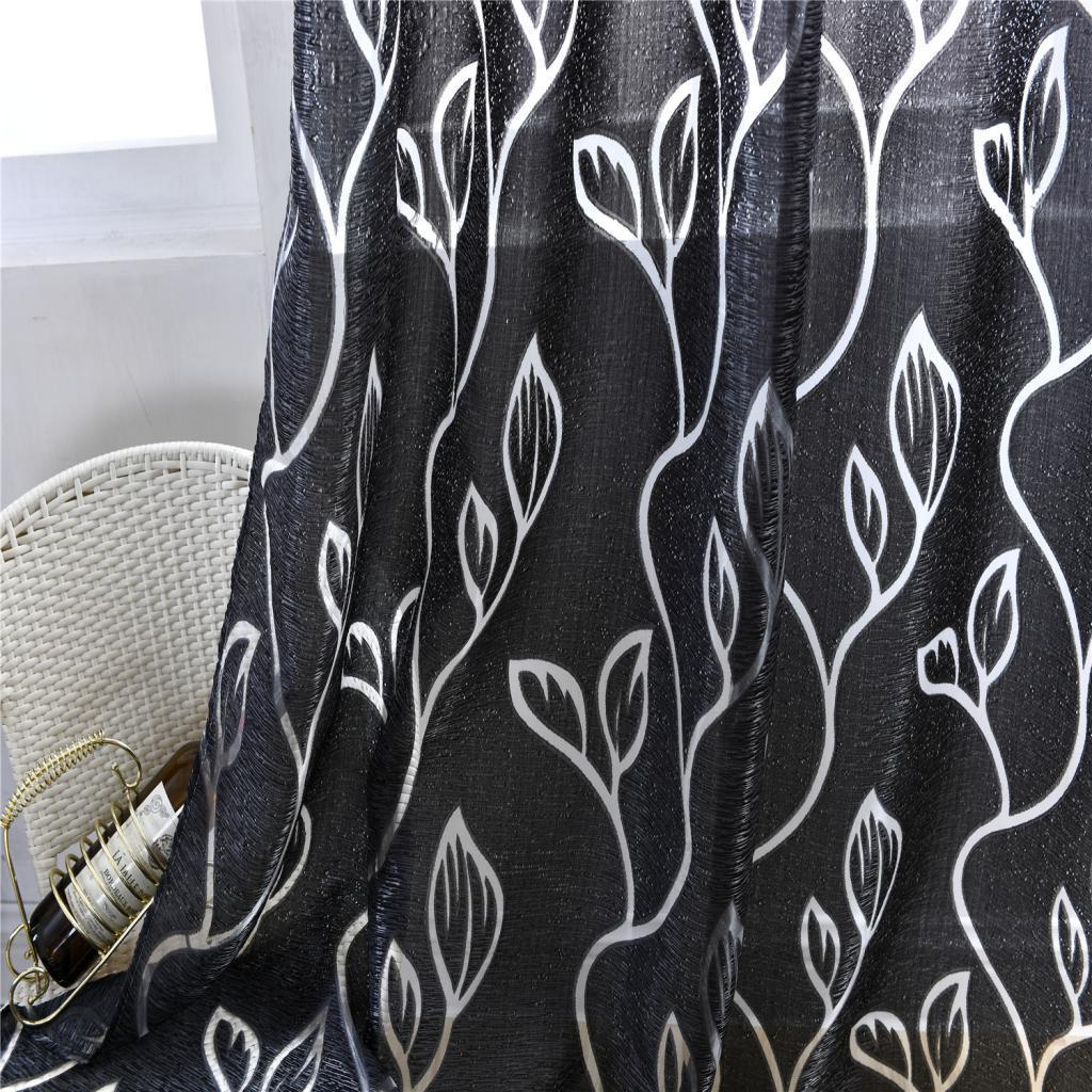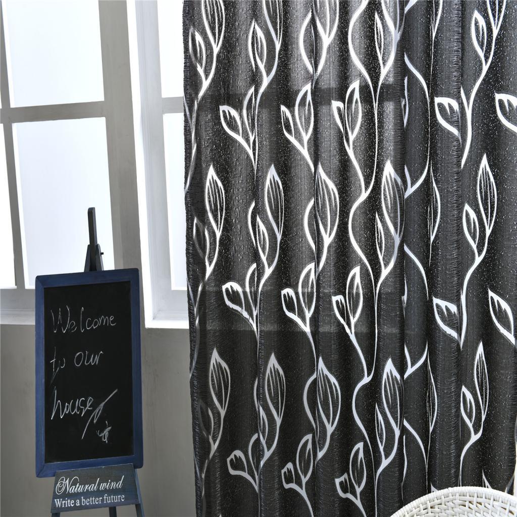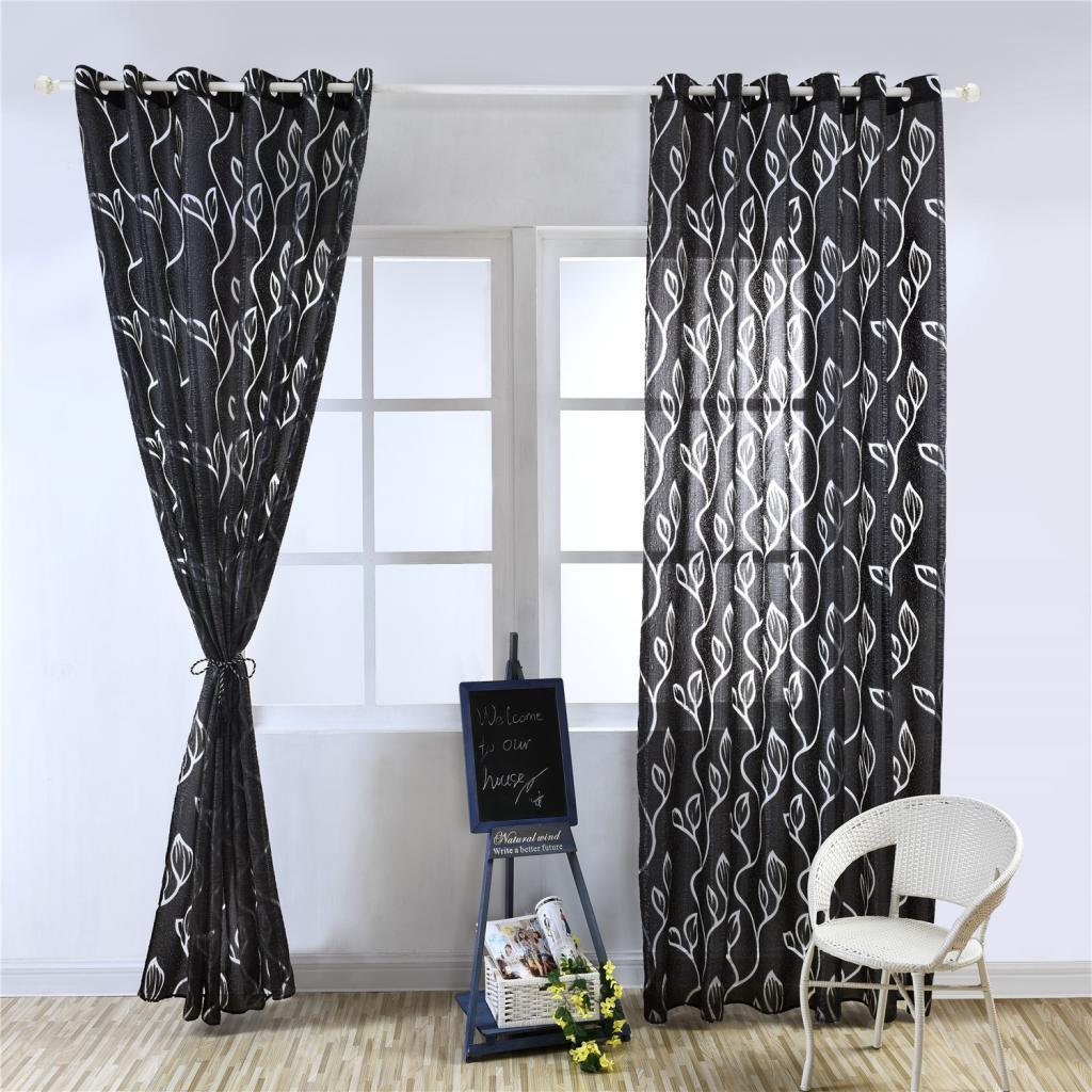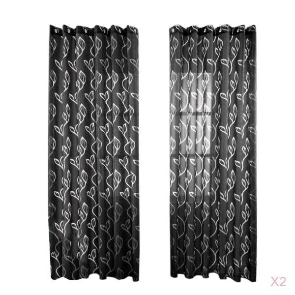 2 Pieces 100x250cm Leaves Bubble Snuff Curtain Sheer Voile Curtain Black