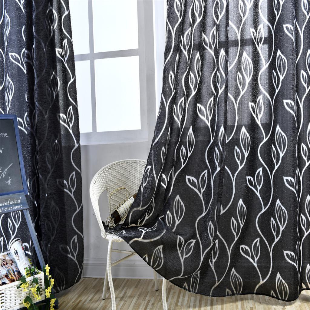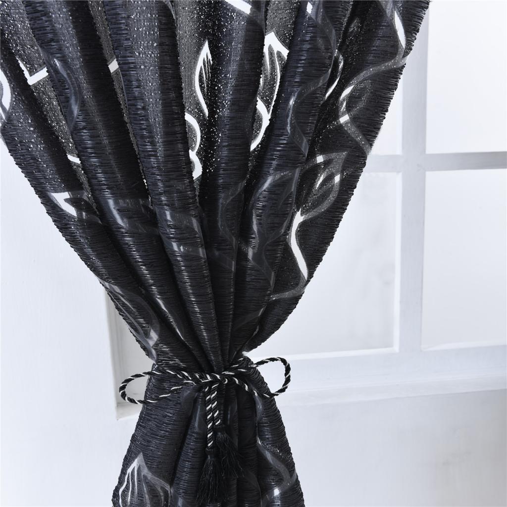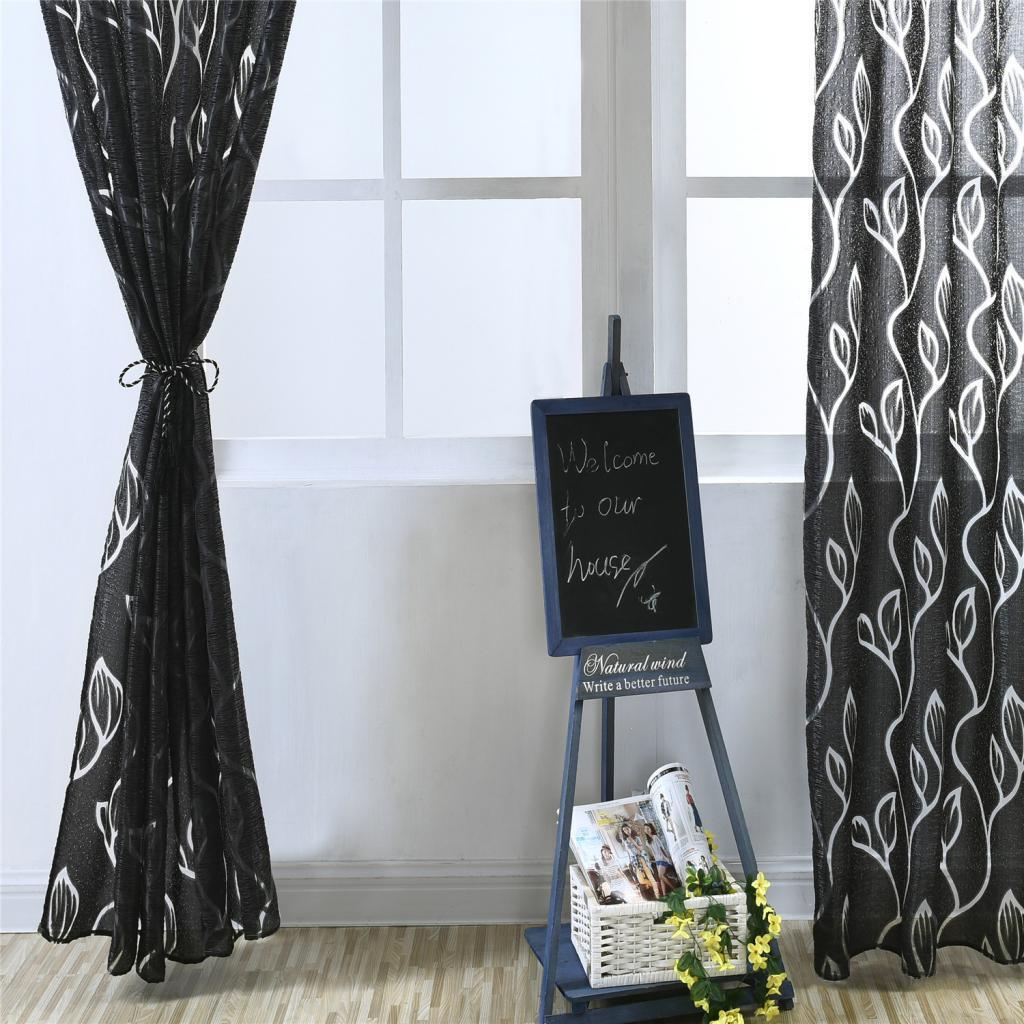 2 Pieces 100x250cm Leaves Bubble Snuff Curtain Sheer Voile Curtain Black