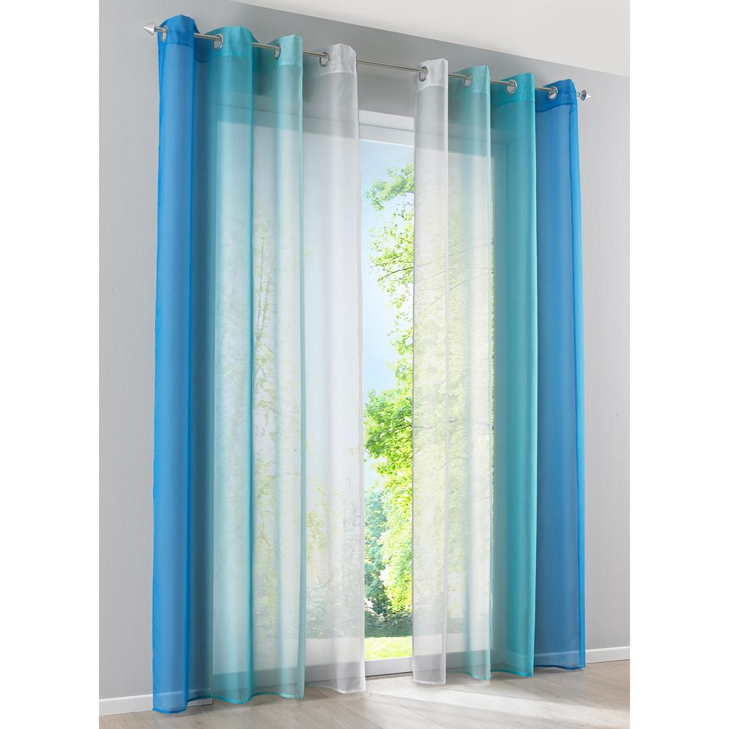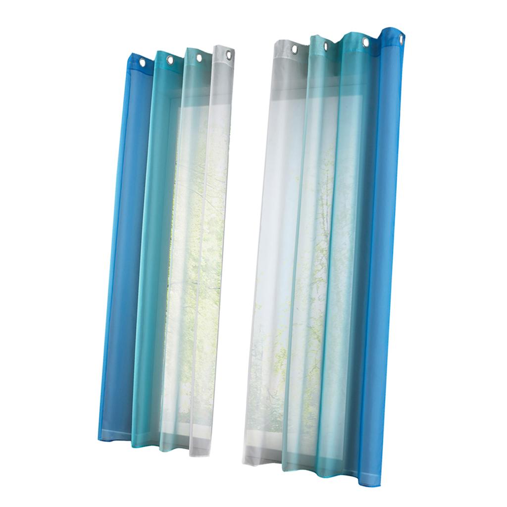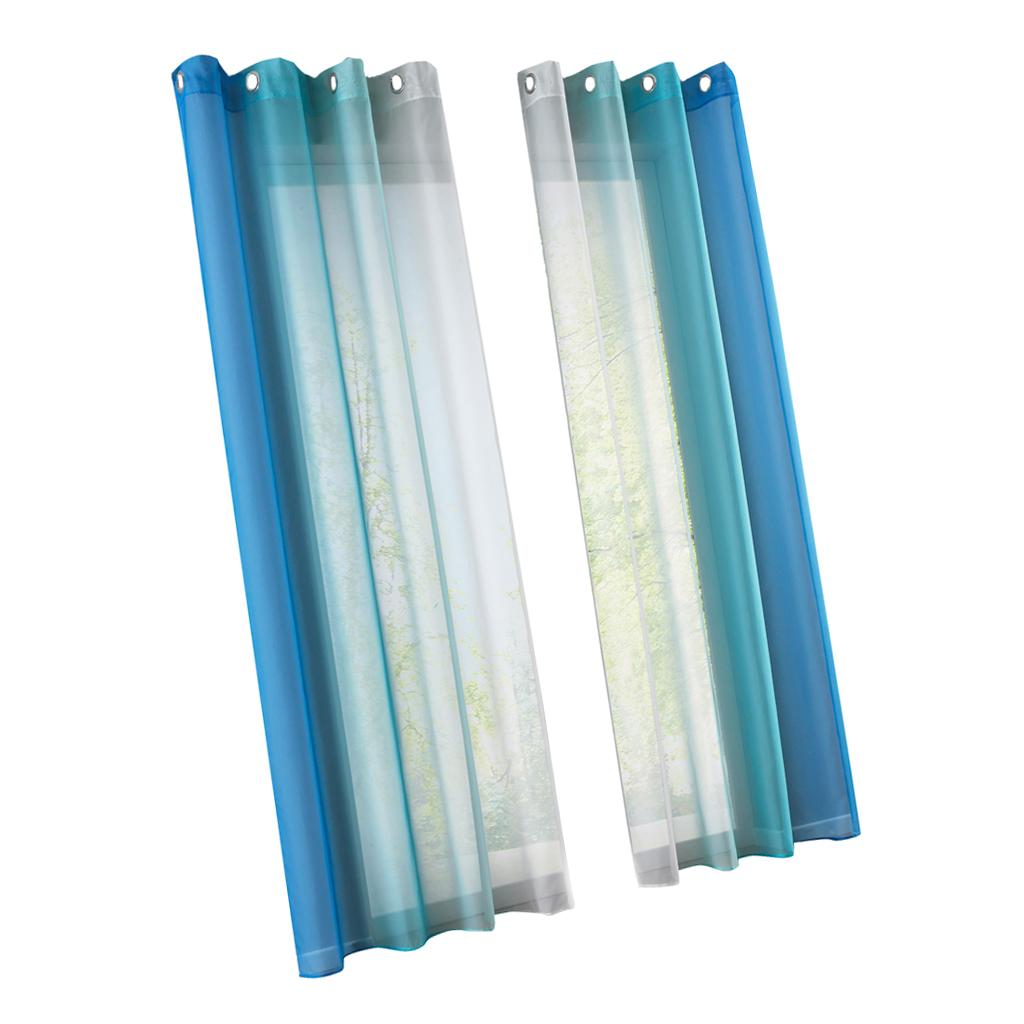 2 Pieces Voile Sheer Window Curtain Grommet Panel Total Width 280cm Blue- Size XL