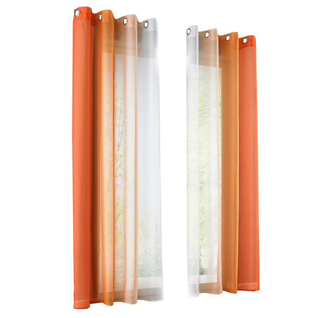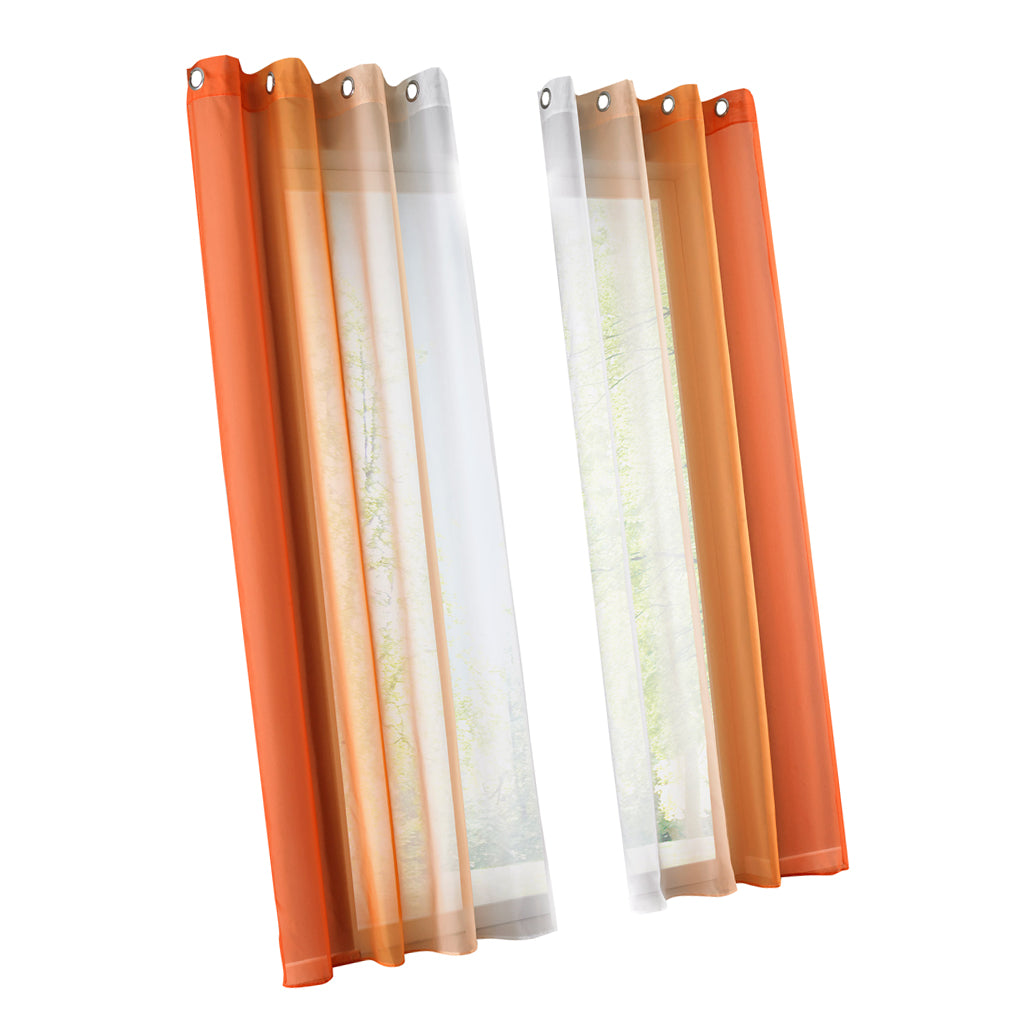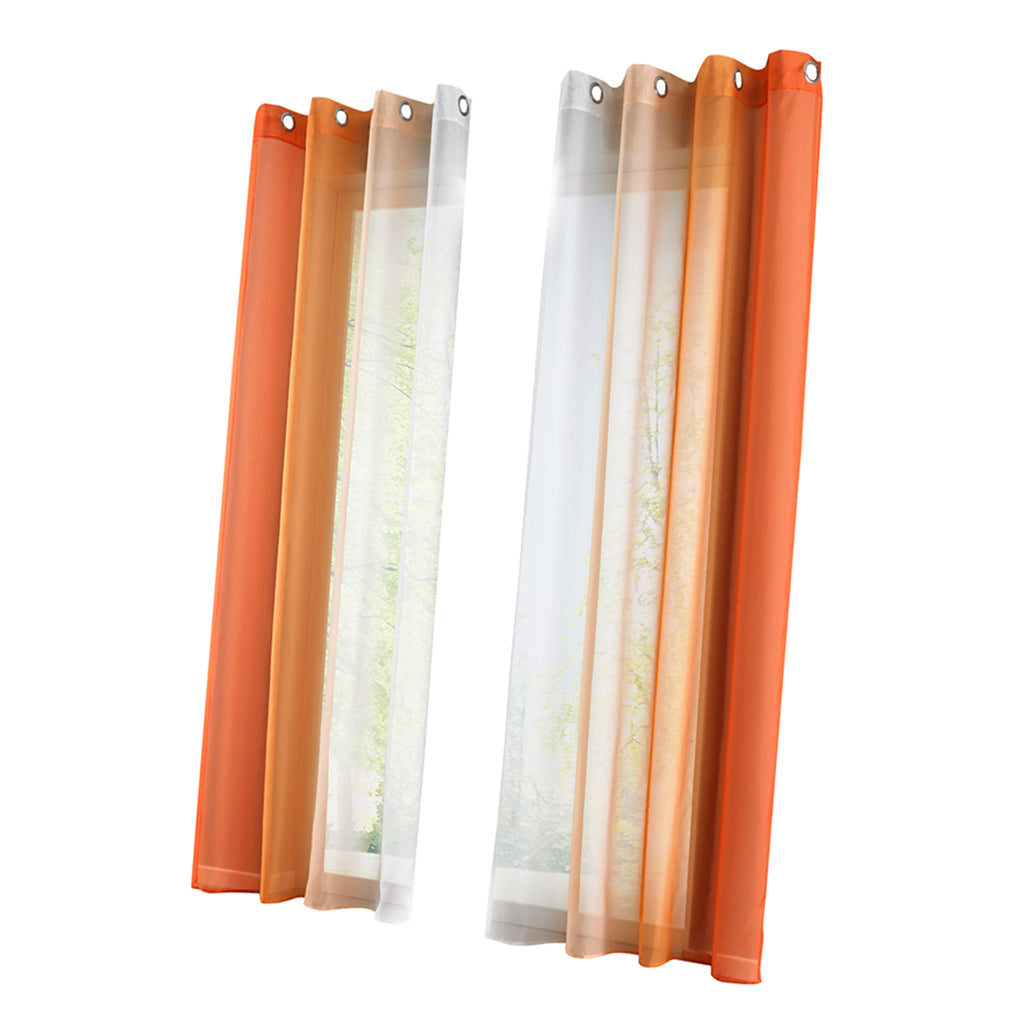 2 Pieces Voile Sheer Window Curtain Grommet Panel Total Width 280cm Orange- Size S