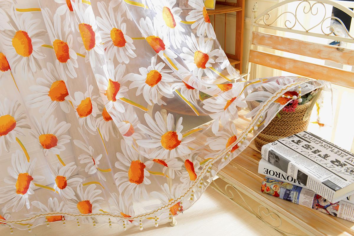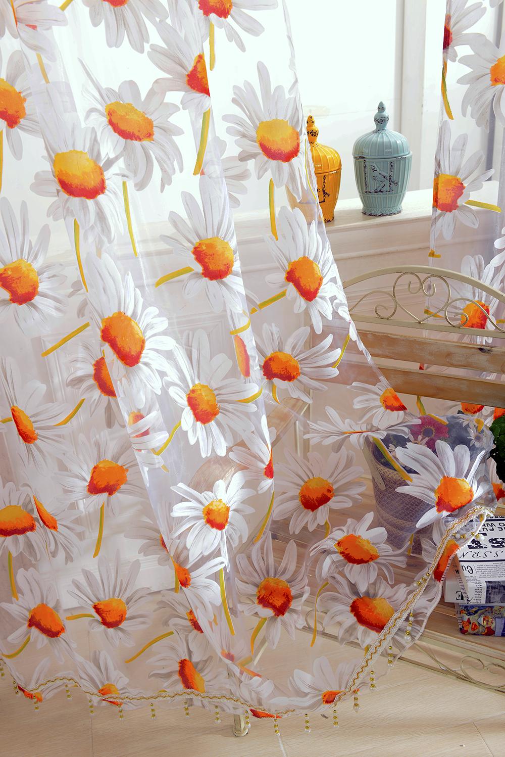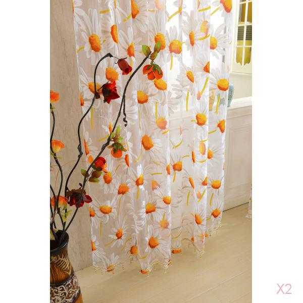 2 Sunflower Voile Window Curtain Sheer Panel Balcony Divider Tulle Valance