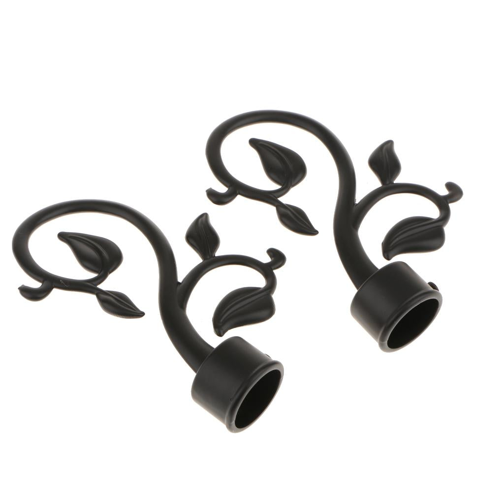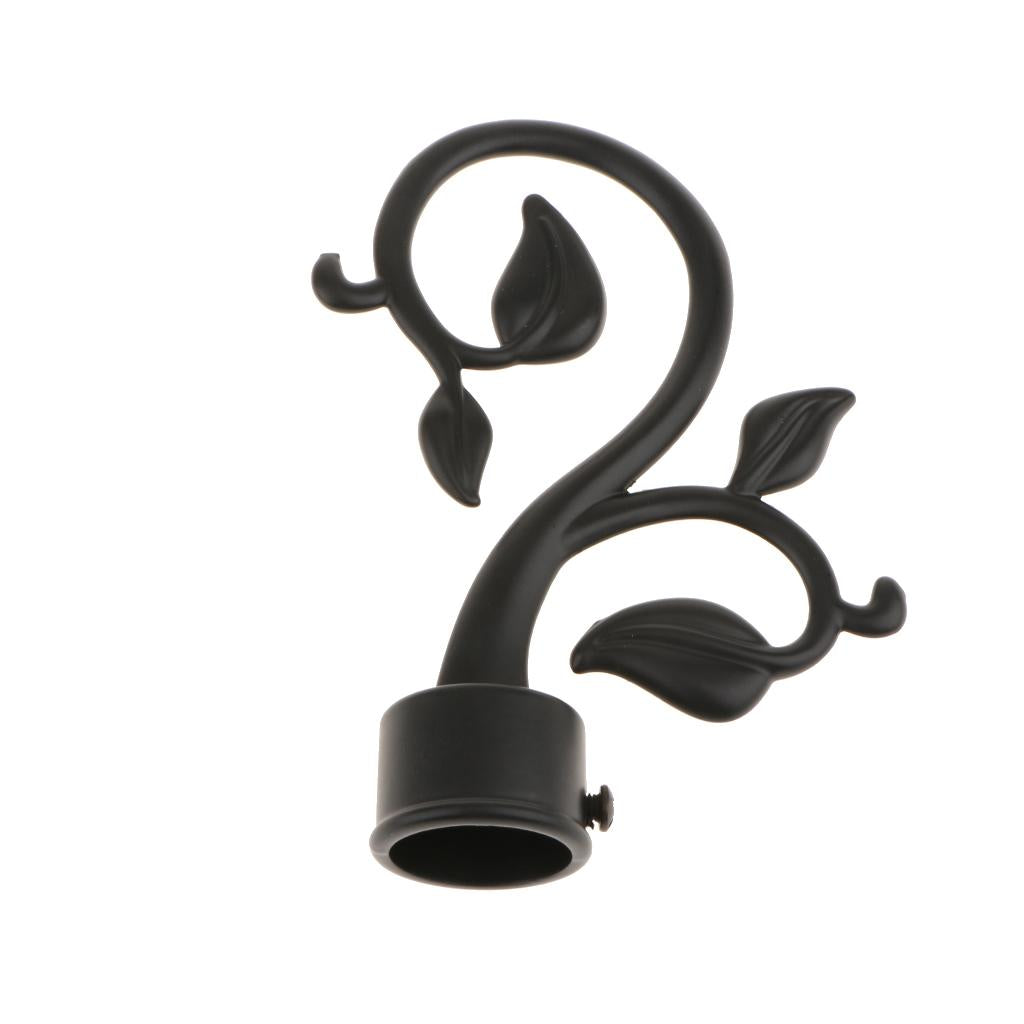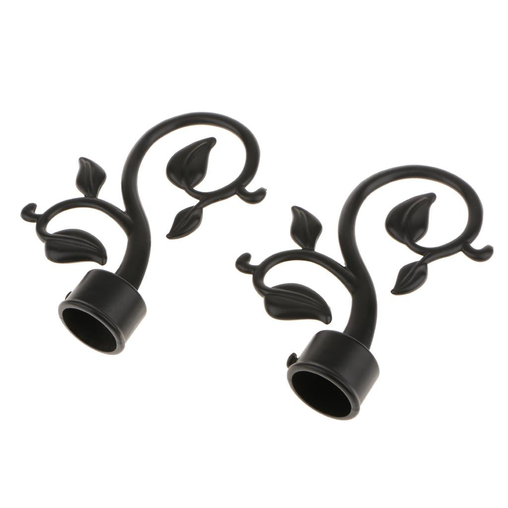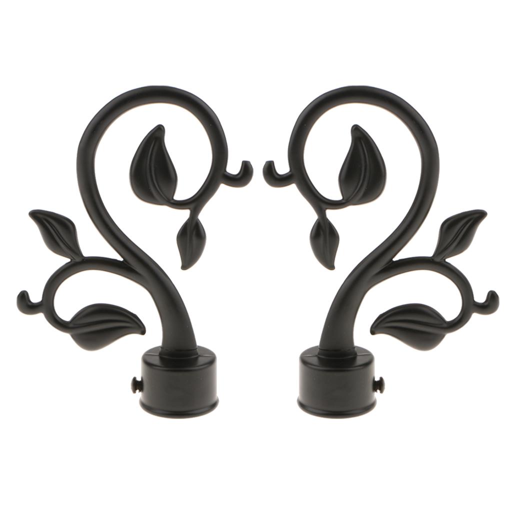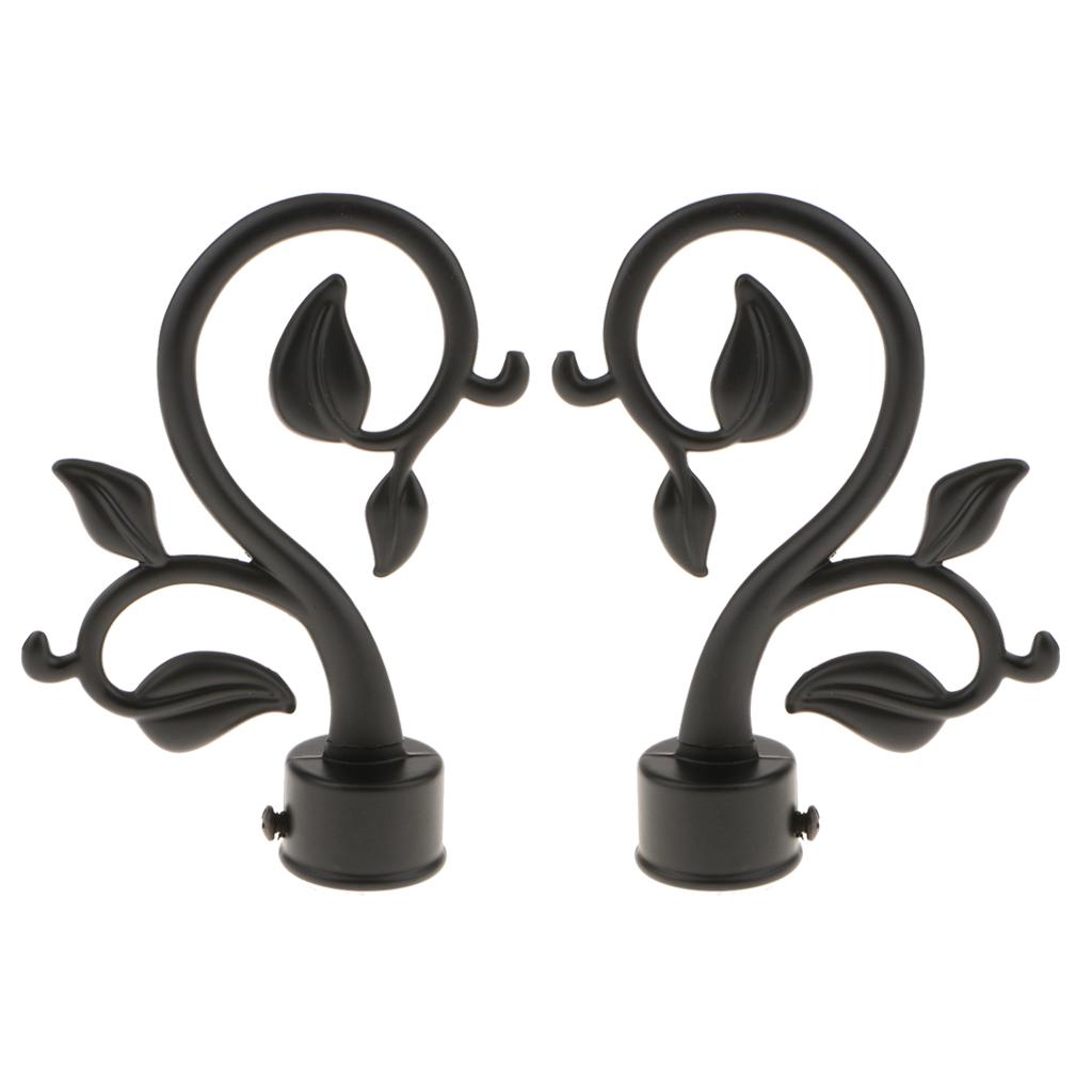 2Pcs Aluminum Alloy Window Curtain Pole End Drape Rod Finals Head for Rods with Dia. 28mm Leaf#Black
