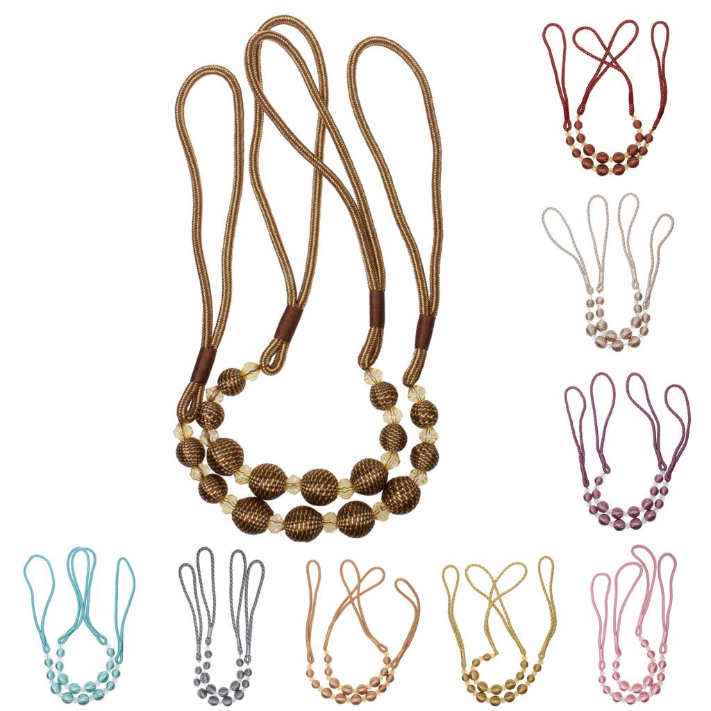 2Pcs Beads Curtain Rope Tiebacks Tie Belt for Room Window Decor Champagne