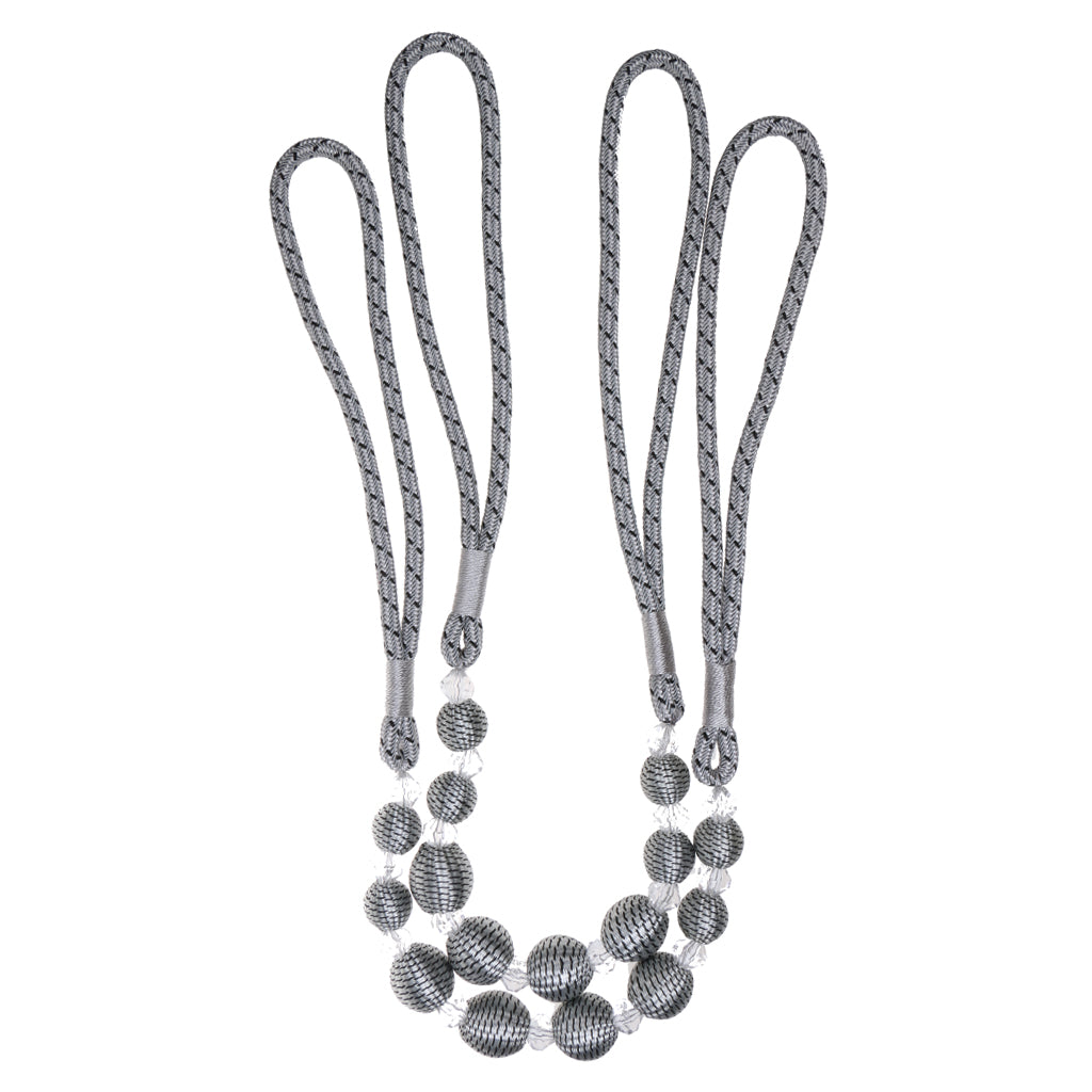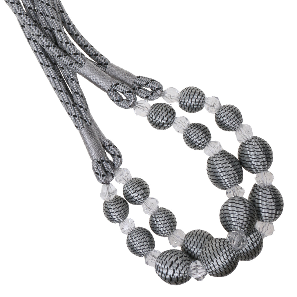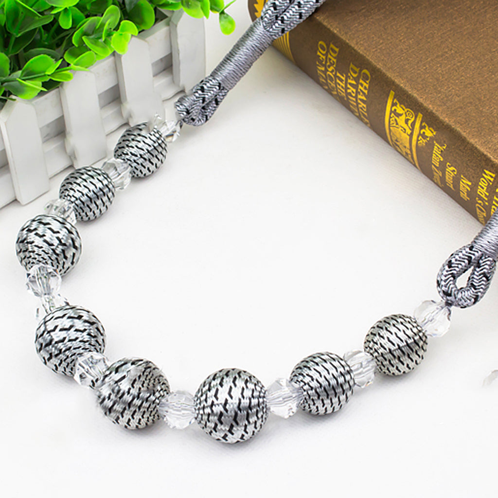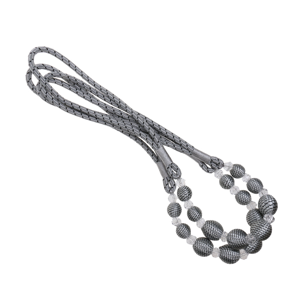 2Pcs Beads Curtain Rope Tiebacks Tie Belt for Room Window Decor Grey