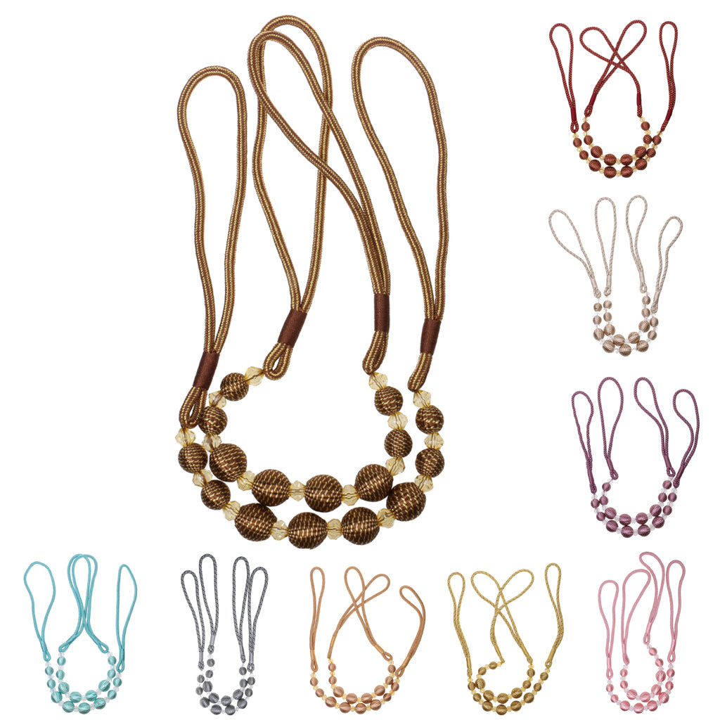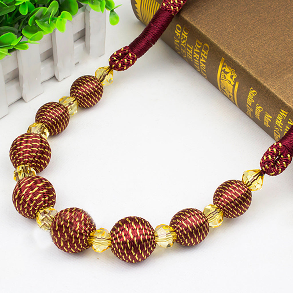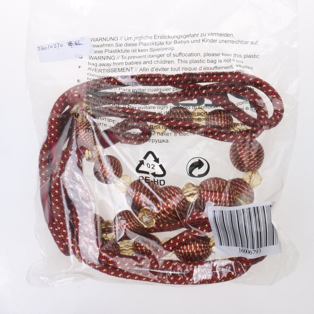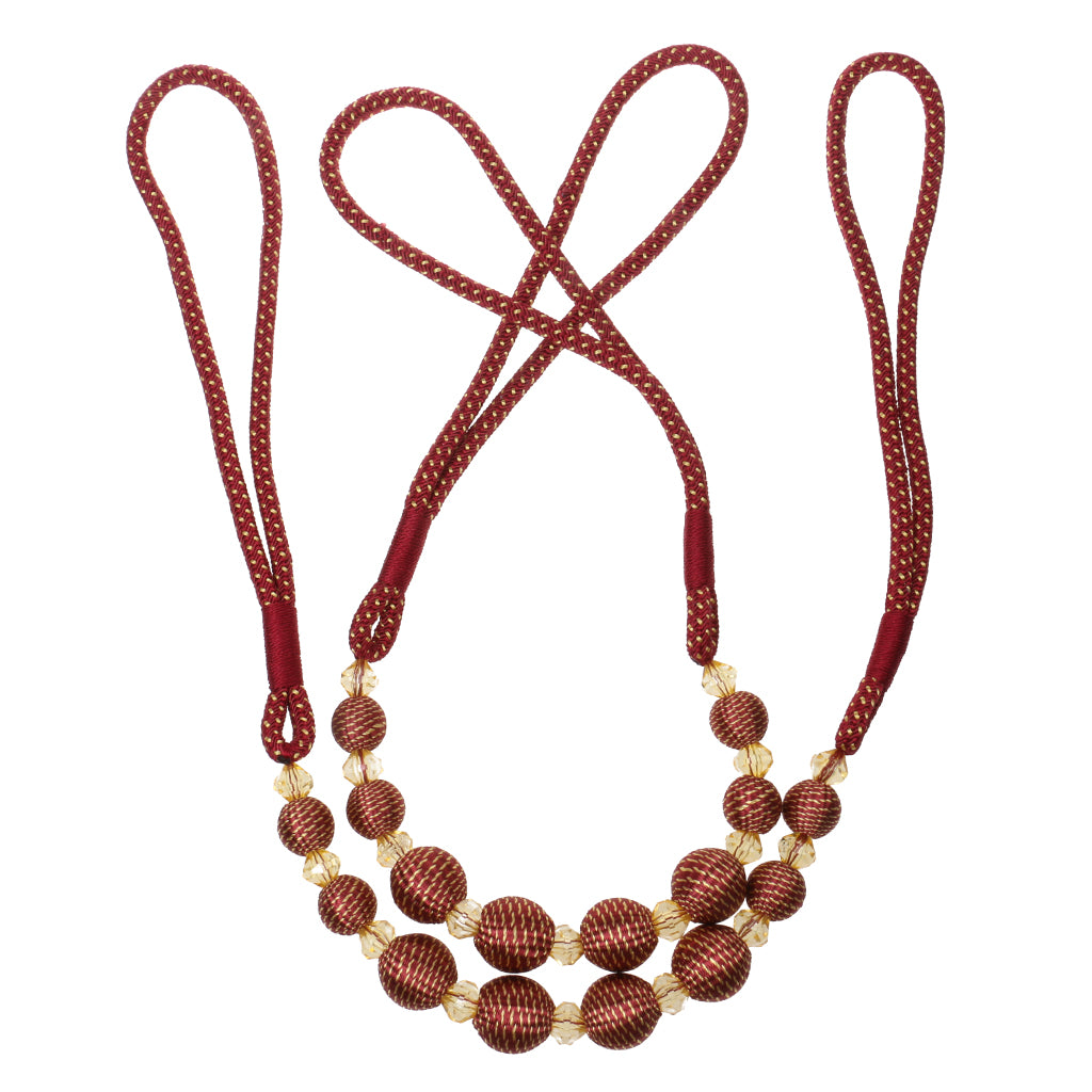 2Pcs Beads Curtain Rope Tiebacks Tie Belt for Room Window Decor Purplish Red
