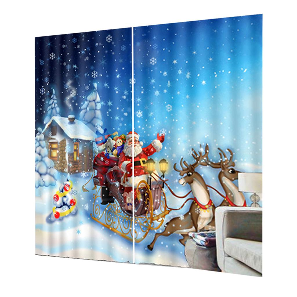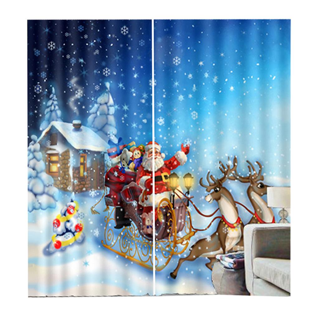 2pcs Christmas Themed Window Door Curtains Drapery Blinds for Xmas Decor 007