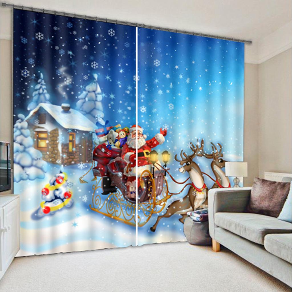 Christmas themed curtains with vivid images of unique scenes of Christmas, creating a festive atmosphere for holiday.