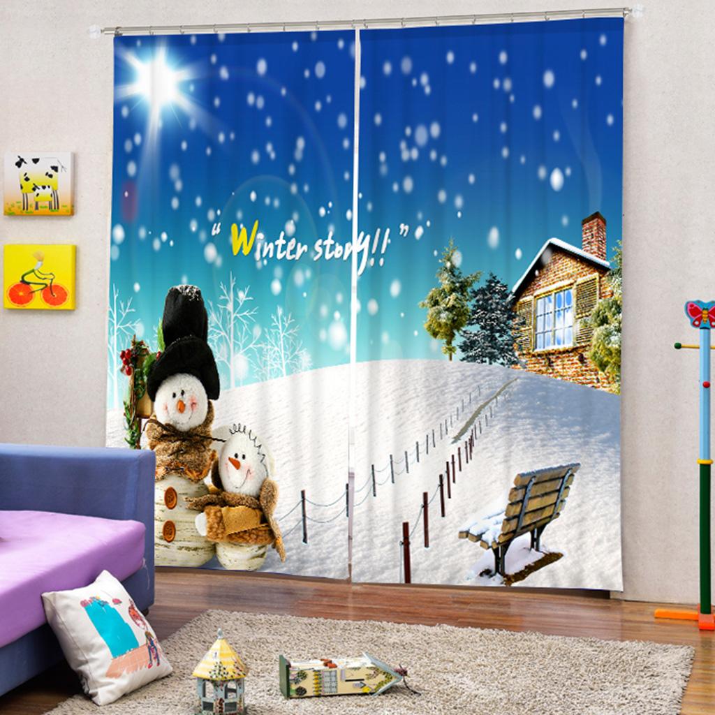 Christmas themed curtains with vivid images of unique scenes of Christmas, creating a festive atmosphere for holiday.