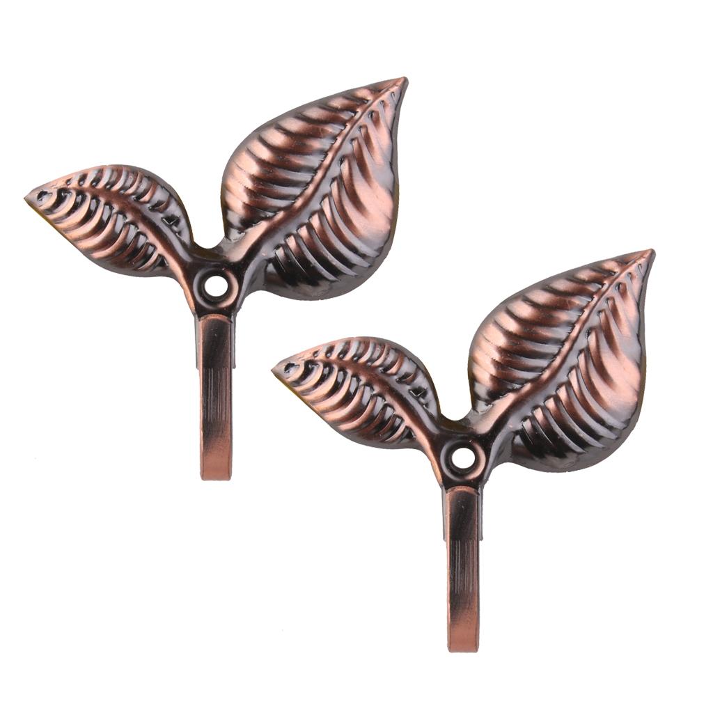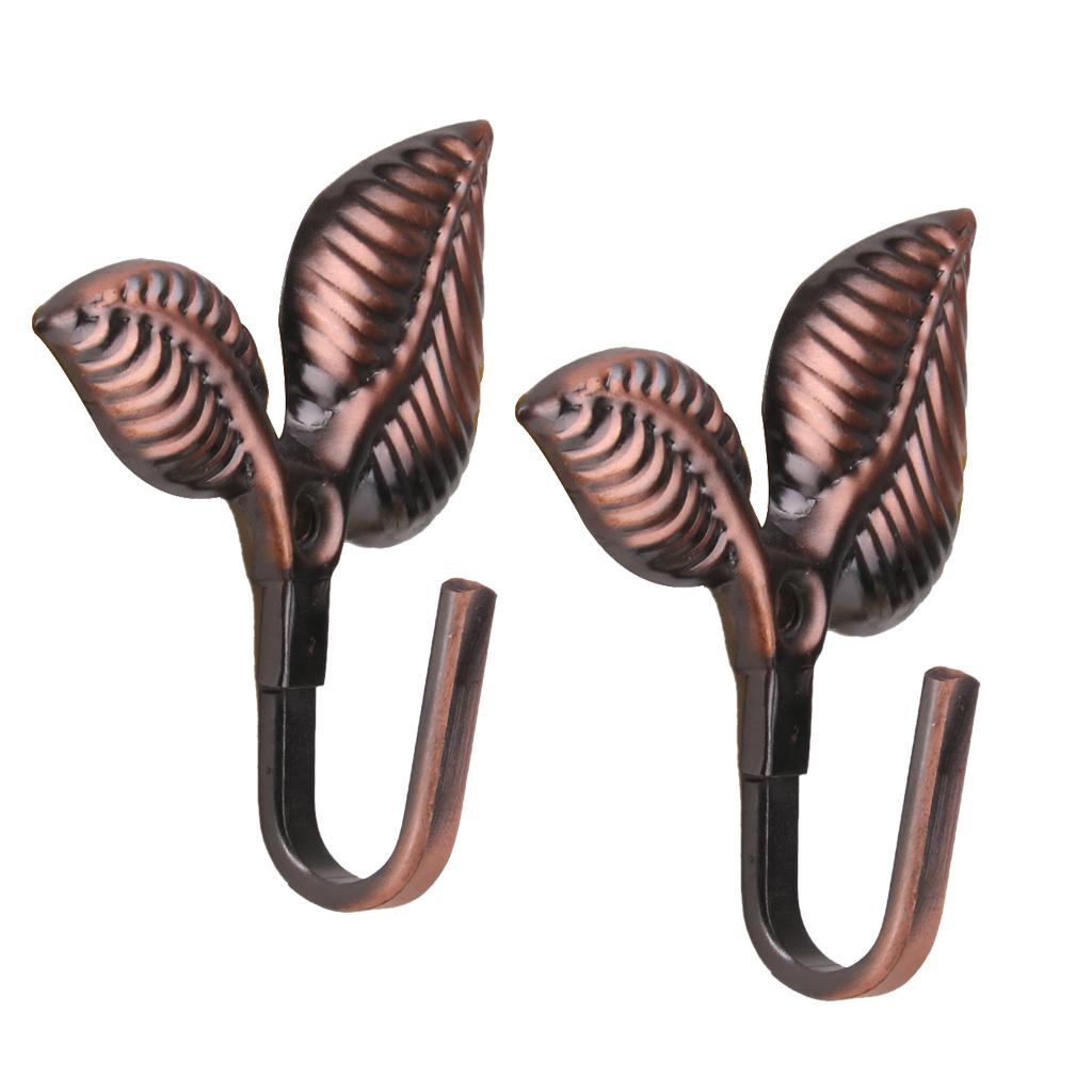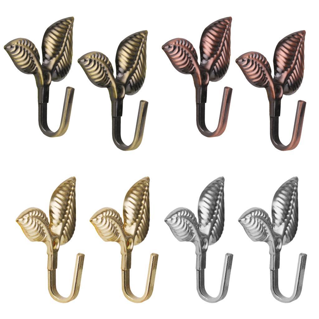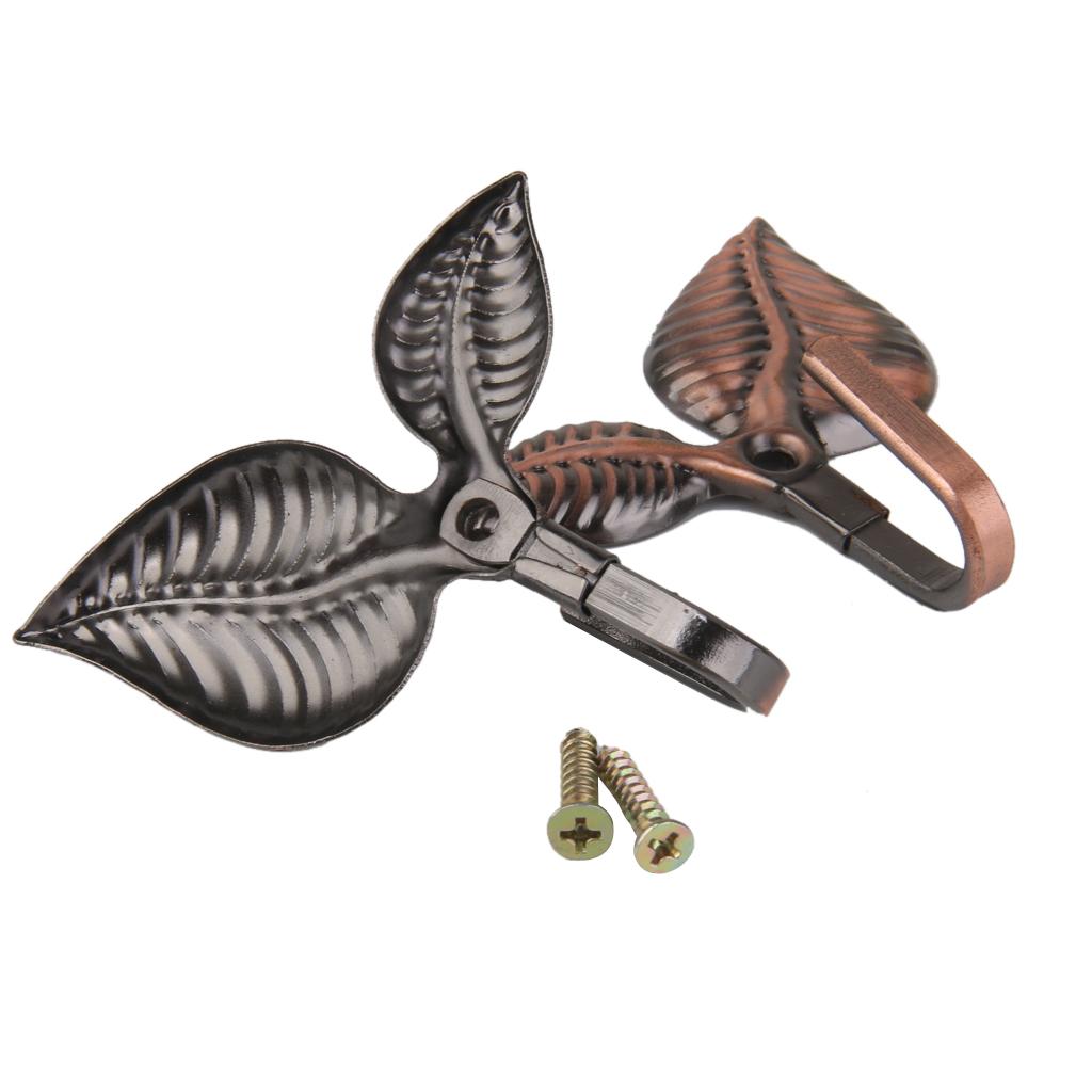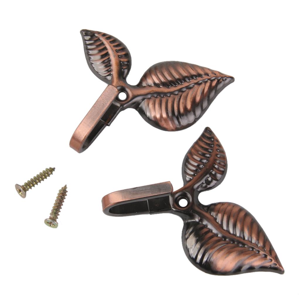 2Pcs Leaf Curtain Drapery Tiebacks Door Wall Hat Hooks Holder Hanger Copper