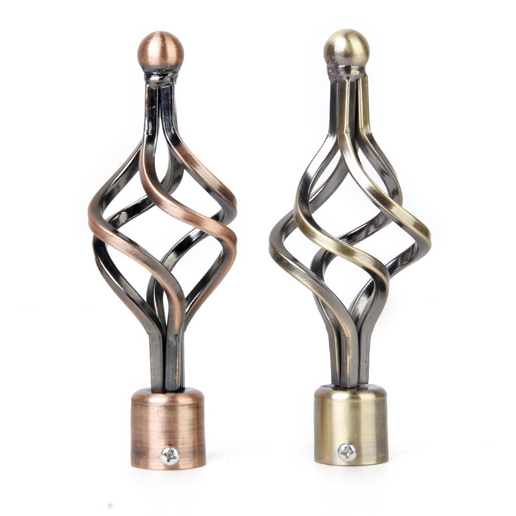 2x Bronze Twist Bird Cage Window Drapery Curtain Drape Rod Decoration Head Top