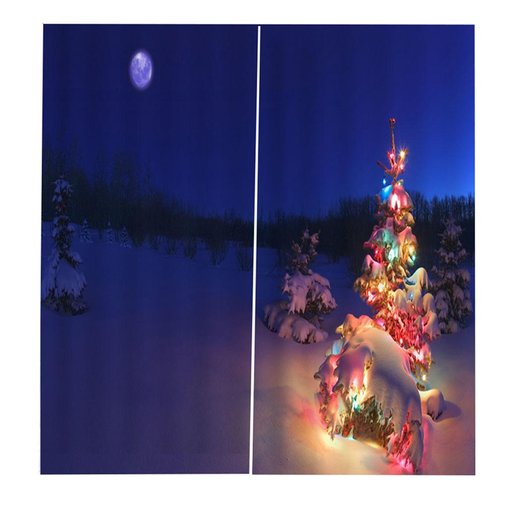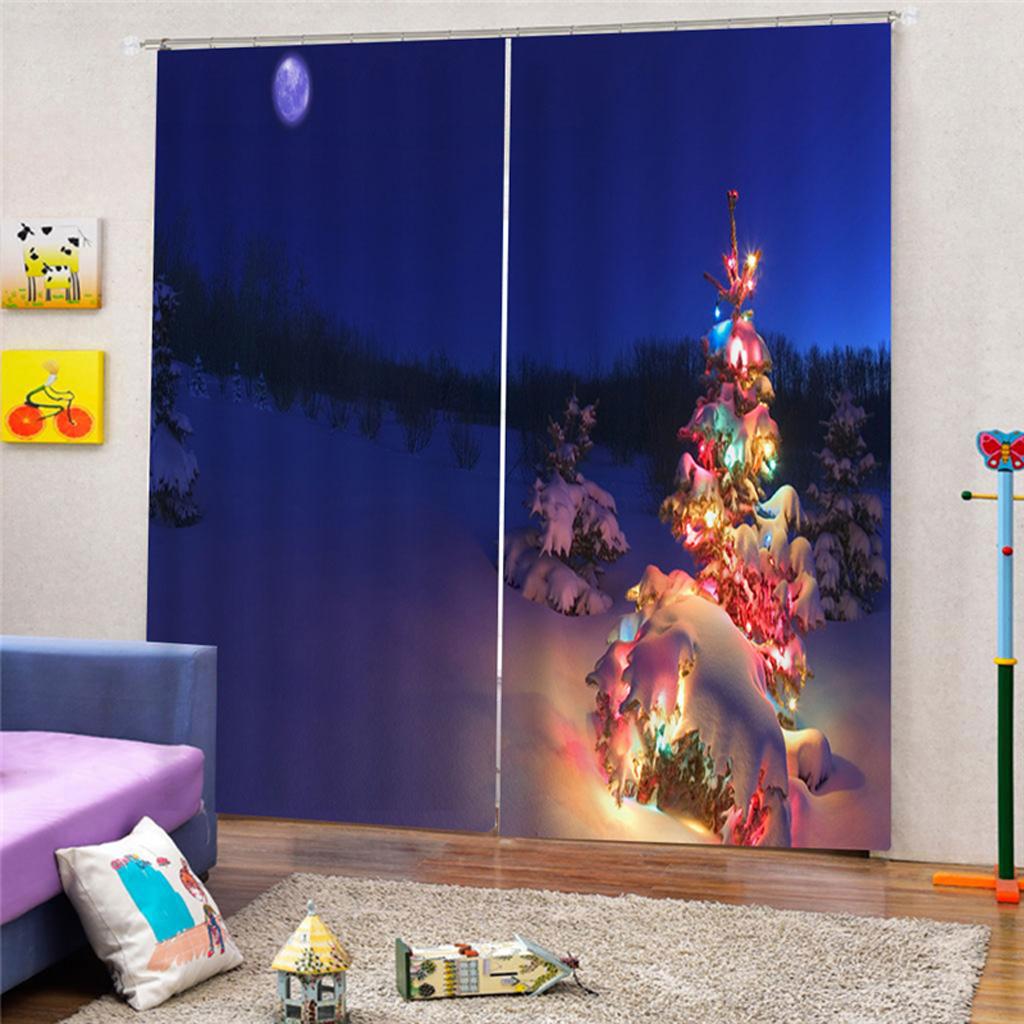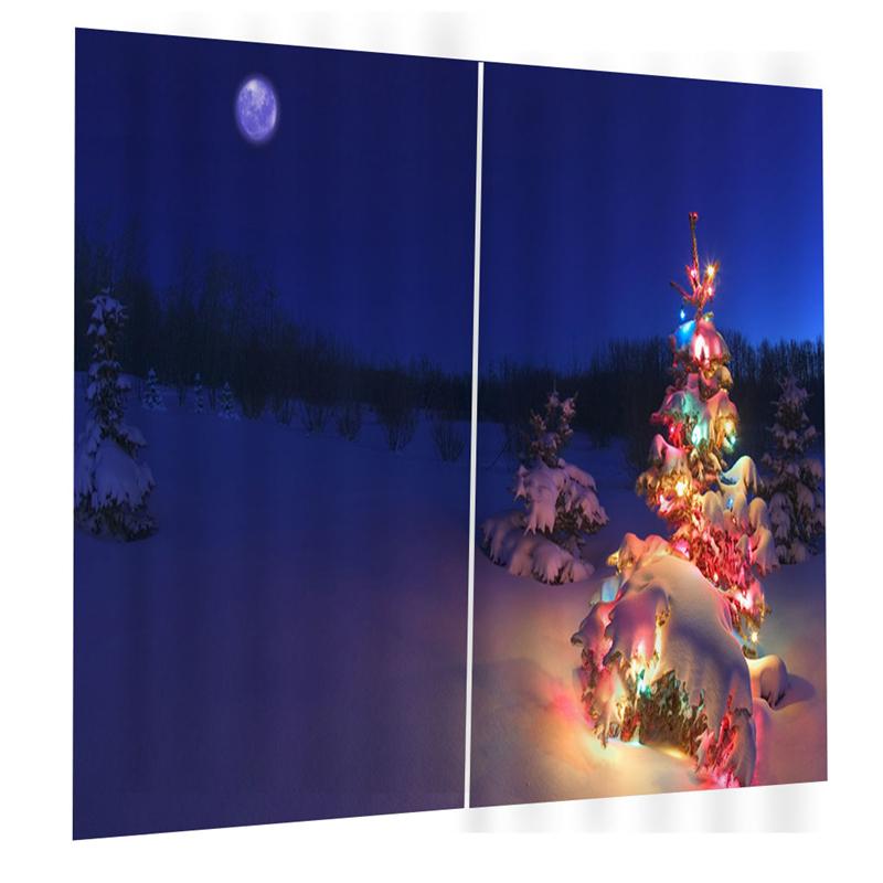 Christmas themed curtains with vivid images of unique scenes of Christmas, creating a festive atmosphere for holiday.