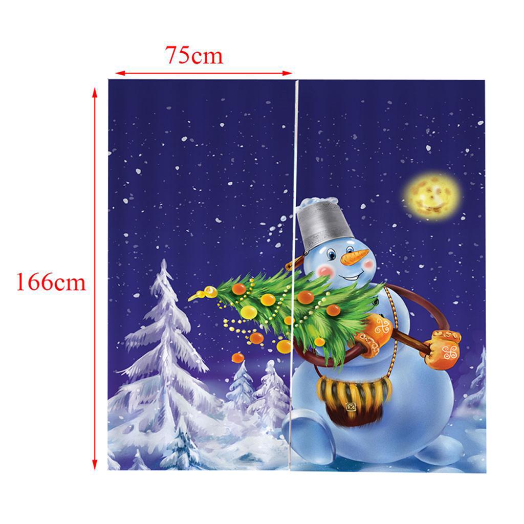 2x Christmas Themed Window Door Curtains Blinds for Christmas Decoration 26#