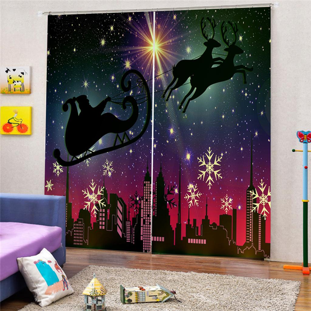 2x Christmas Themed Window Door Curtains Blinds for Christmas Decoration 4#