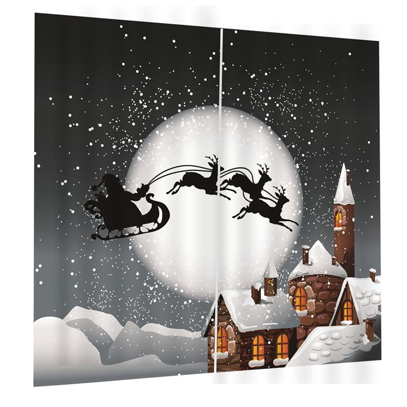 Christmas themed curtains with vivid images of unique scenes of Christmas, creating a festive atmosphere for holiday.