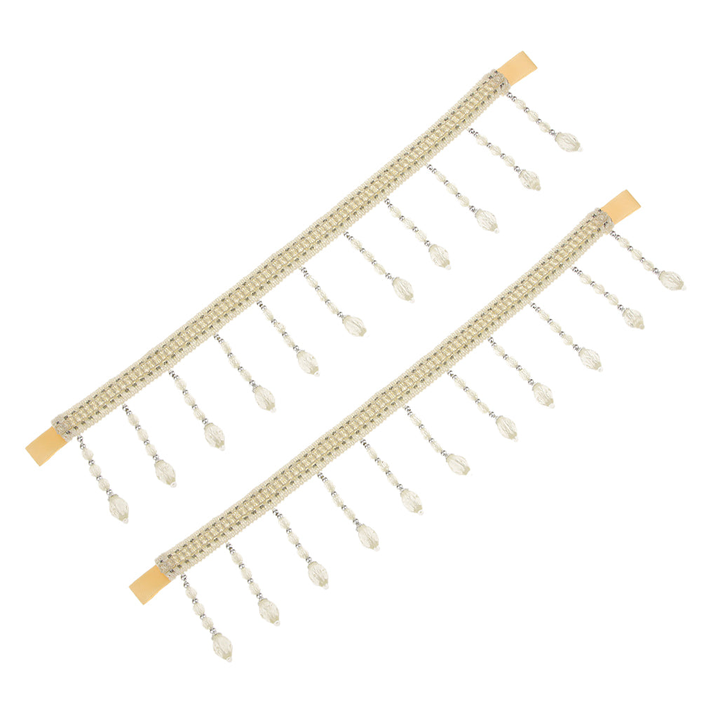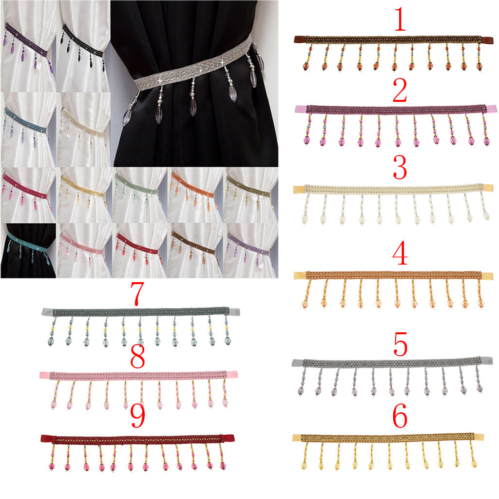 2x Crystal Beads Curtain Rope Tiebacks Tie Belt for Room Window Decor White