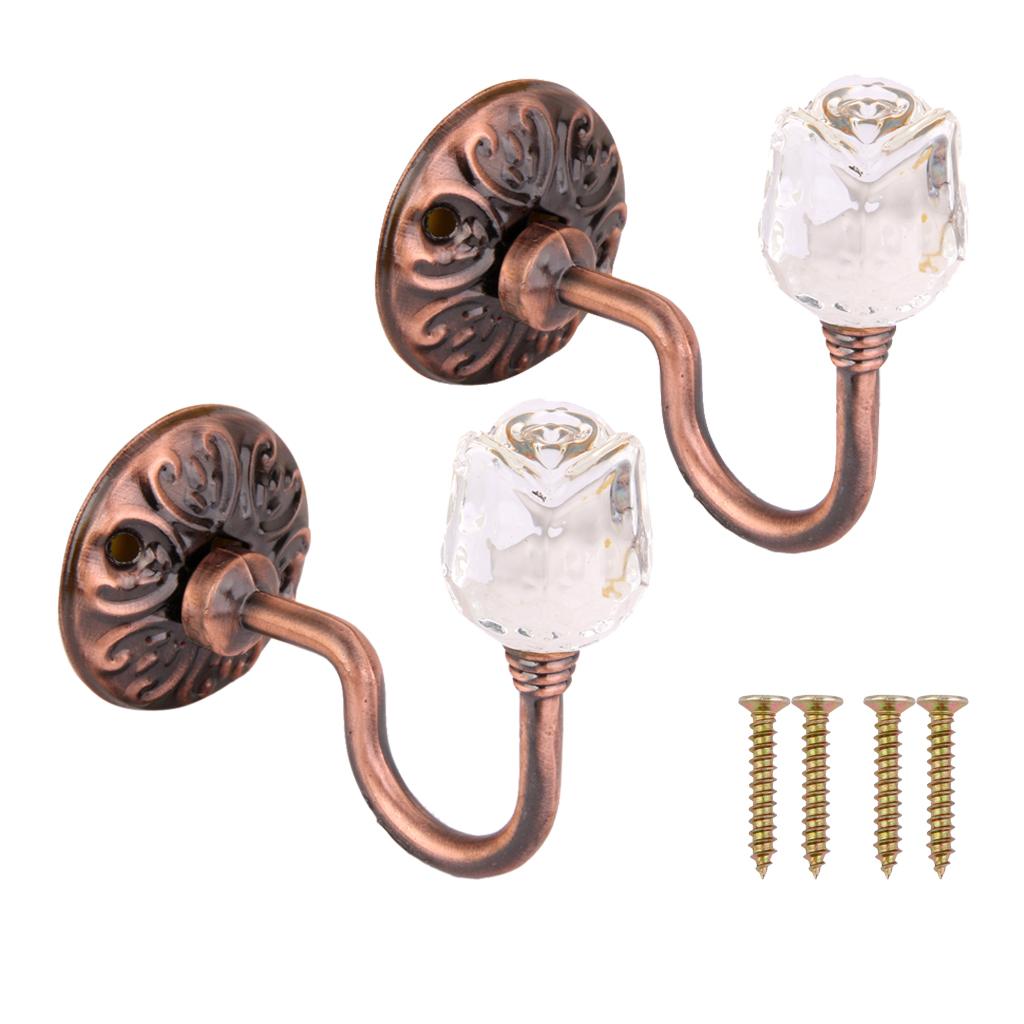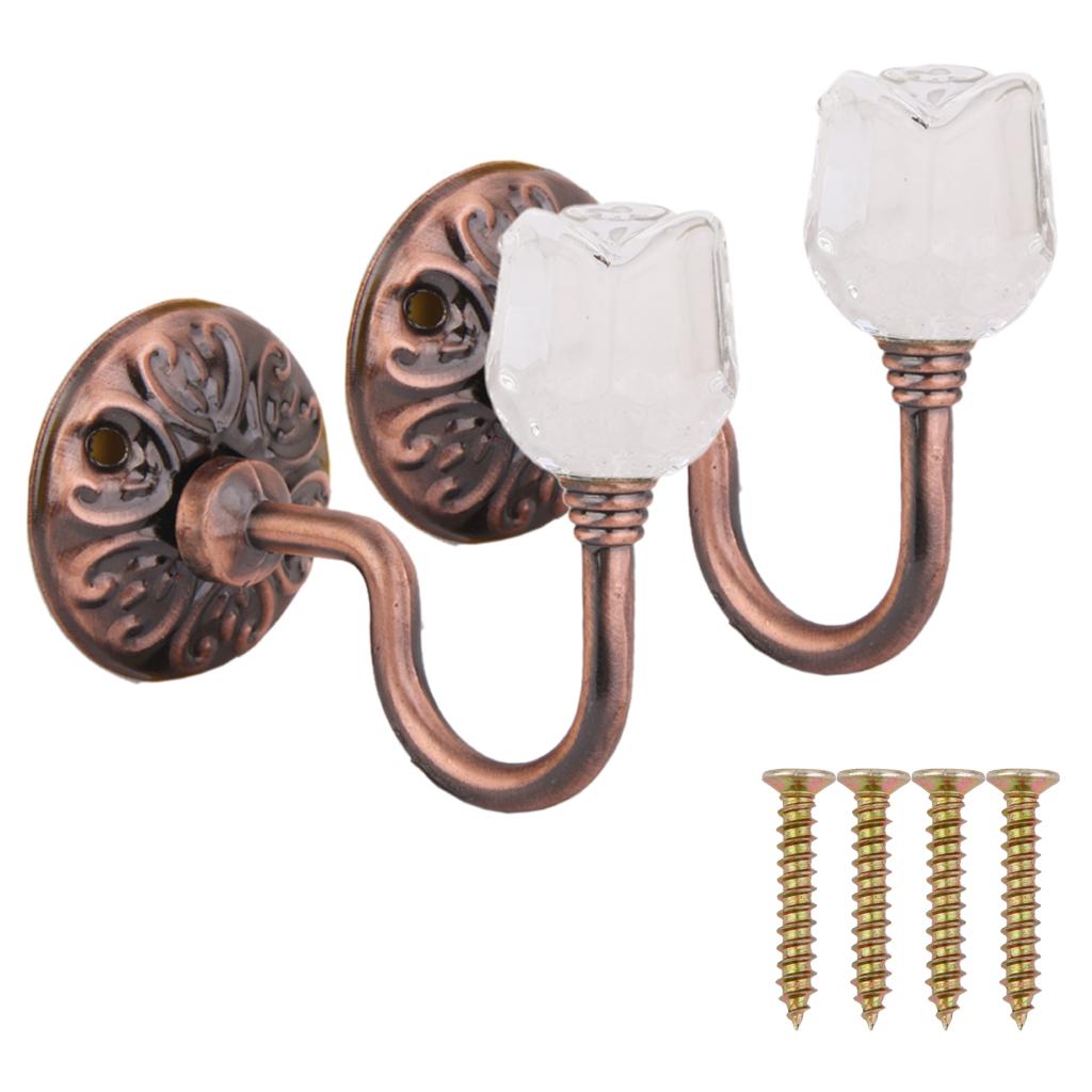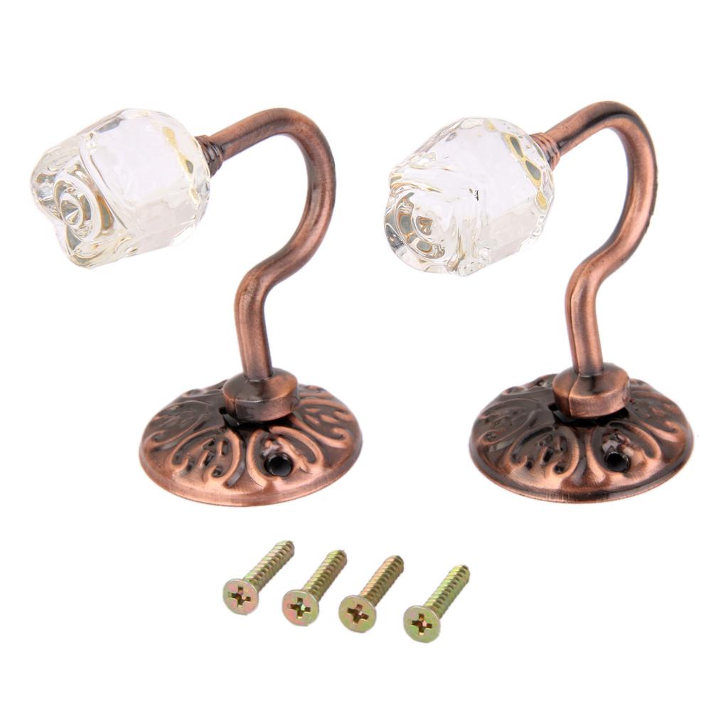 2x Crystal Rose Curtain Tiebacks Door Wall Tassel Hooks Holder Hanger Copper