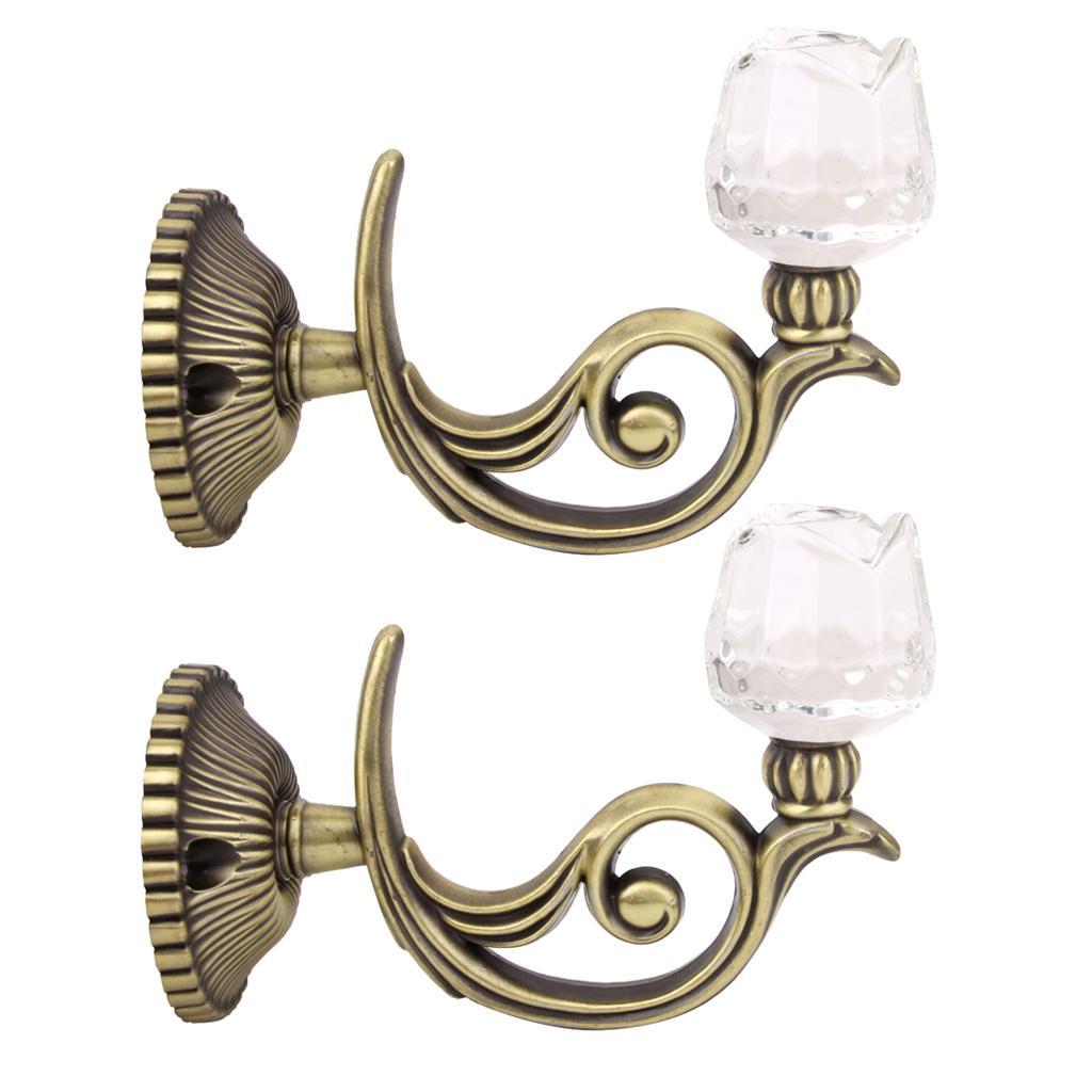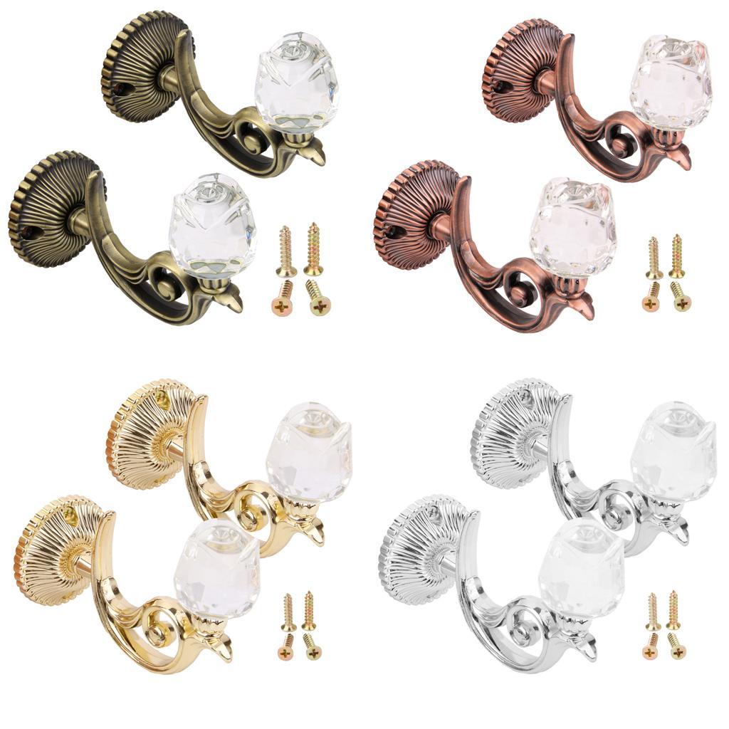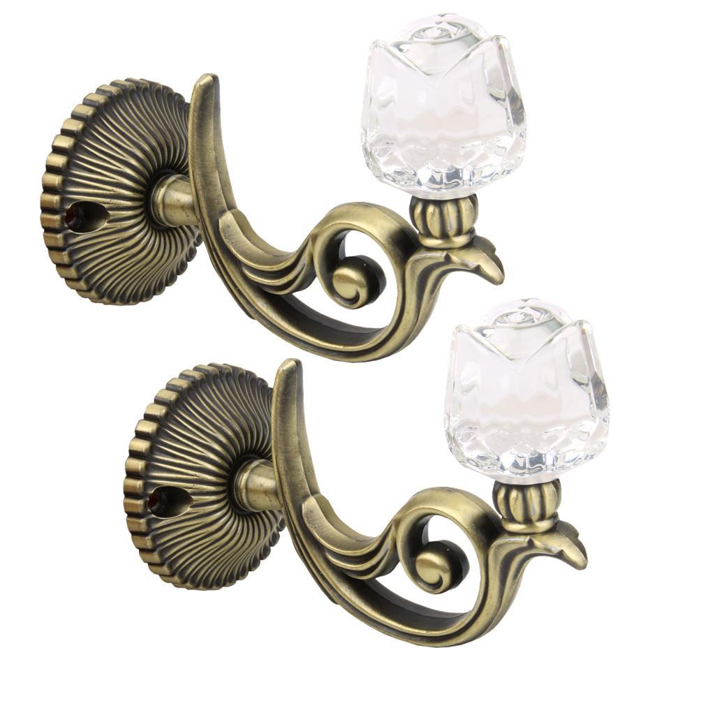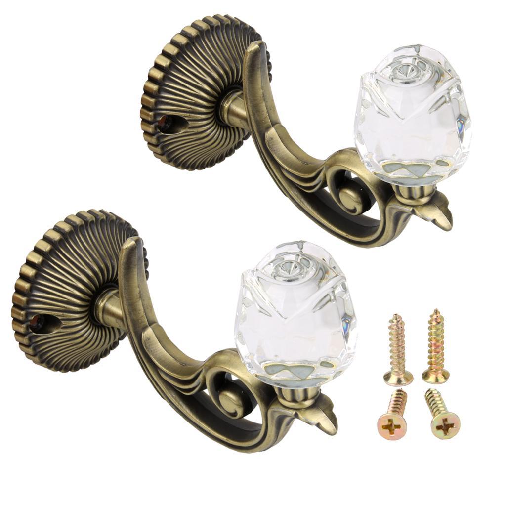 2x Crystal Rose Curtain Tiebacks Wall Tassel Hooks Holder Hanger Bronze