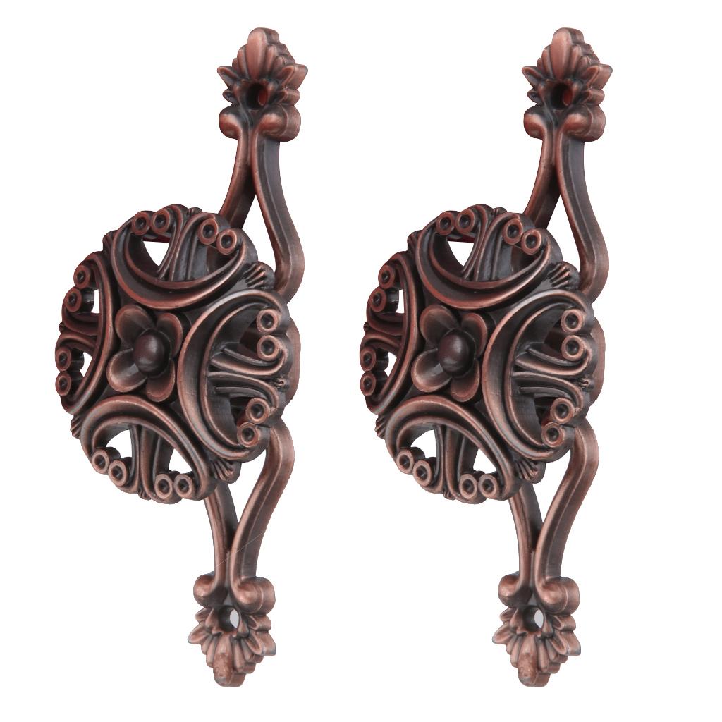 2x Flower Design Curtain Tiebacks Door Wall Mount Hanger Holder -Red copper
