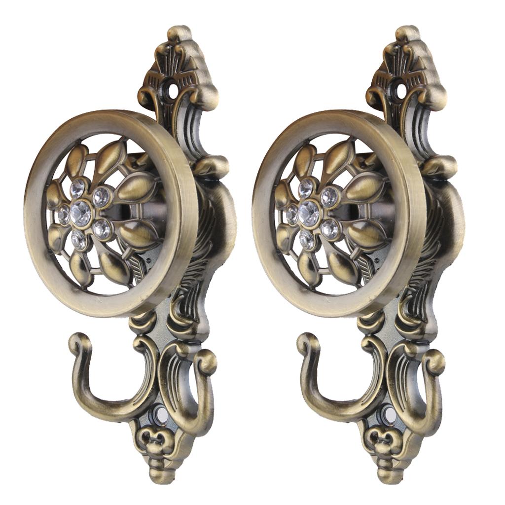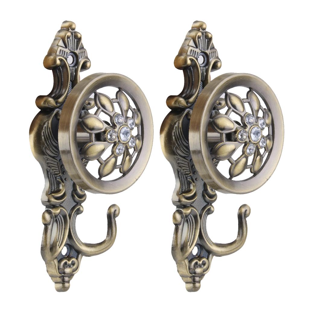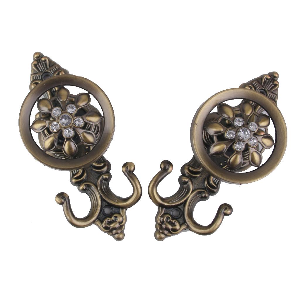 2x Rhinestone Flower Design Curtain Tiebacks Door Wall Hooks Holder -Bronze