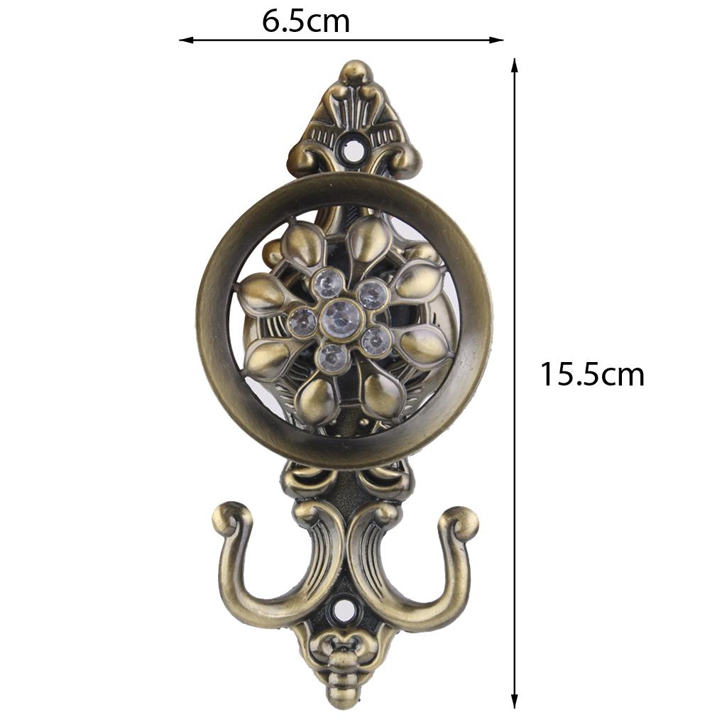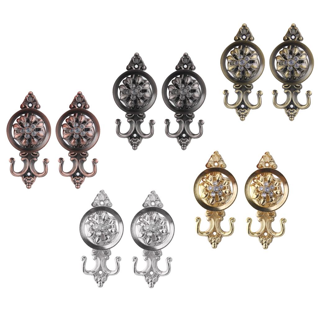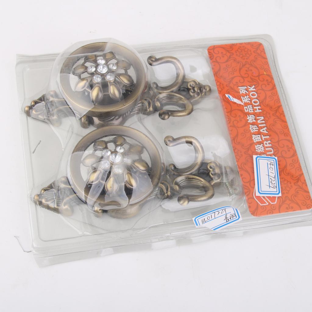 2x Rhinestone Flower Design Curtain Tiebacks Door Wall Hooks Holder -Bronze
