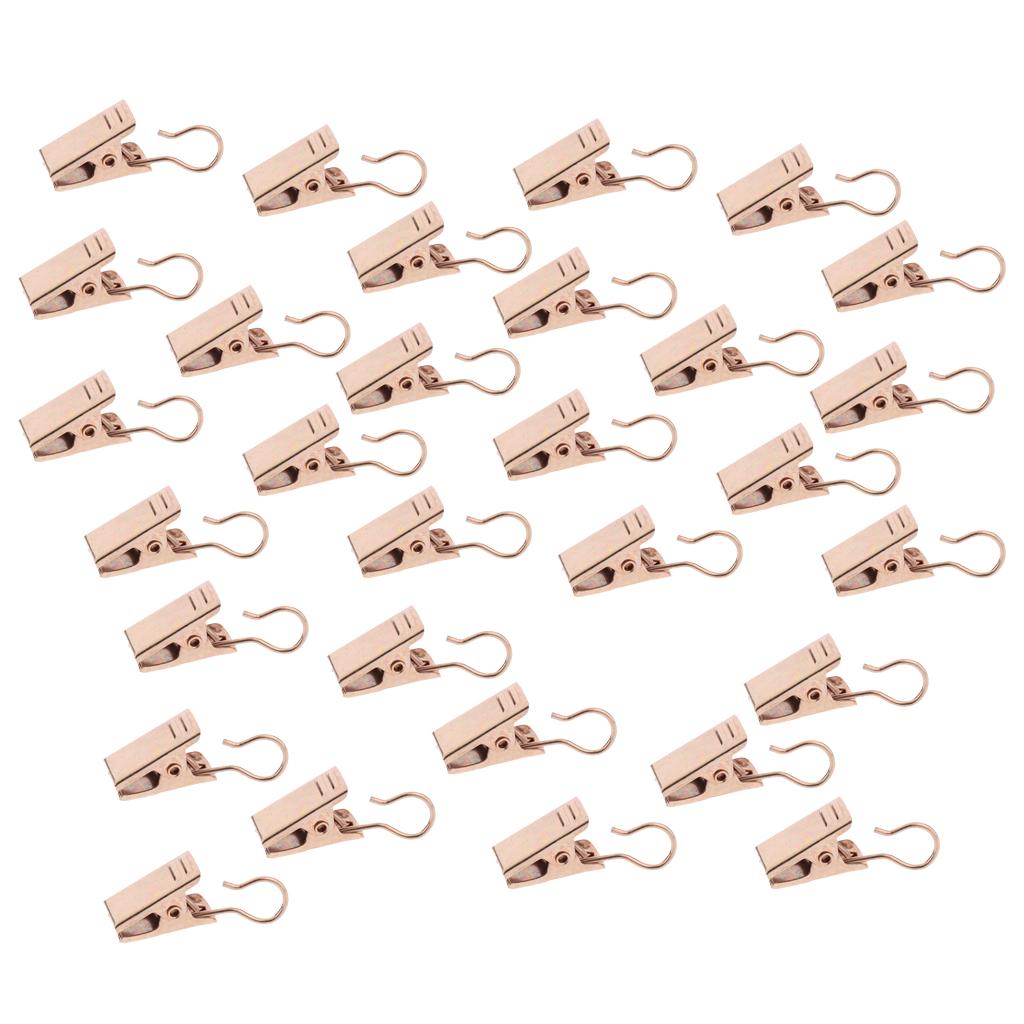 30 x Shower Curtain Clips with Hook Gliding Hanging Clamp Hanger Hook, Clothes Peg 32mm Gold