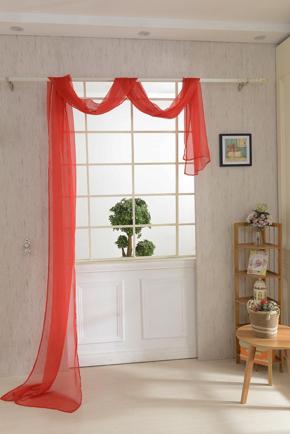 550*80cm Solid Scarf Sheer Voile Window Curtain Drape Valance -Red