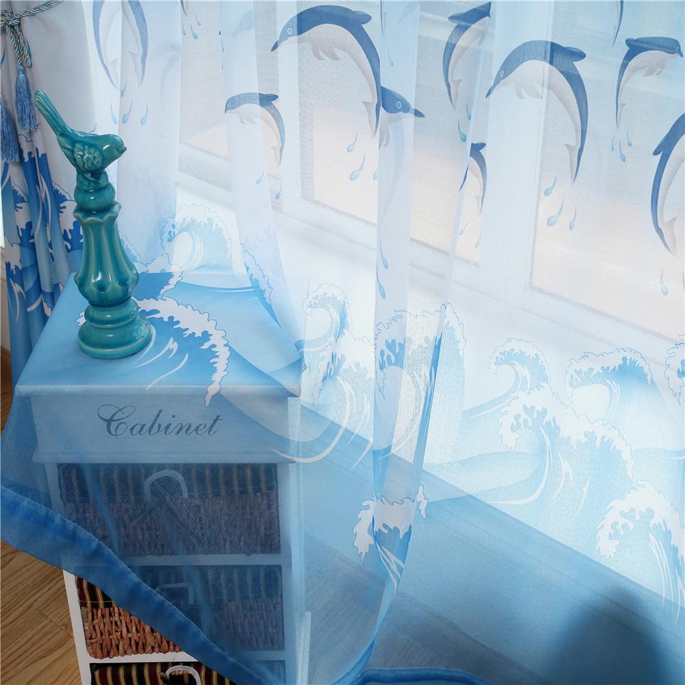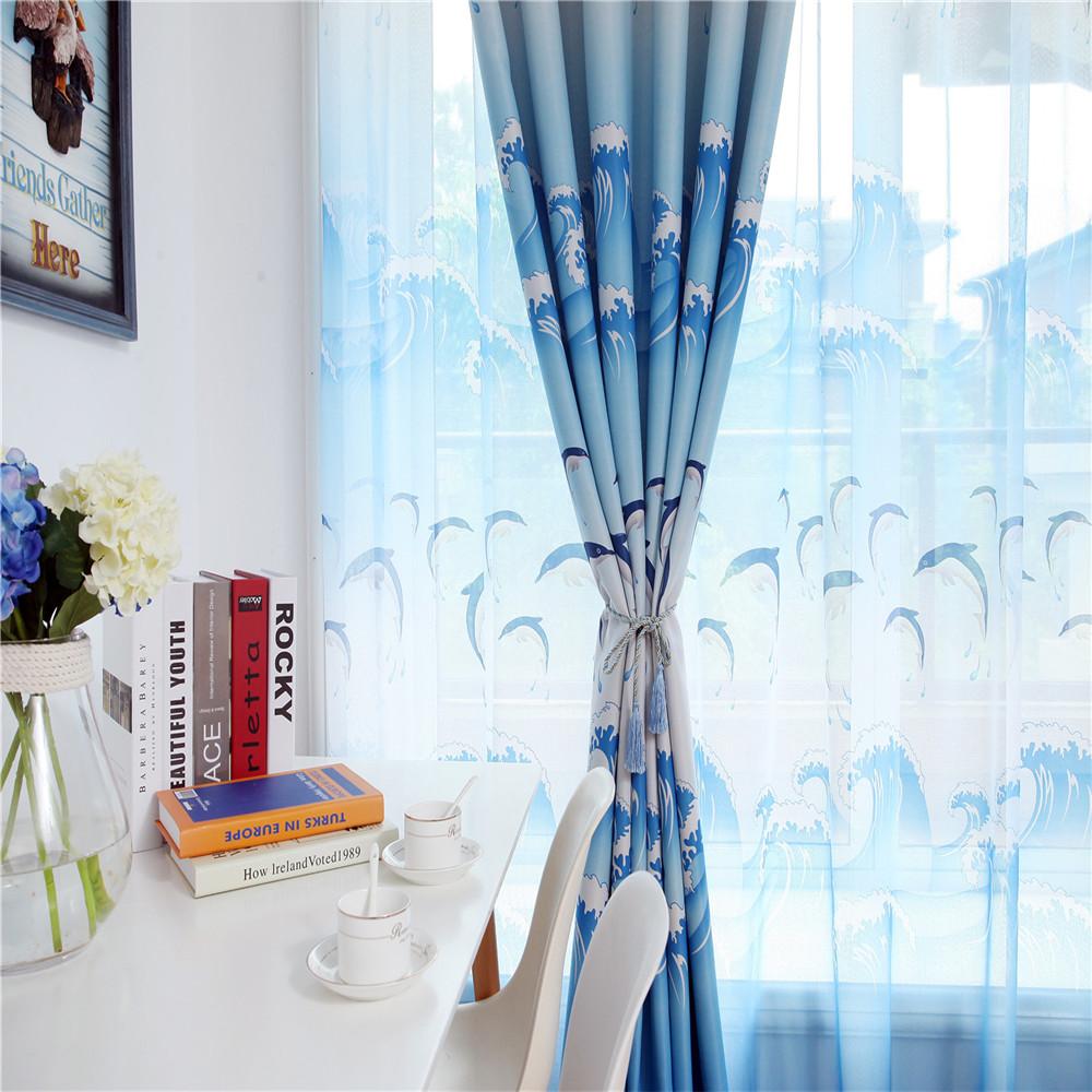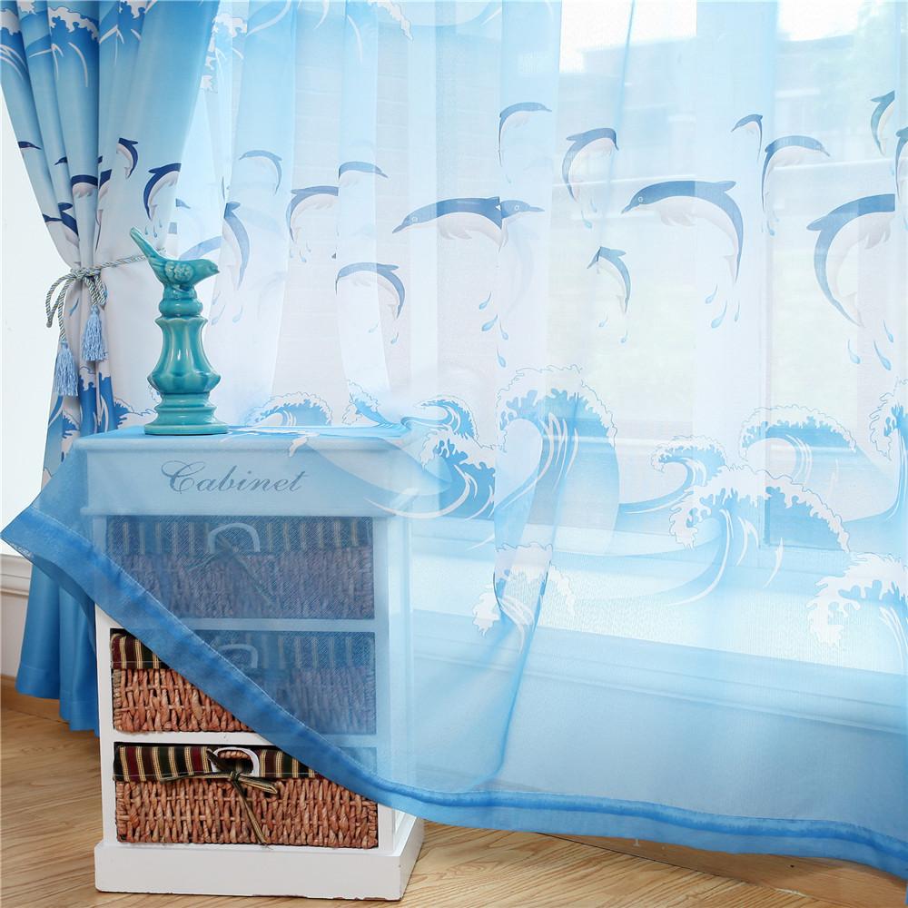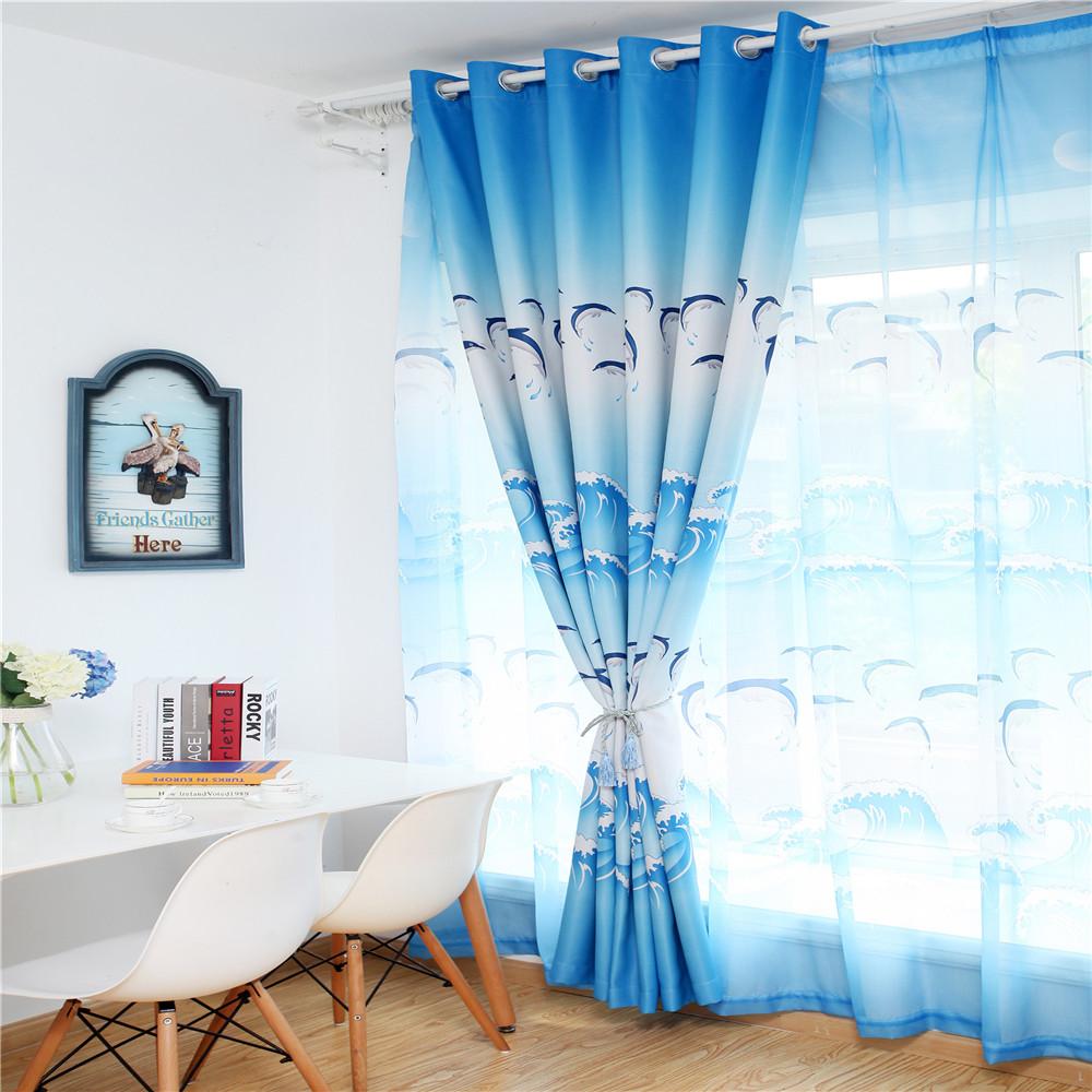 Blackout/Voile Curtain for Home Decor 100x250cm Hook Voile Blue Dolphine