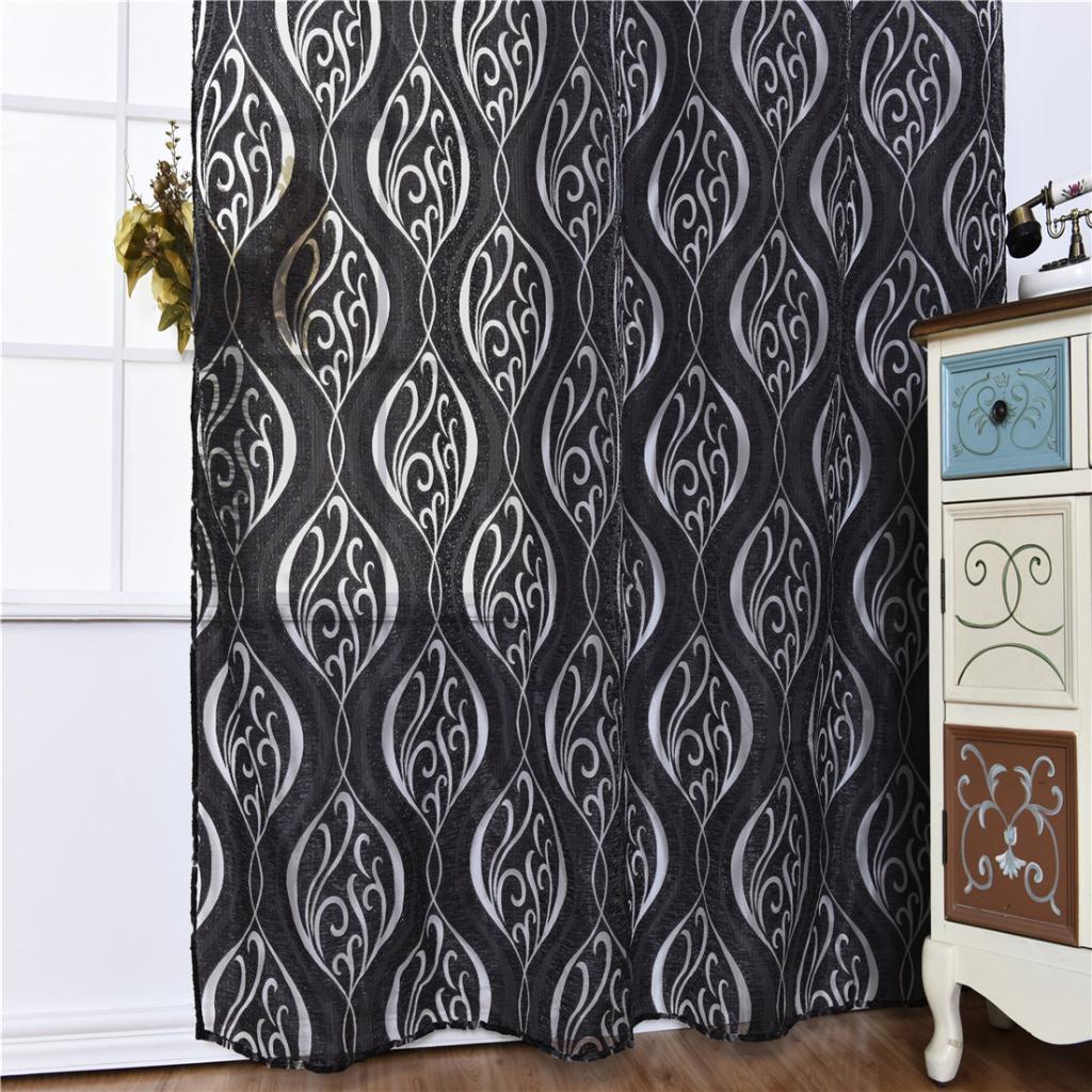 Bubble Flower Vines Window Curtains Gauze Sheers Room Divider Black Vines