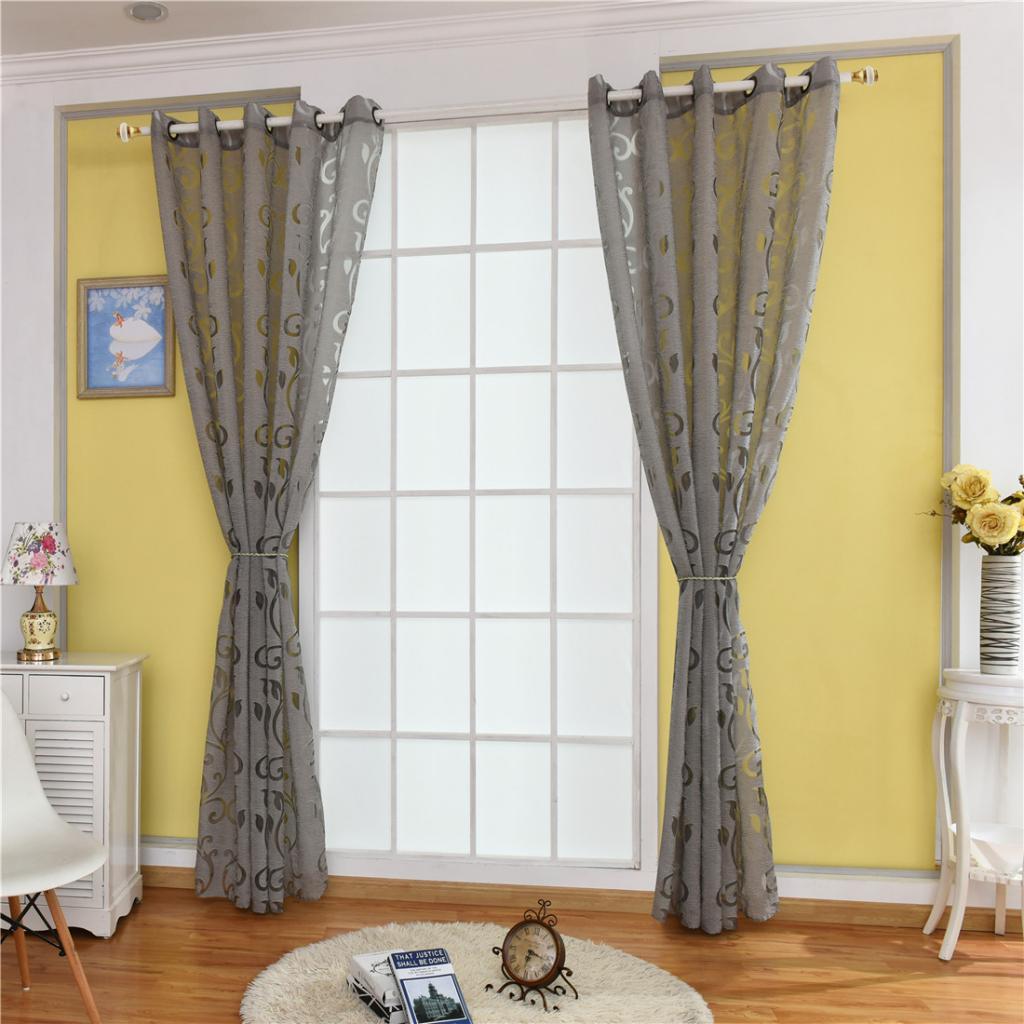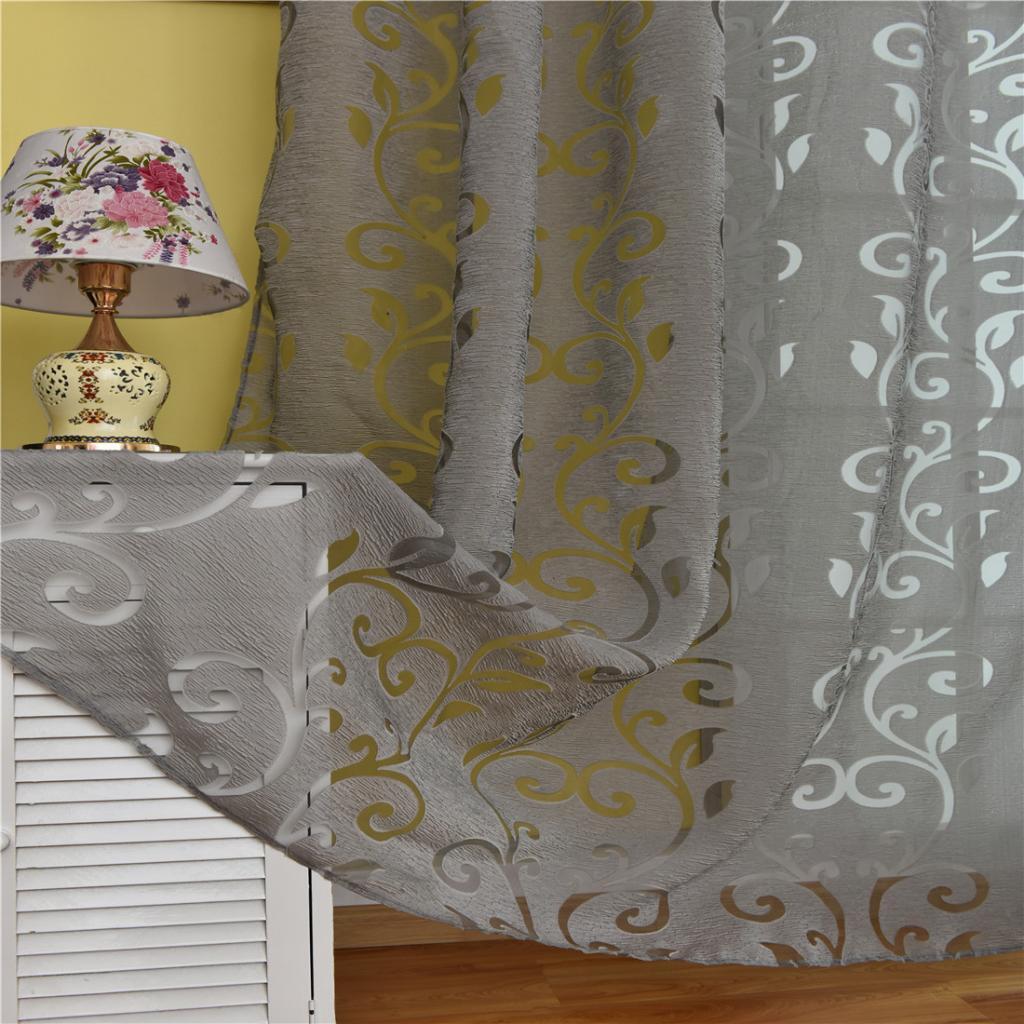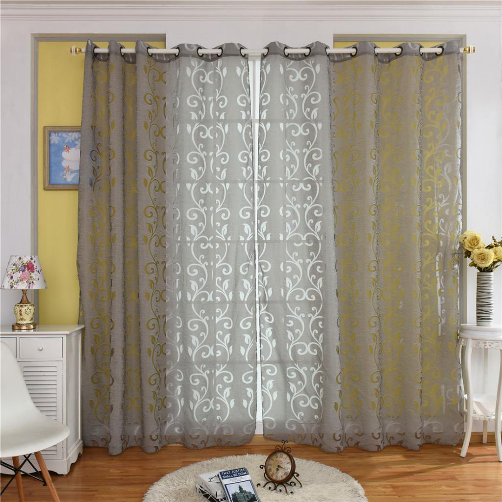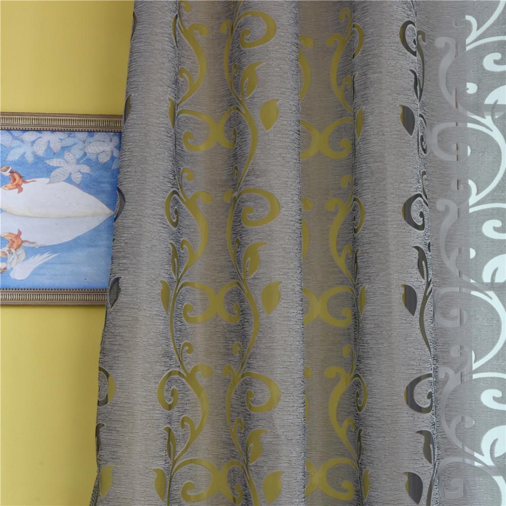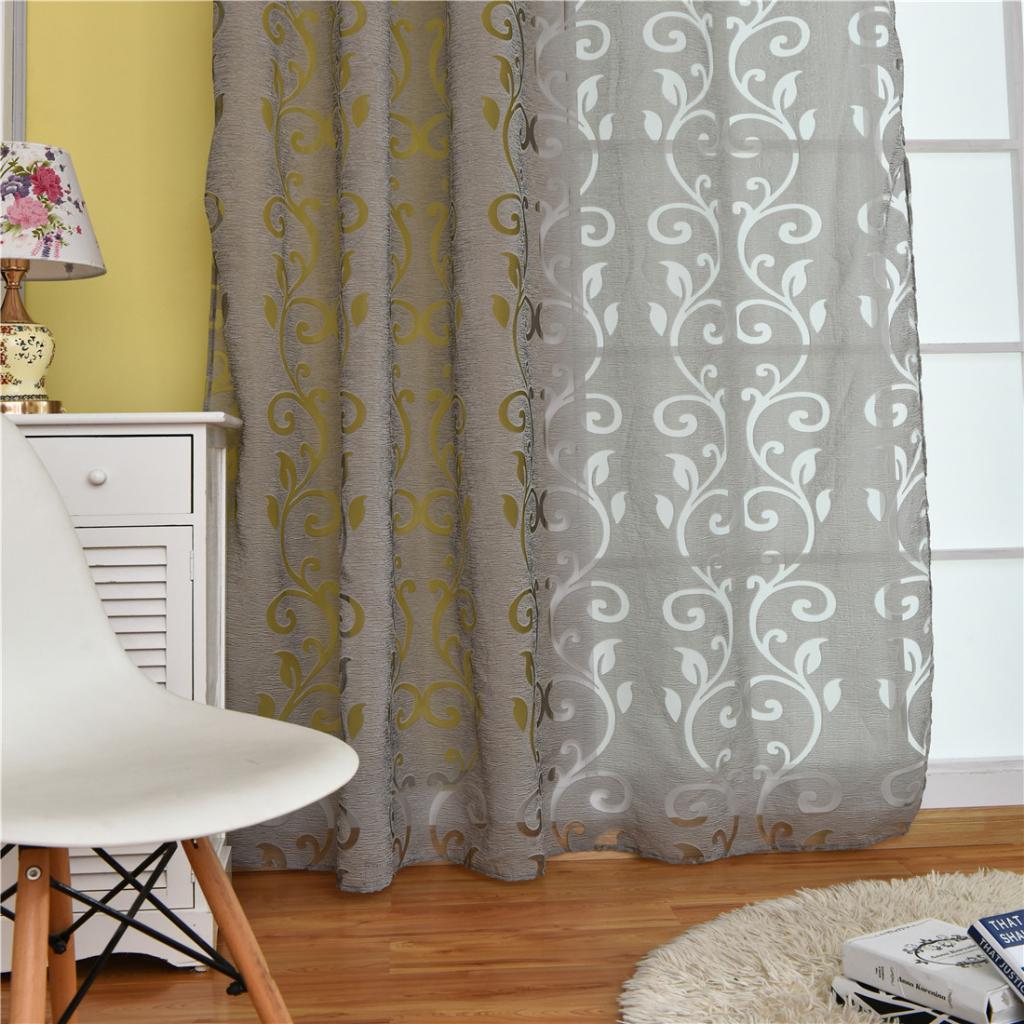 Bubble Flower Vines Window Curtains Gauze Sheers Room Divider Grey Leaf