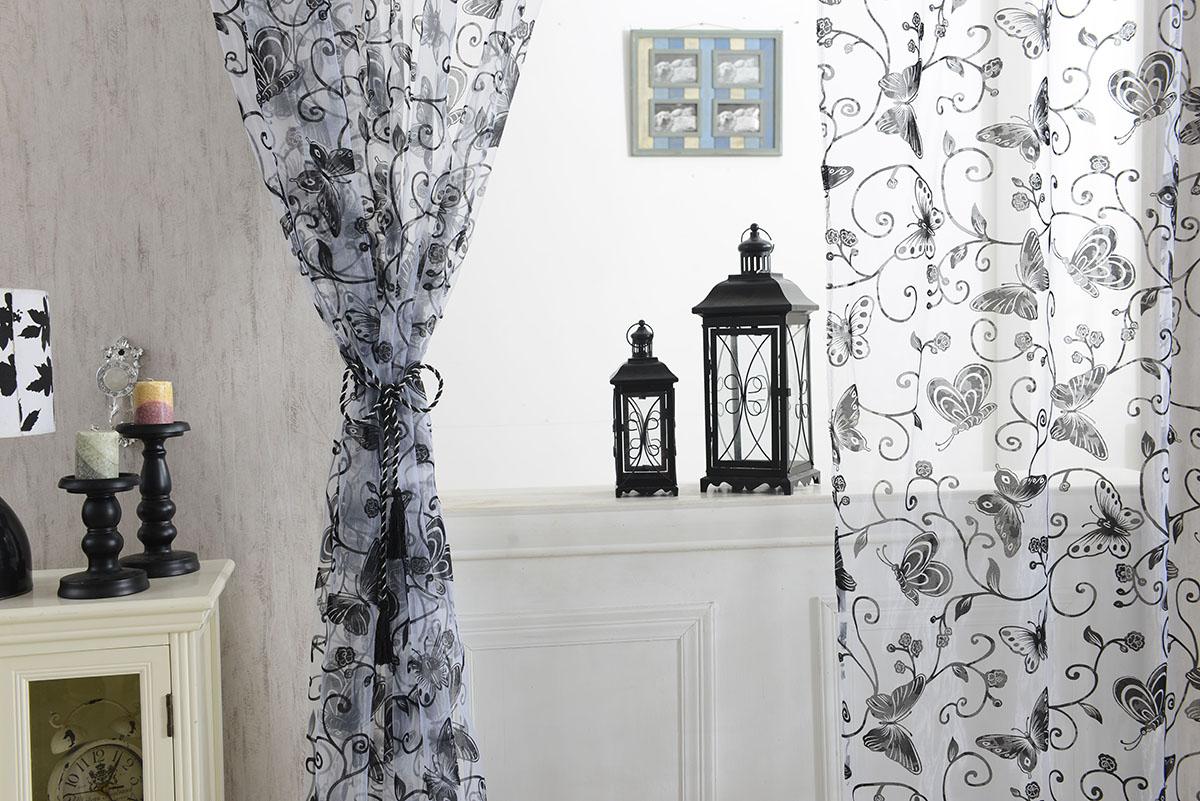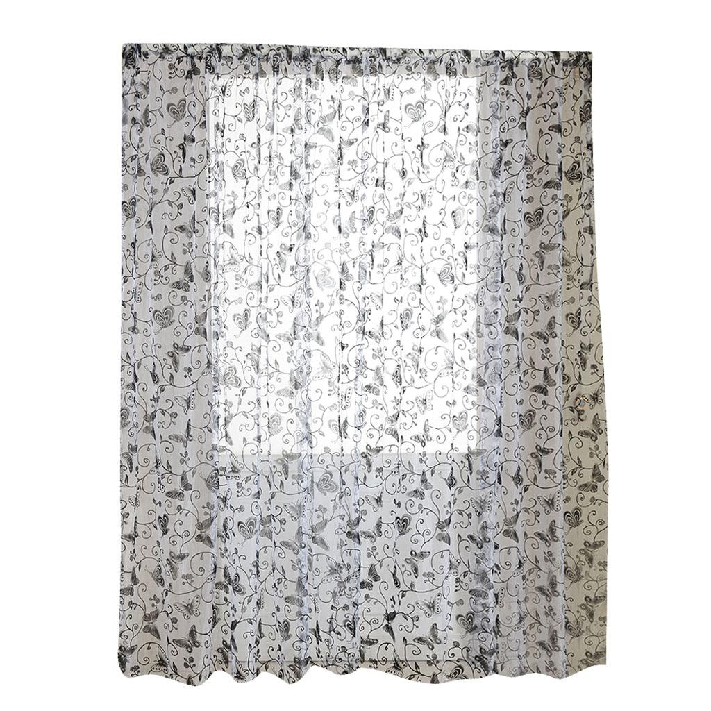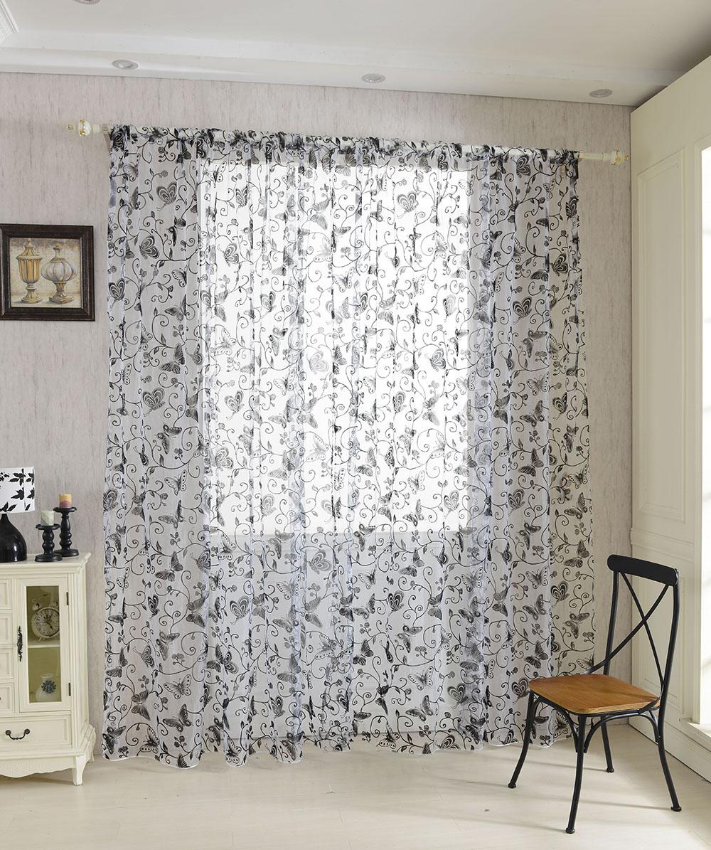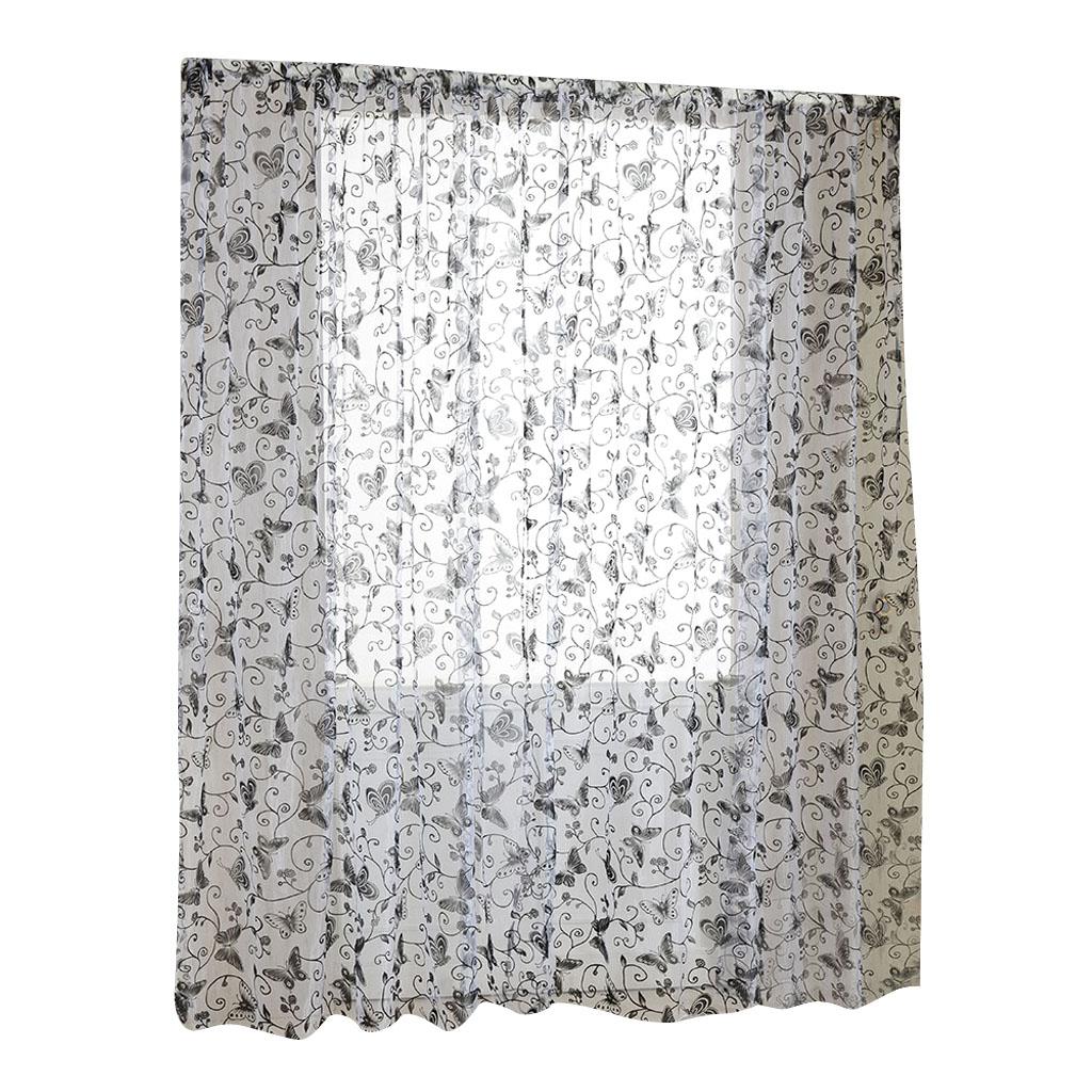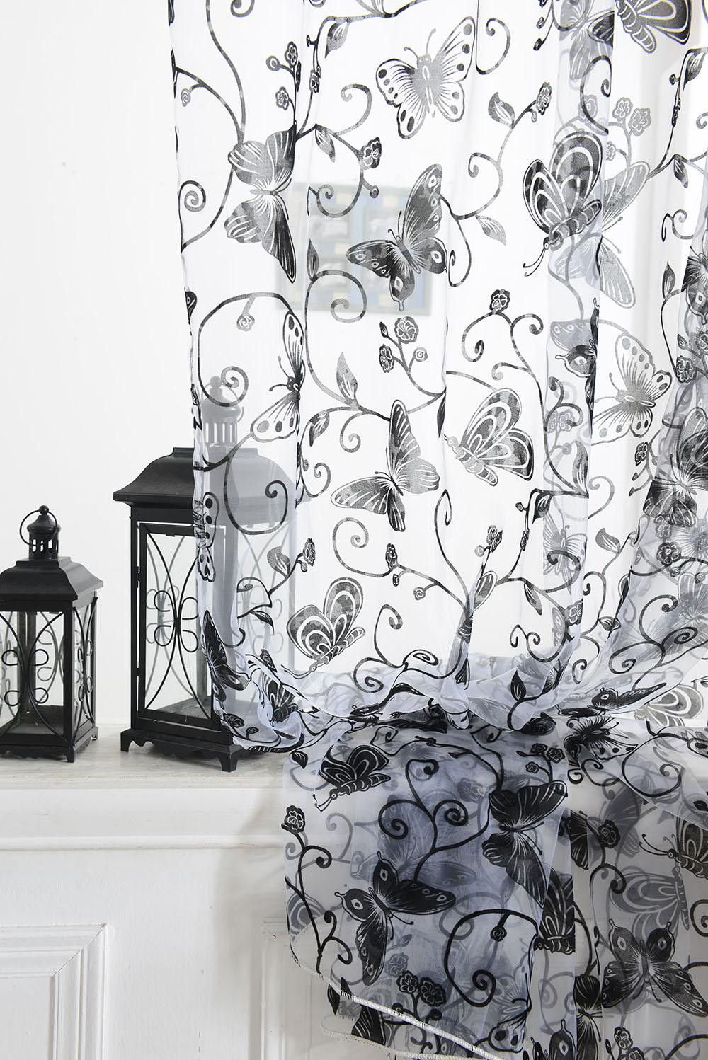 Butterfly Shape Scarf Sheer Voile Home Window DIY Curtain Drape Valance Black 1x2M Room Decor