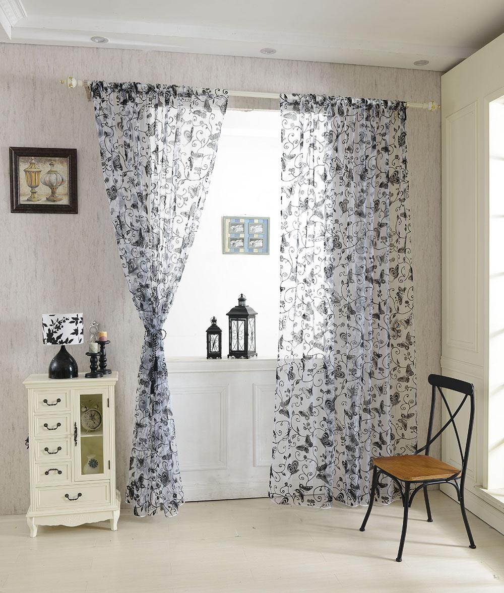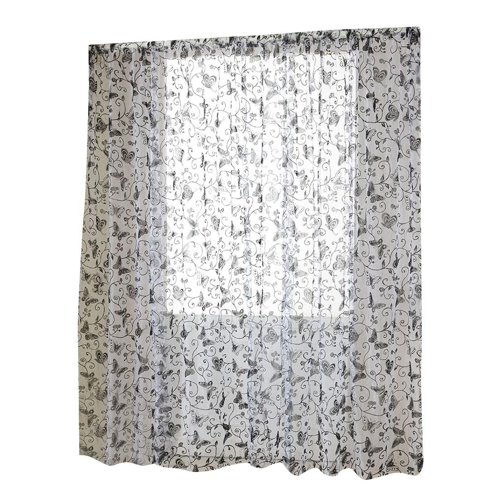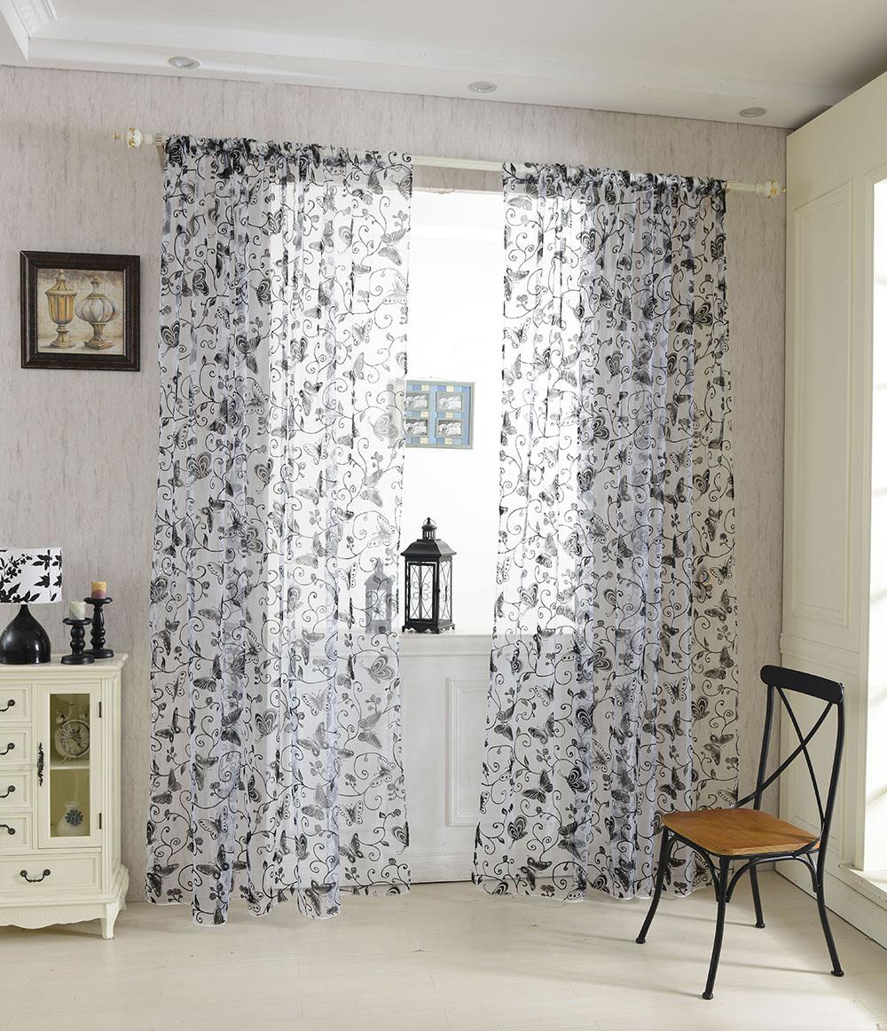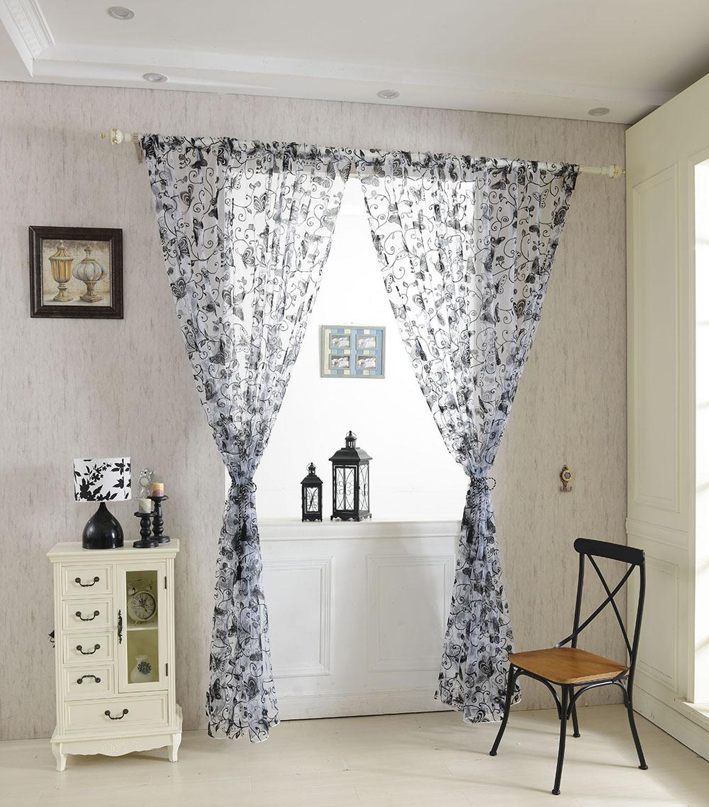 Butterfly Shape Scarf Sheer Voile Home Window DIY Curtain Drape Valance Black 1x2M Room Decor