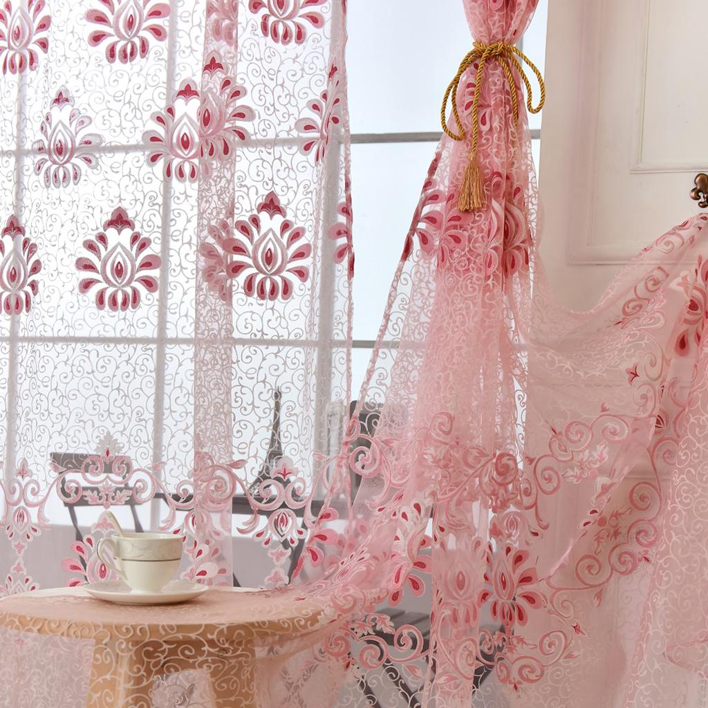 Classic Flower Tulle Voile Curtain Panel Sheer Drapes for Room Window Pink