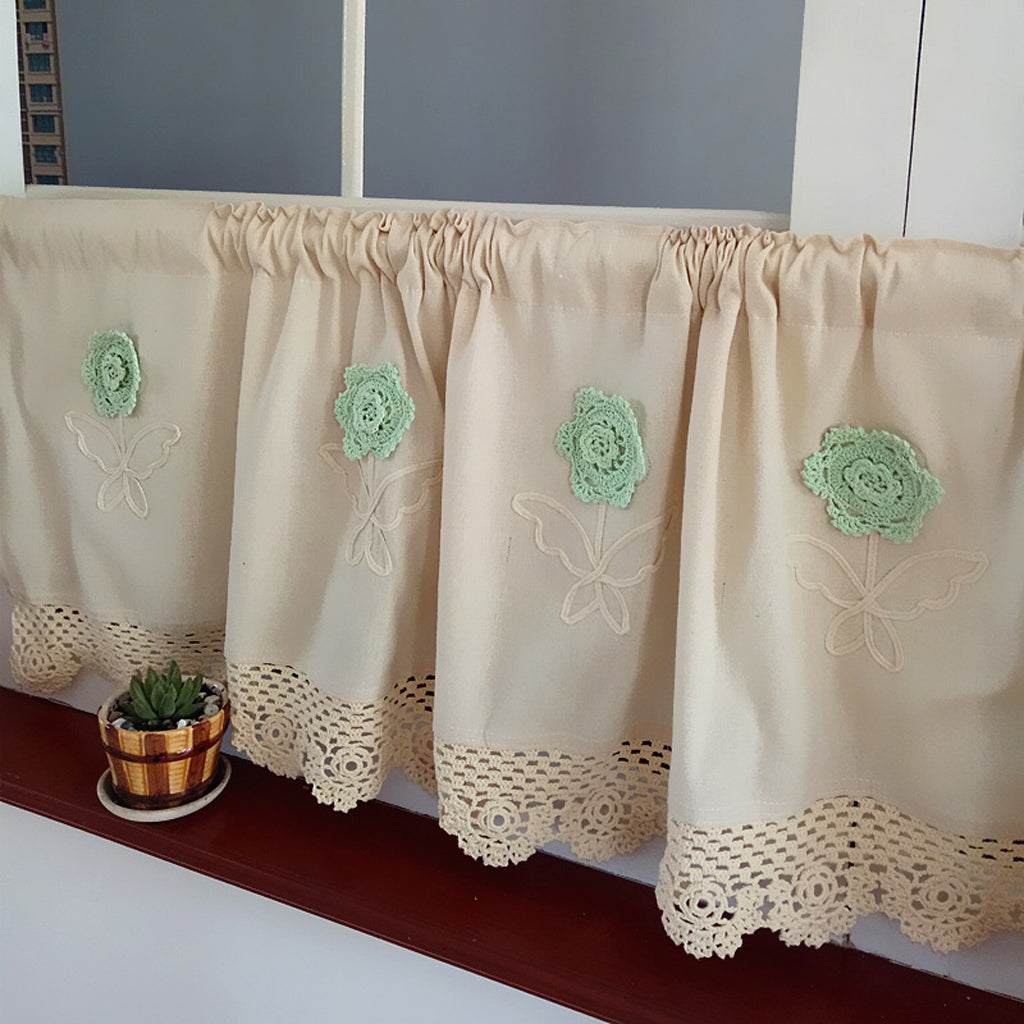 Floral lace valance, country style, elegant look, perfect home decor drop,look lovely in the breeze, casual decor.