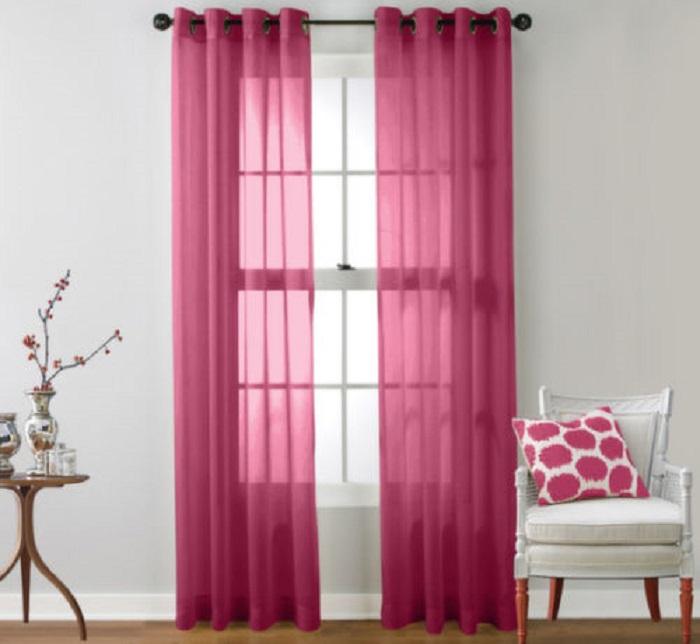 Elegant Eyelet Curtain Dapes Solid Window Panel Room Door Office Living Room Decor Rose Red