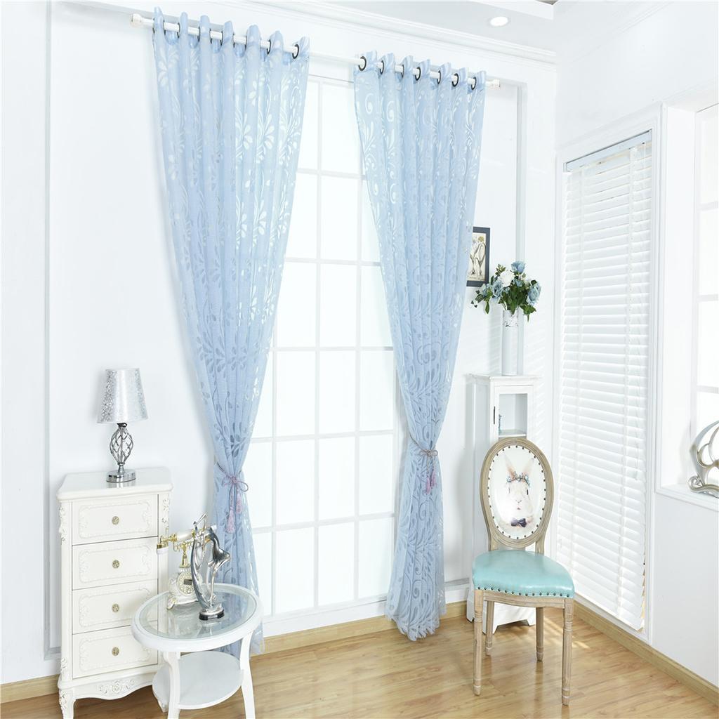 Elegant Flower Sheer Window Curtain Voile Drapery Panel 39''x98'' Blue