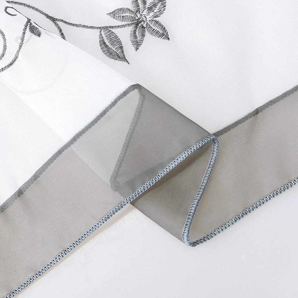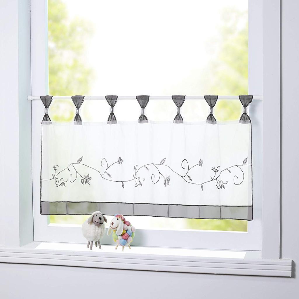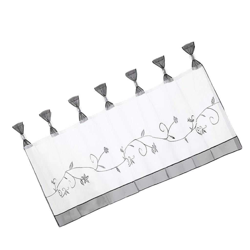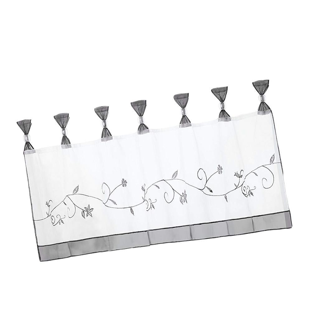 Embroidered Short Curtain Tab Top Cafe Half Curtains Grey - 45x120cm