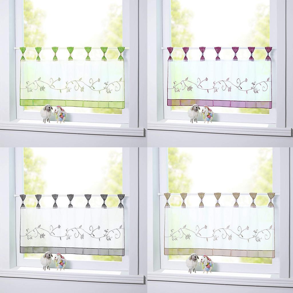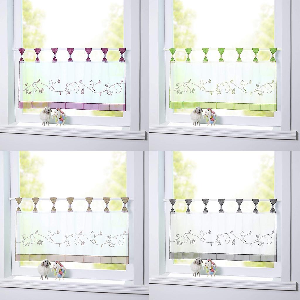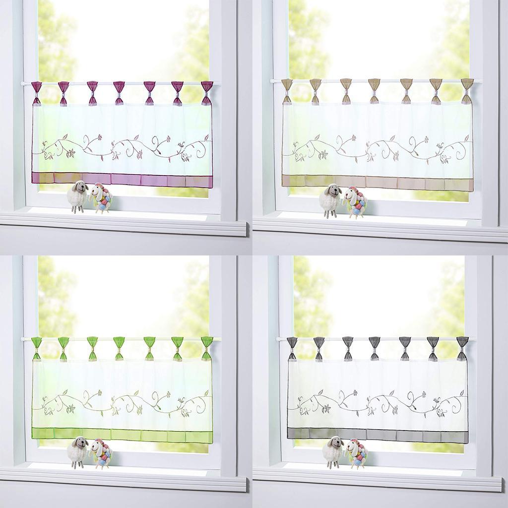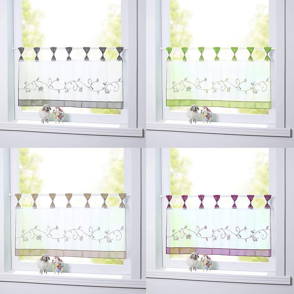 Embroidered Short Curtain Tab Top Cafe Half Curtains.