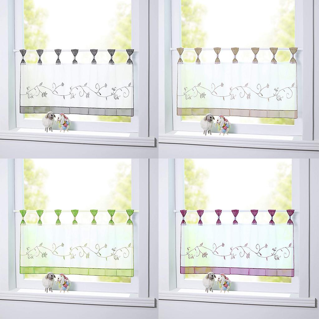 Embroidered Short Curtain Tab Top Cafe Half Curtains.