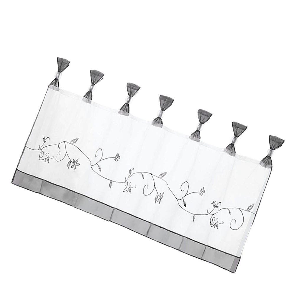 Embroidered Short Curtain Tab Top Cafe Half Curtains Grey - 60x120cm