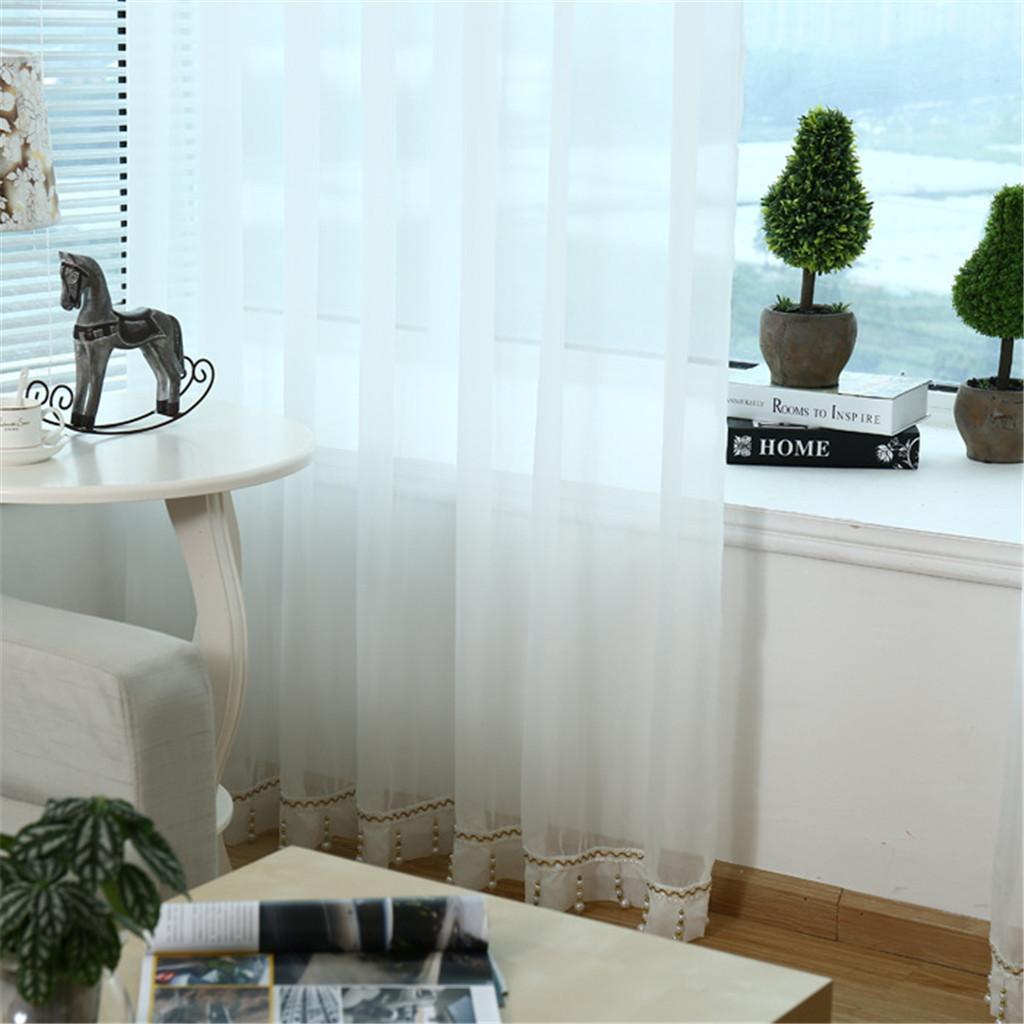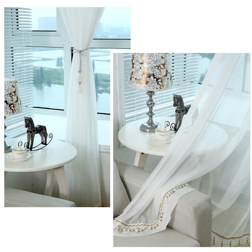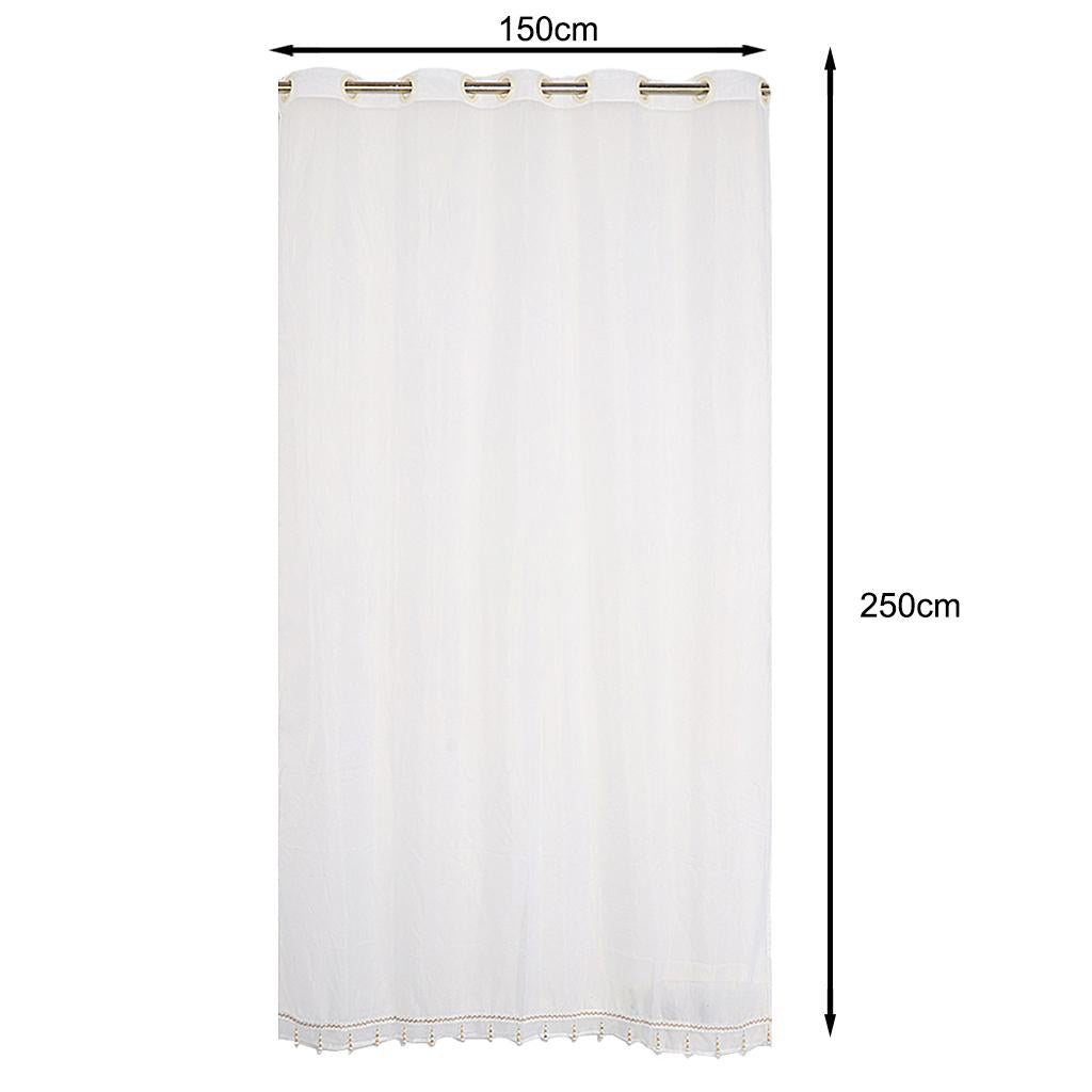 Eyelet Sheer Window Curtains Gauze Voile Curtains White 150x250cm-with Beads