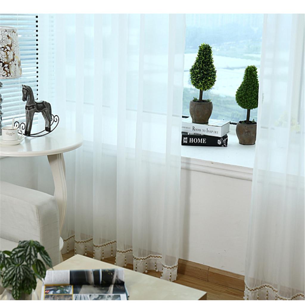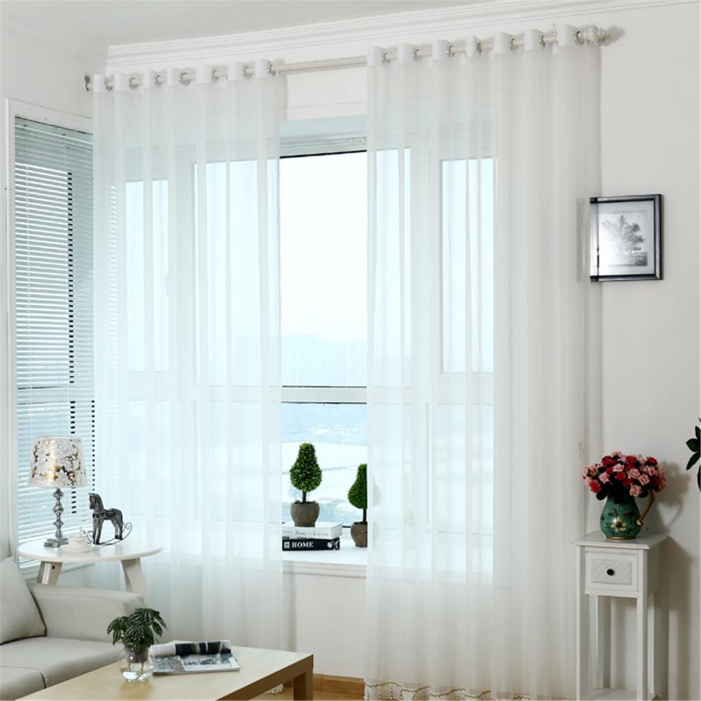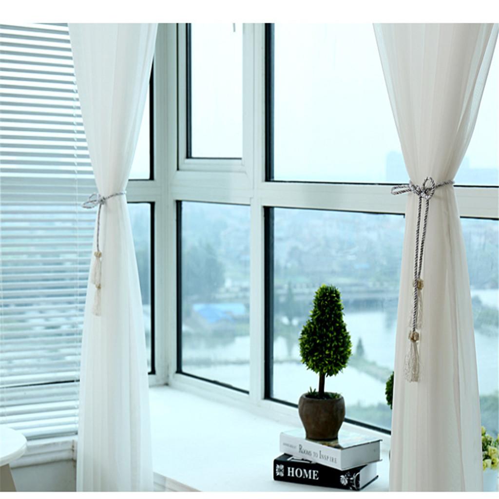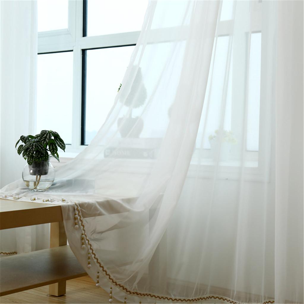 Eyelet Sheer Window Curtains Gauze Voile Curtains White 150x250cm-with Beads