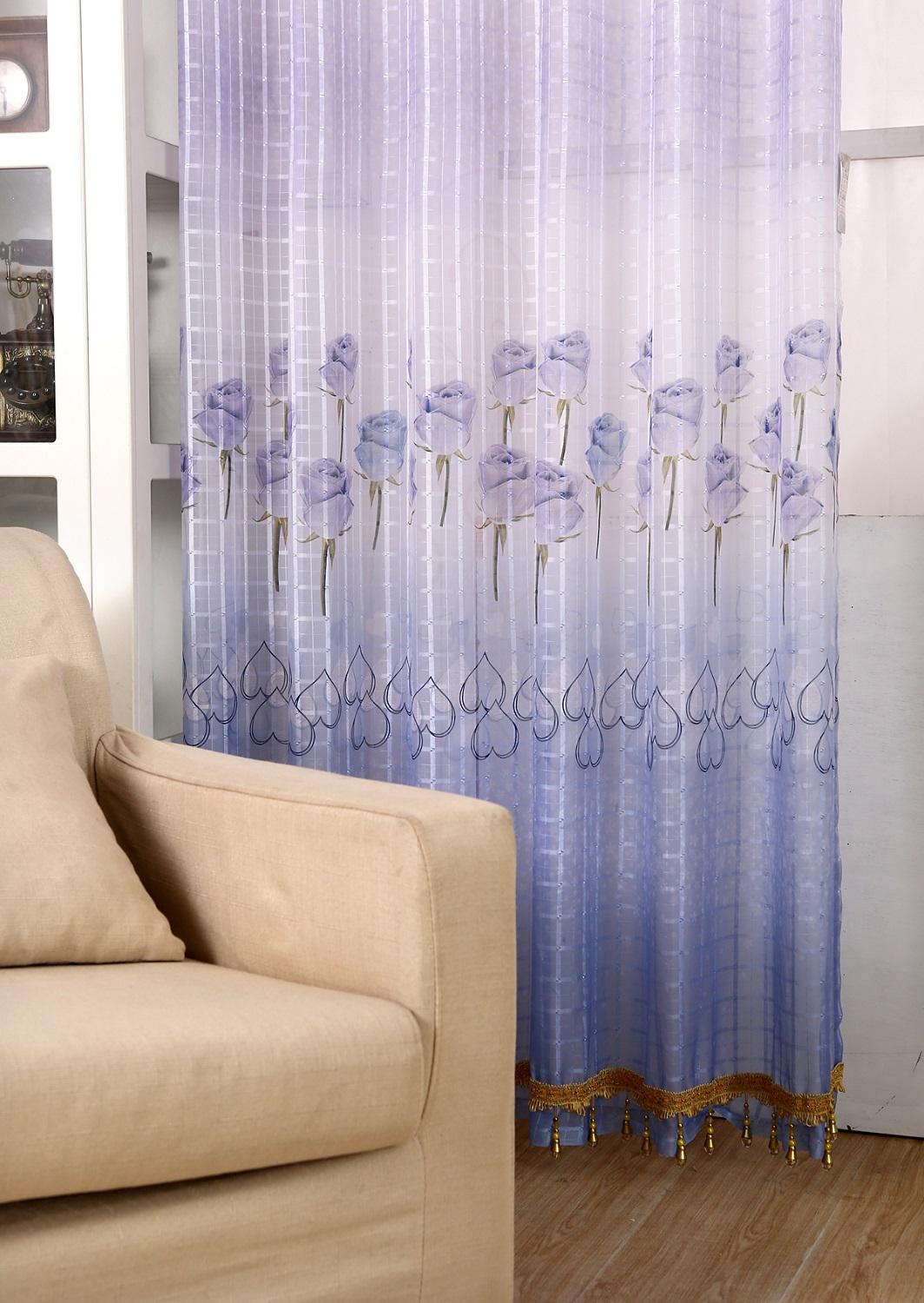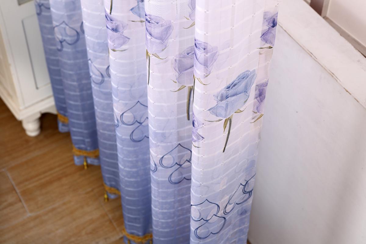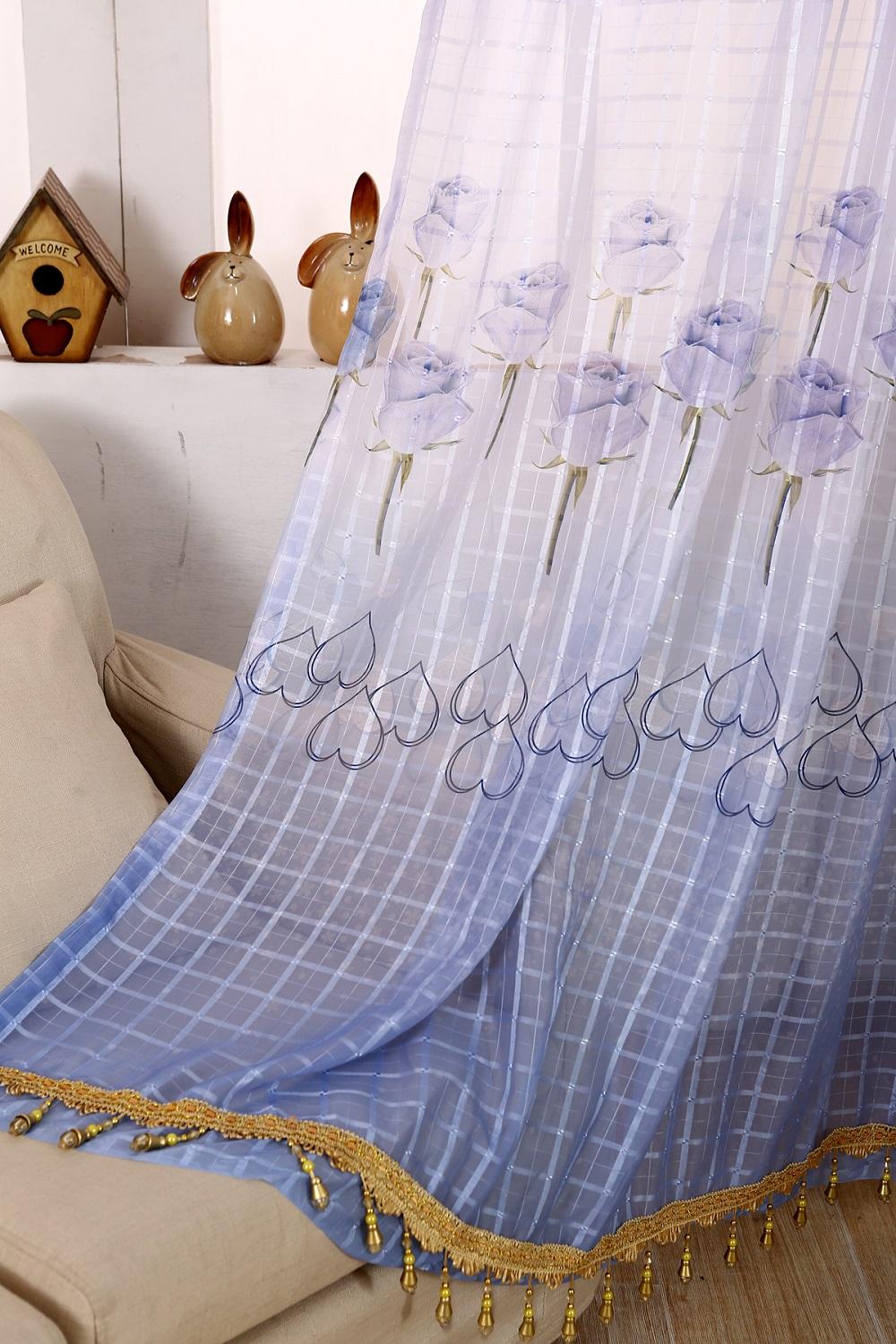 Fashionable Blue Rose Pattern Charms Voile Lattice Curtains Home Bedroom Hotel Bar Window Blinds Beads Trim 100*250cm