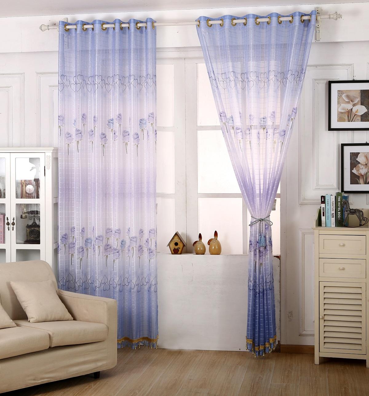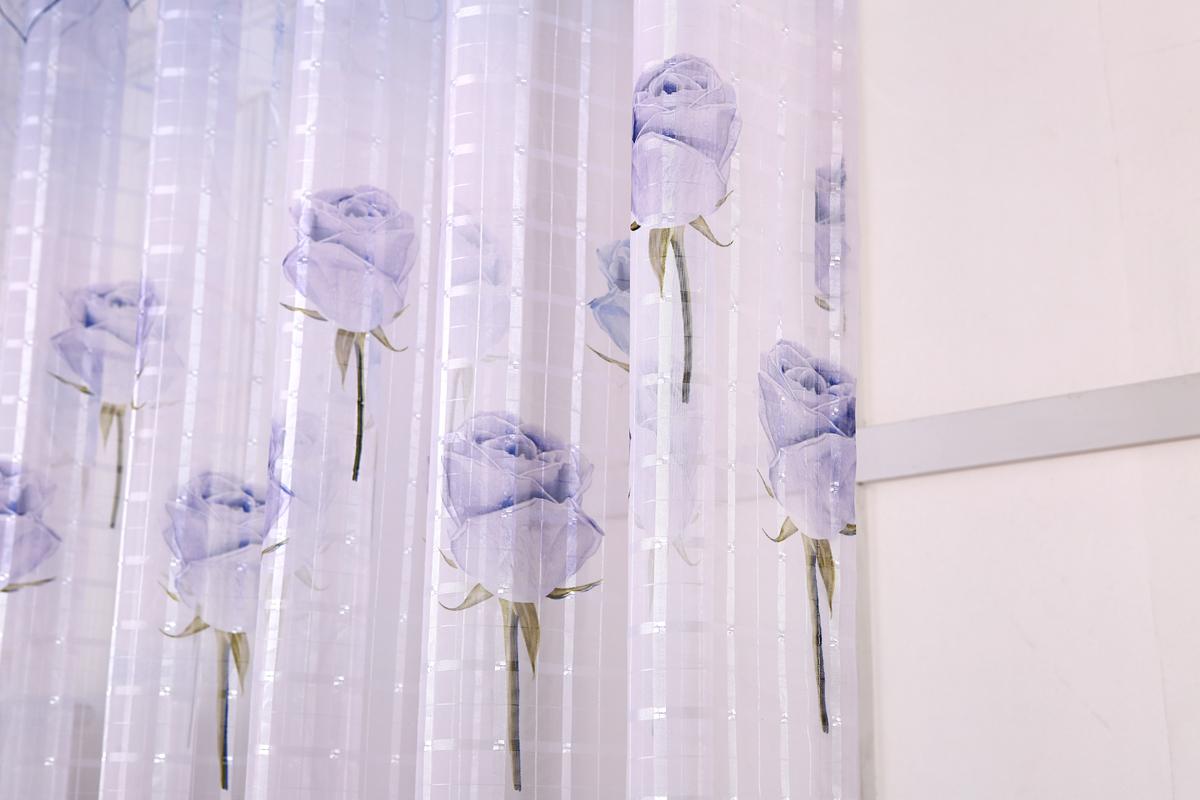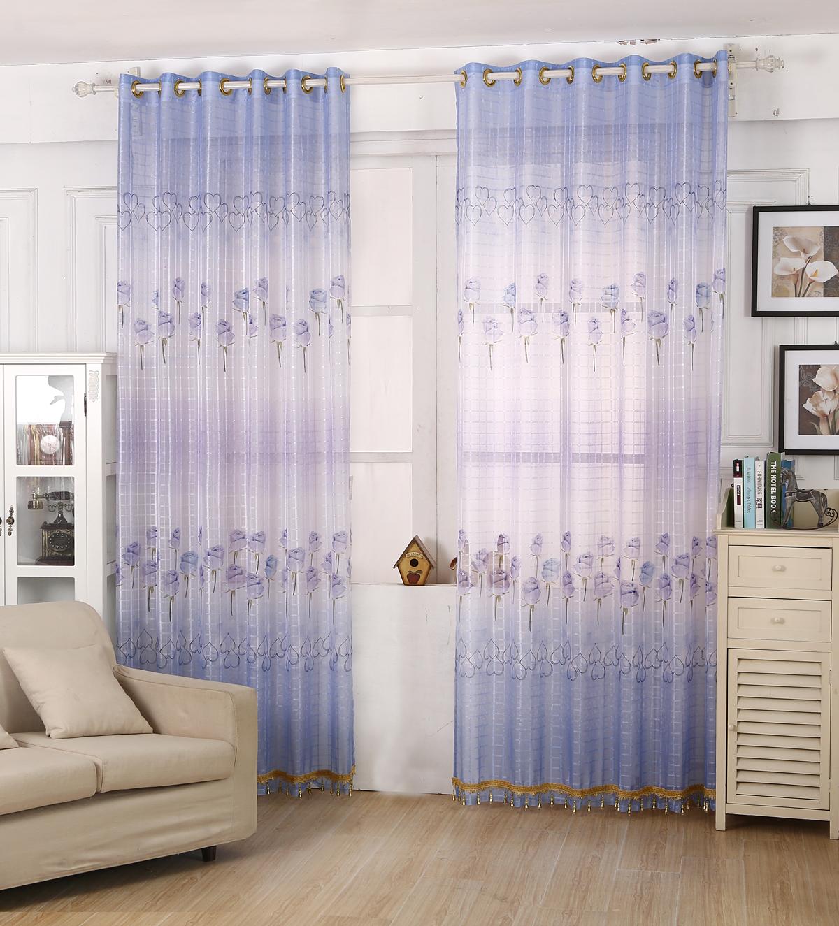 Fashionable Blue Rose Pattern Charms Voile Lattice Curtains Home Bedroom Hotel Bar Window Blinds Beads Trim 100*250cm