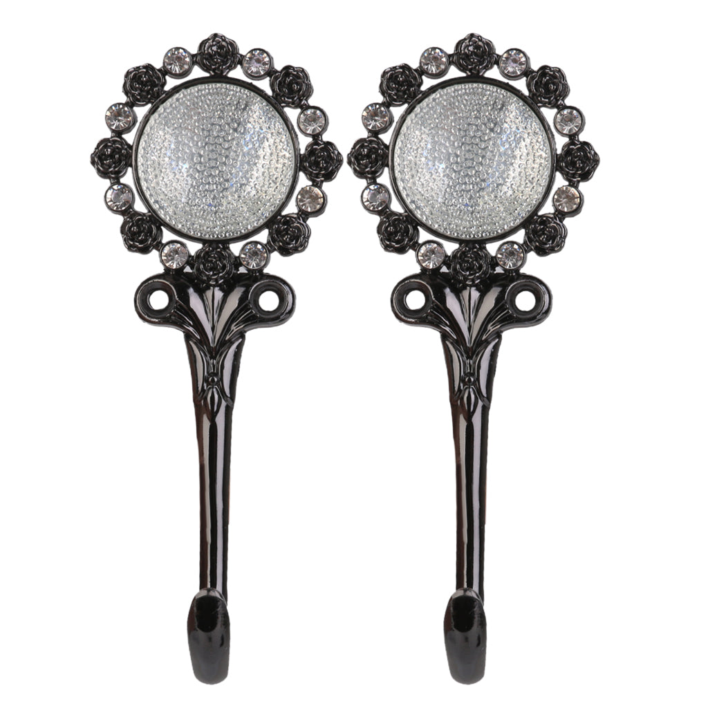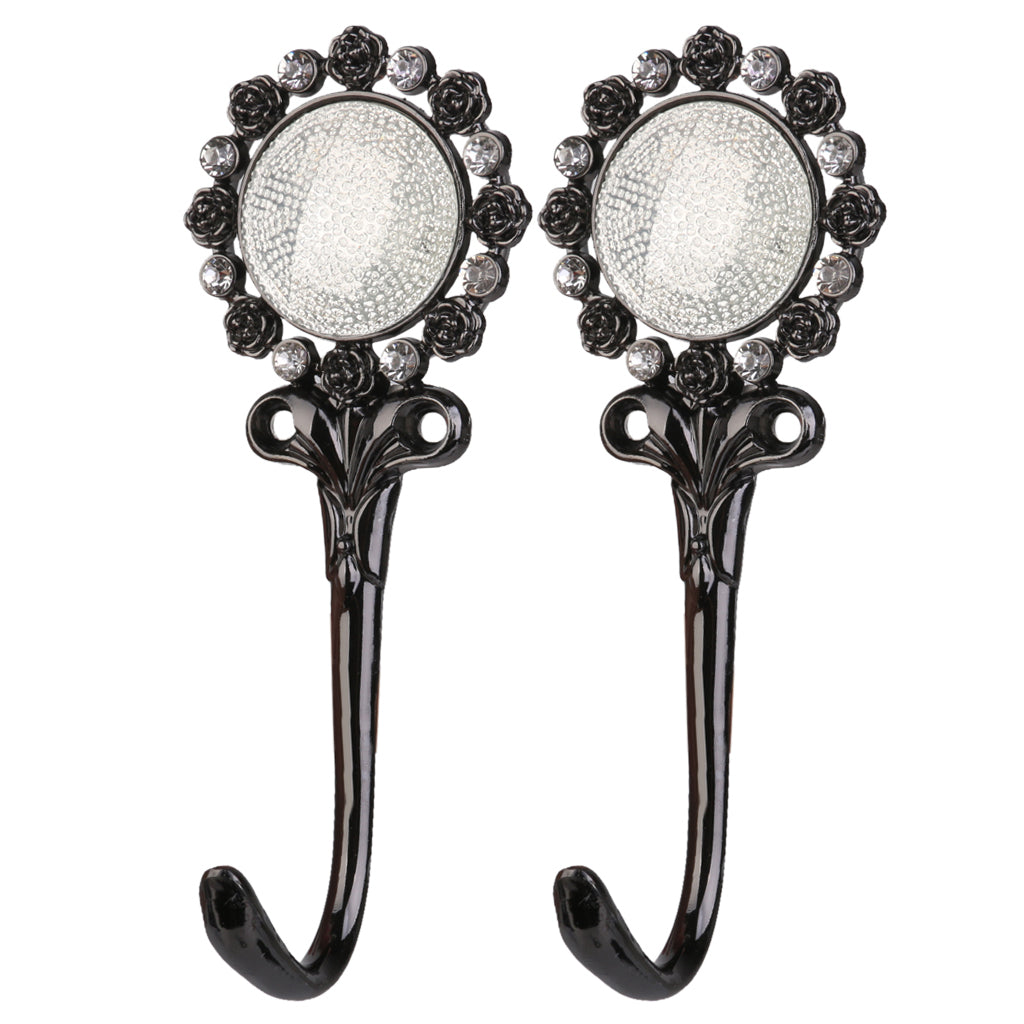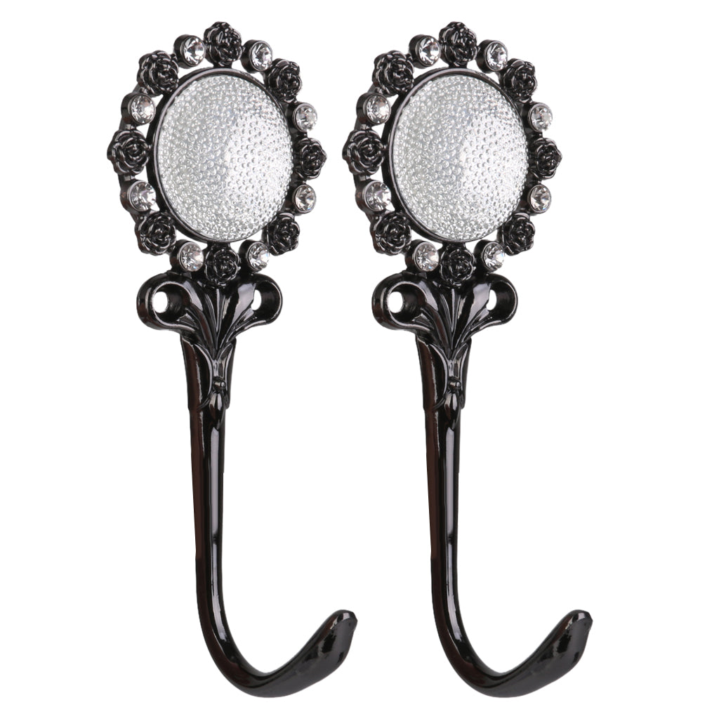 Faux Diamond Curtain Drapery Tiebacks Door Wall Tassel Hooks 2pcs Black