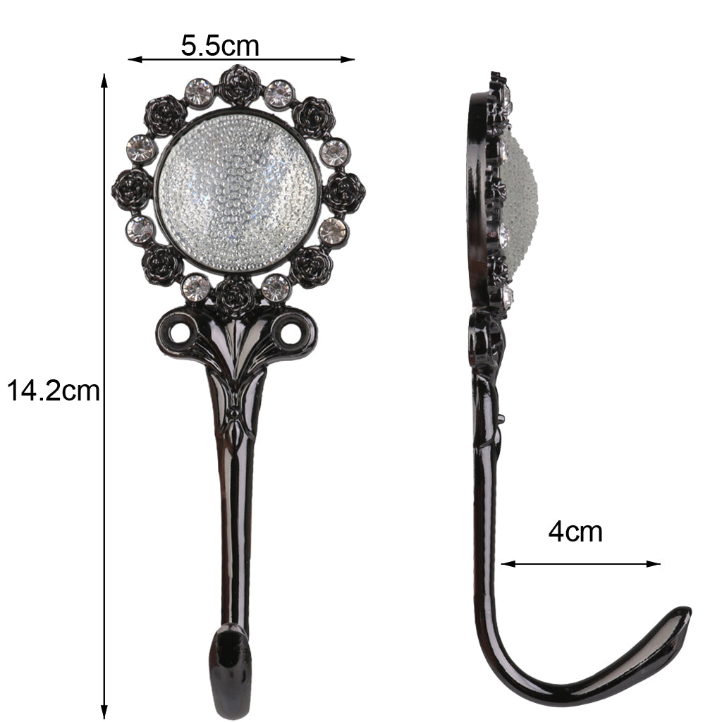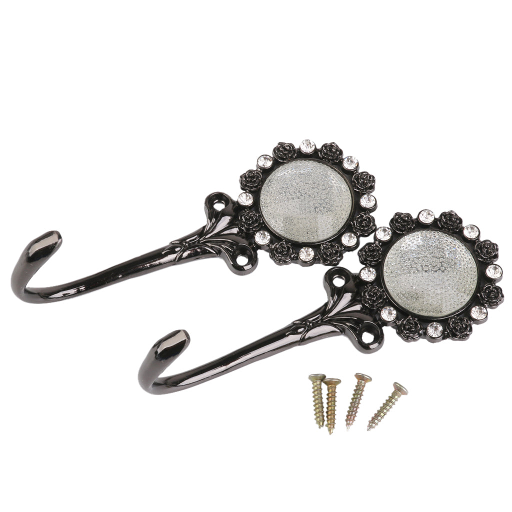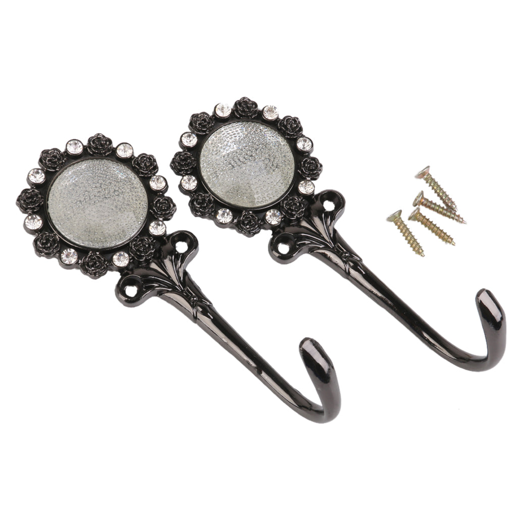Faux Diamond Curtain Drapery Tiebacks Door Wall Tassel Hooks 2pcs Black