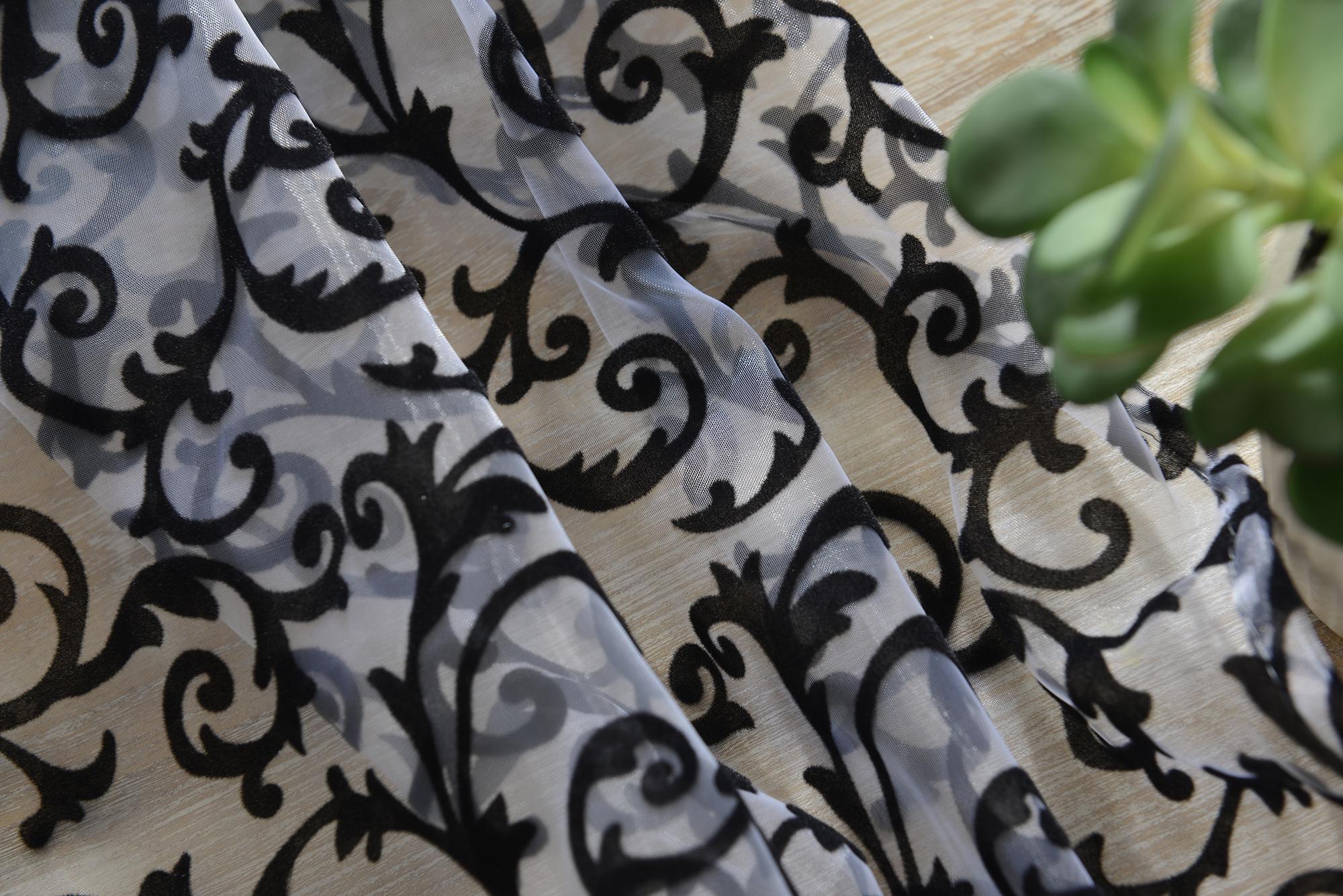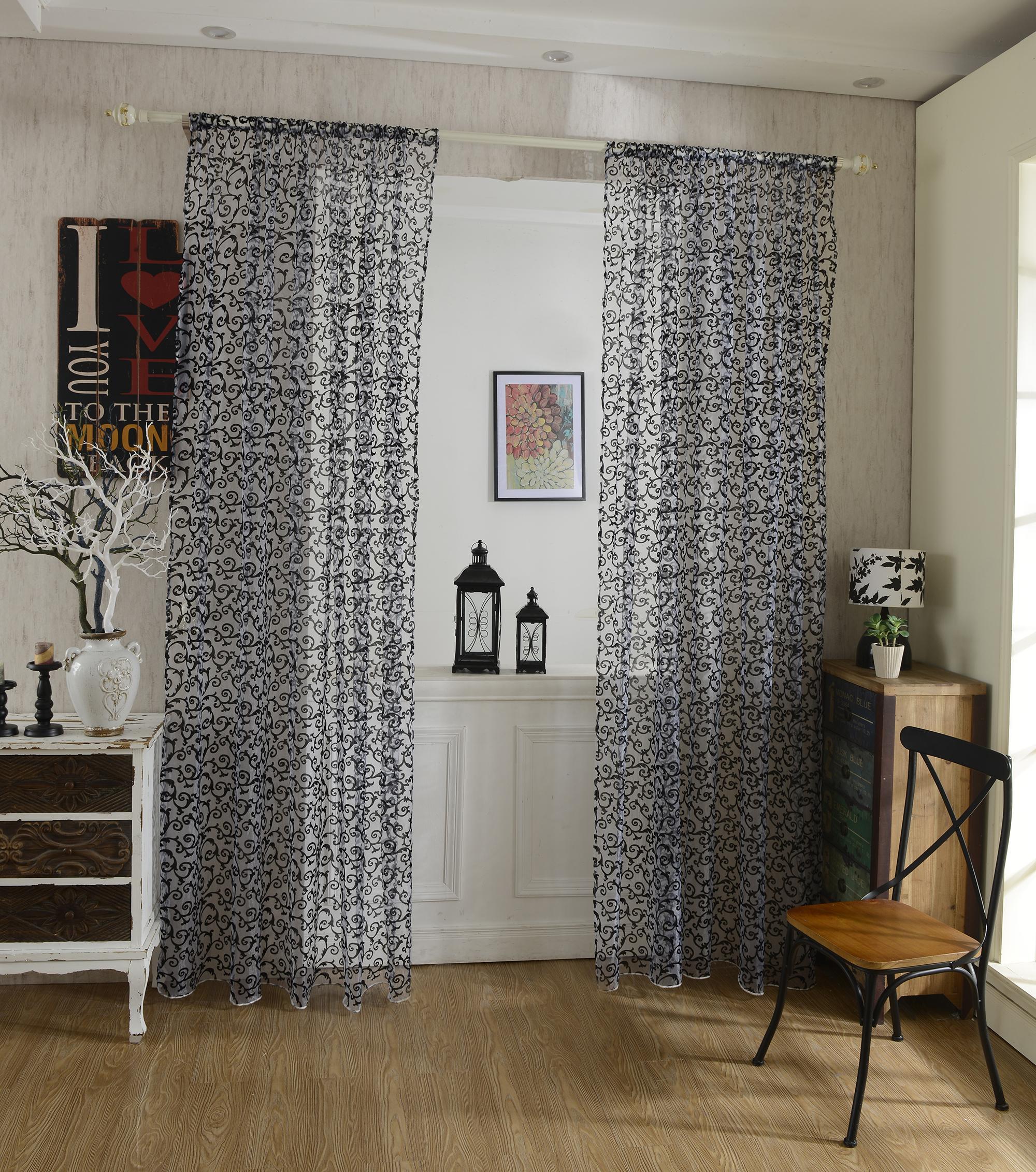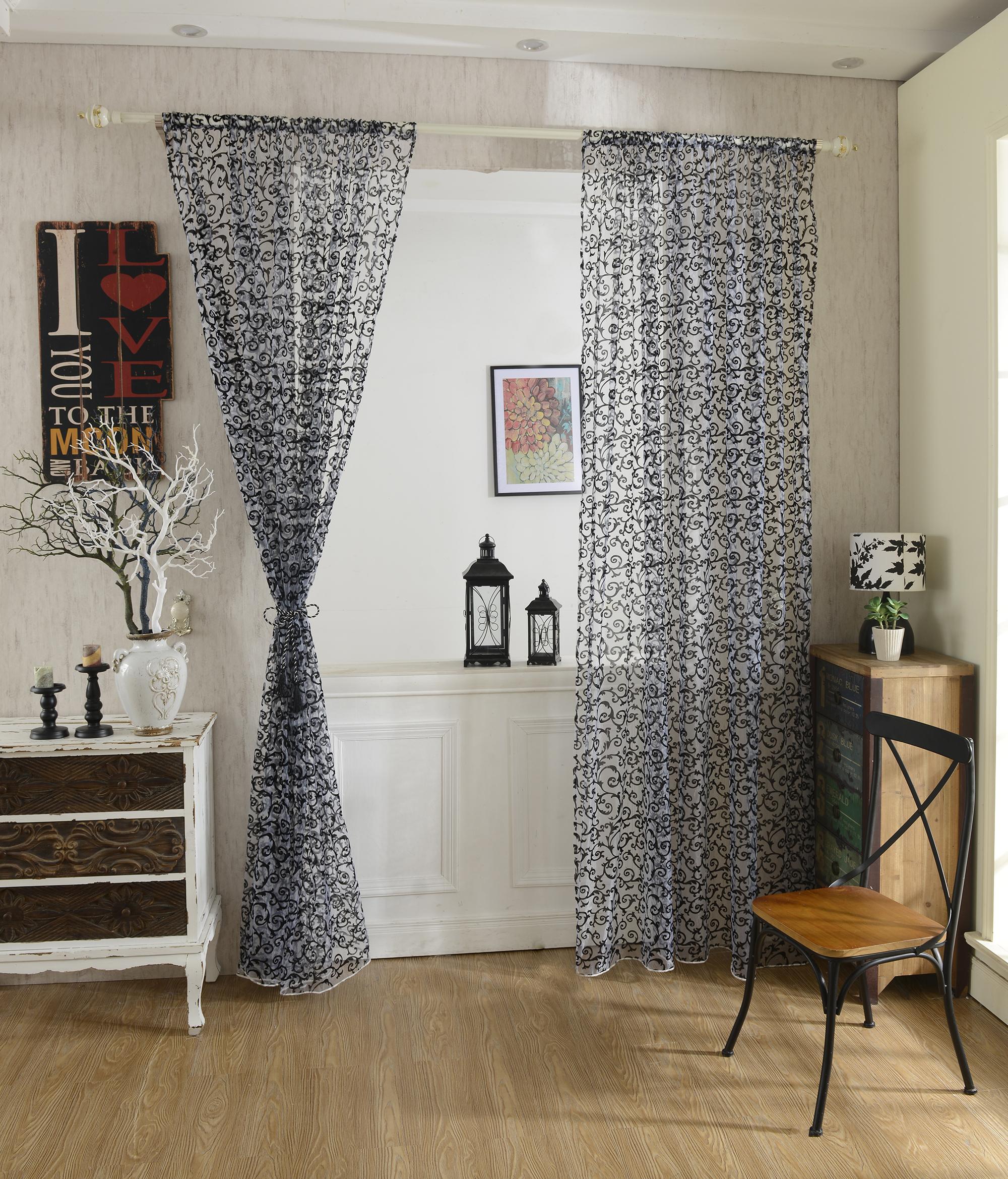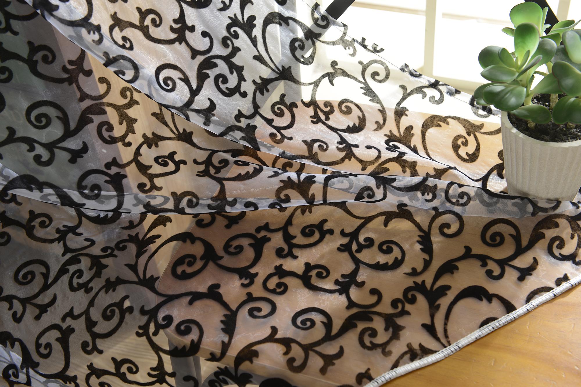 Flocking Pattern Sheer Curtain Panel Window Tulle Divider White 100*200cm