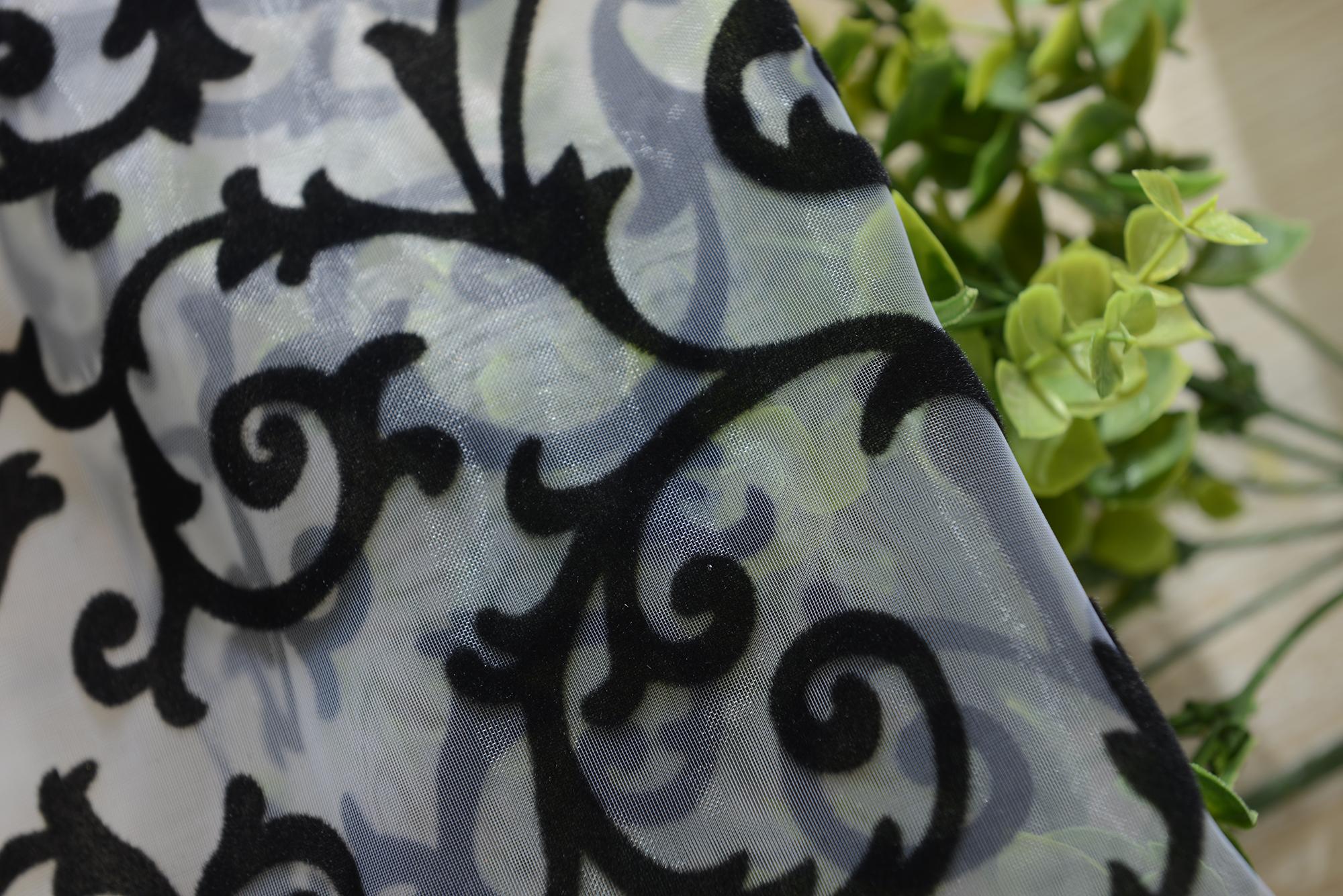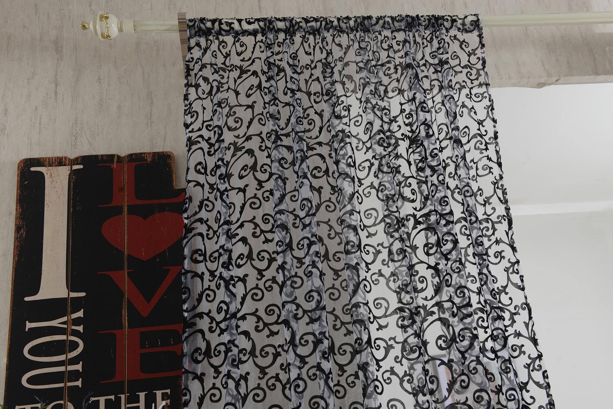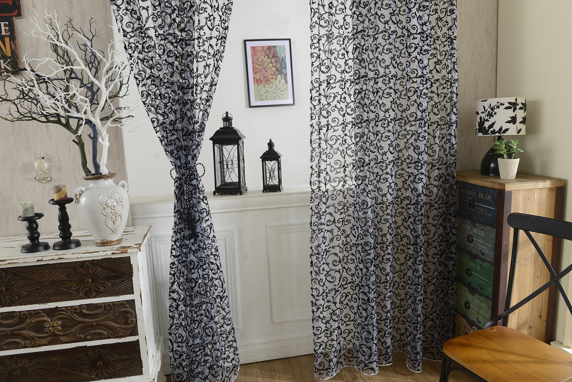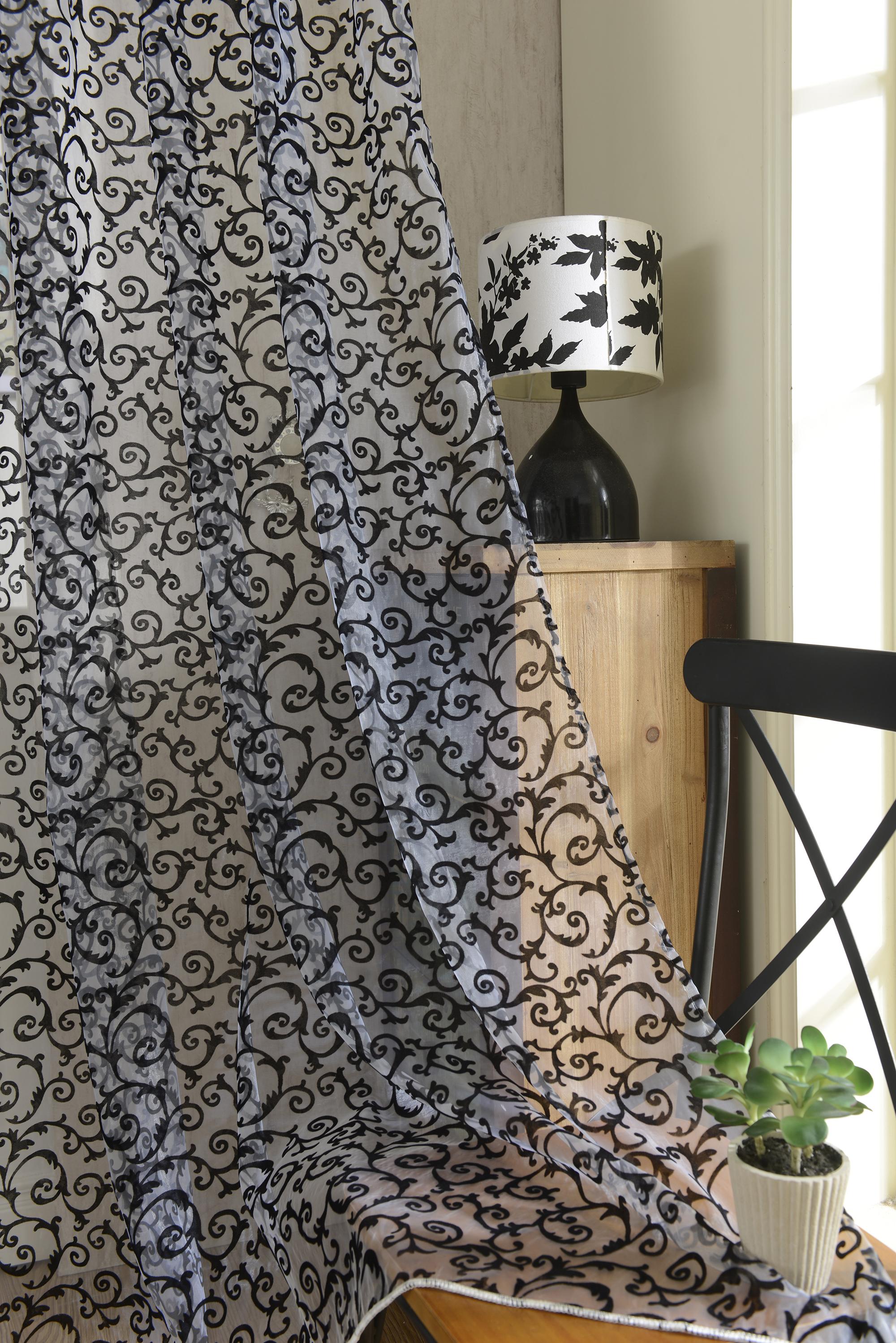 Flocking Pattern Sheer Curtain Panel Window Tulle Divider White 100*200cm