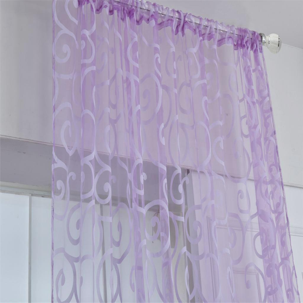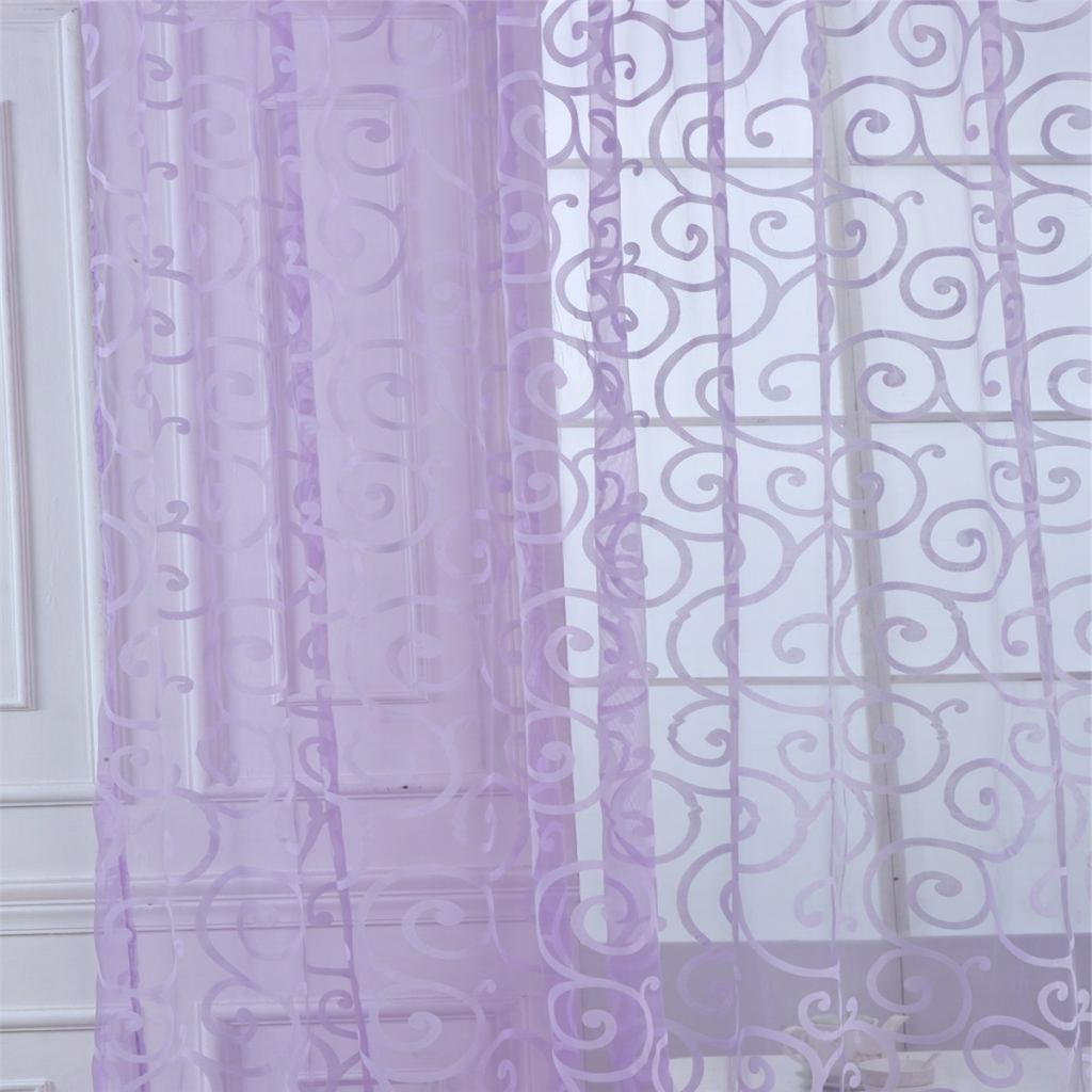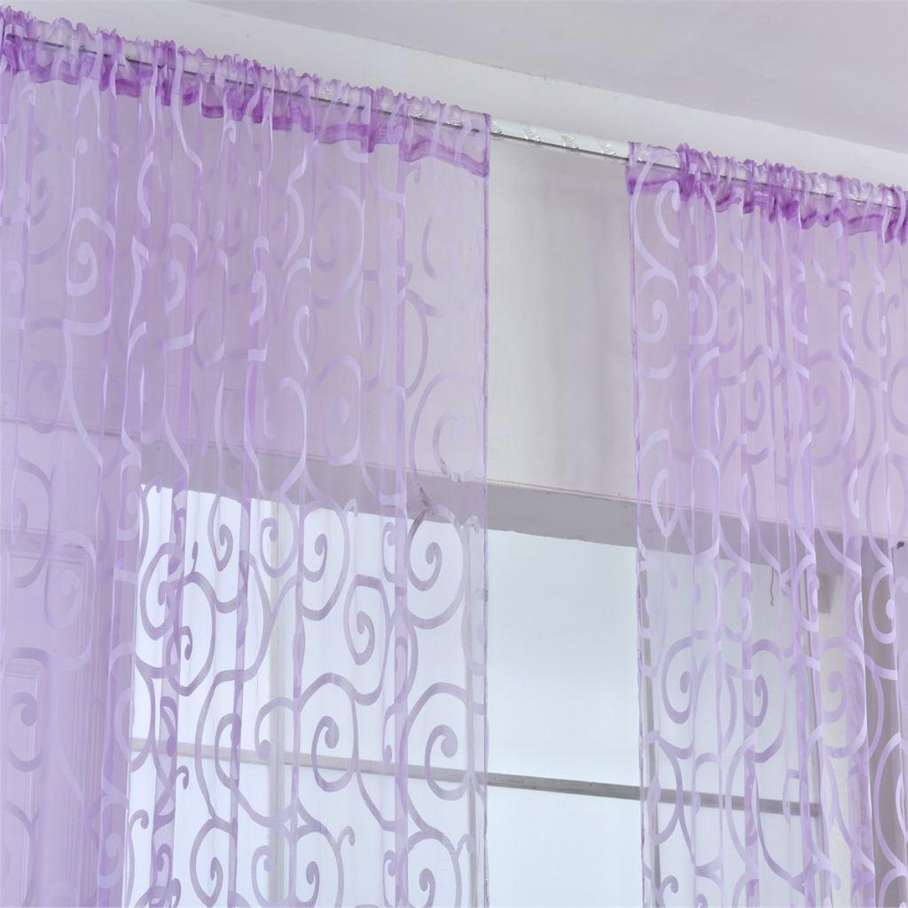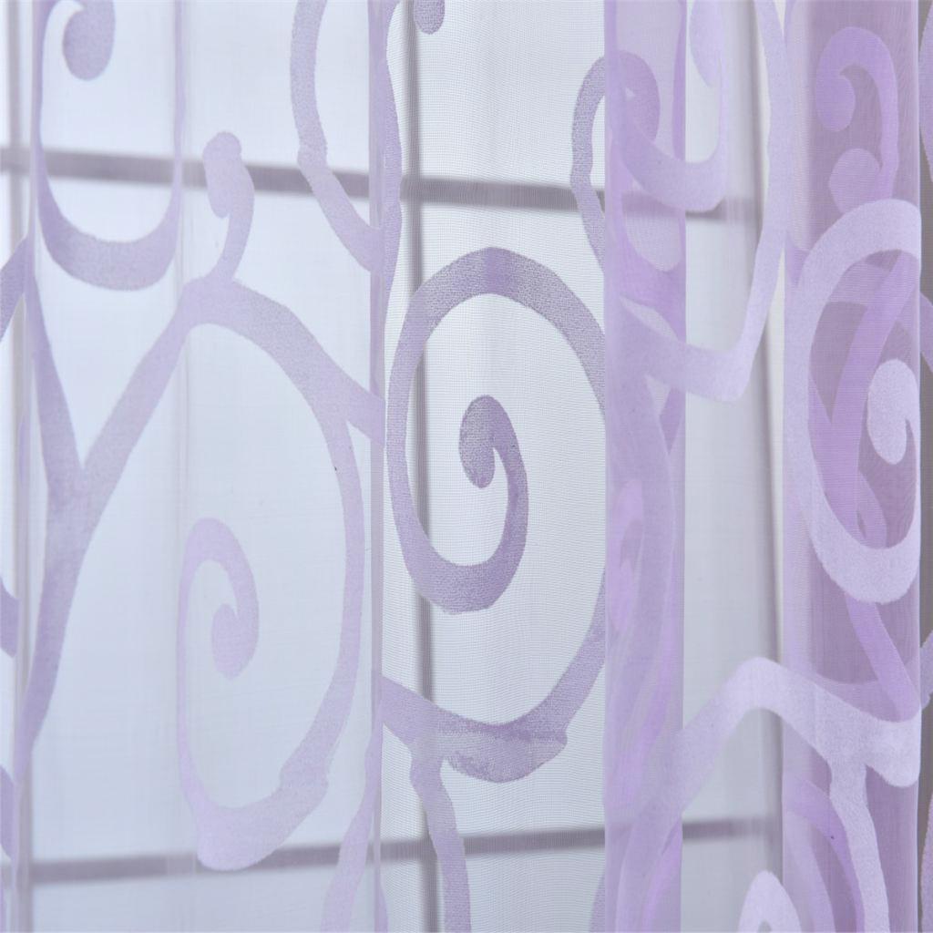 Flocking Sheer Window Curtain Tulle Voile Drape Panel Grommet Top 250x150cm Purple